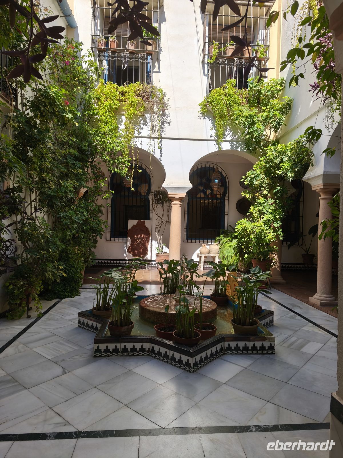 Anschließend spazieren wir durch die Altstadt, das ehemalige jüdische Viertel (Juderia). Die engen verwinkelten Straßen erinnern an ein Labyrinth. An vielen Häusern hängen bunte Blumen und es gibt schöne Patios, teils mit kleinen Brunnen.