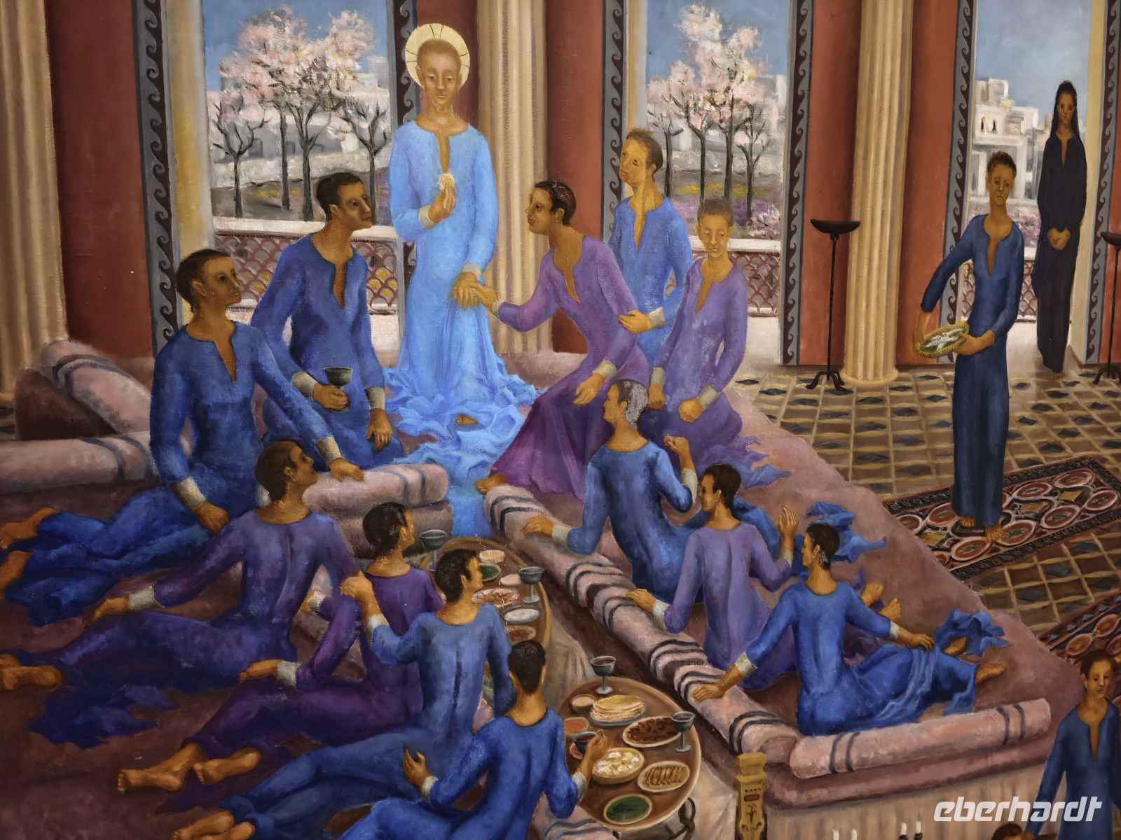 Als nächstes besuchen wir die Kirche Santa Maria la Mayor, die auf den Überresten einer alten Moschee erbaut wurde. Wir sehen beeindruckende Altäre und kunstvoll geschnitzte Chorstühle. Eine besondere Aufmerksamkeit widmen wir den Wandbildern von der Künstlerin Raymonde Pagegie die 1984 als Auftragsarbeit entstanden sind. Die Figuren die das Abendmahl darstellen sind verblüffenderweise weiblich und in blauen Gewändern dargestellt. Die Künstlerin sorgte damit natürlich für einen Skandal, ist sie doch homosexuell. Die Wandgemälde sind geblieben, die Besucher haben sich daran gewöhnt.....