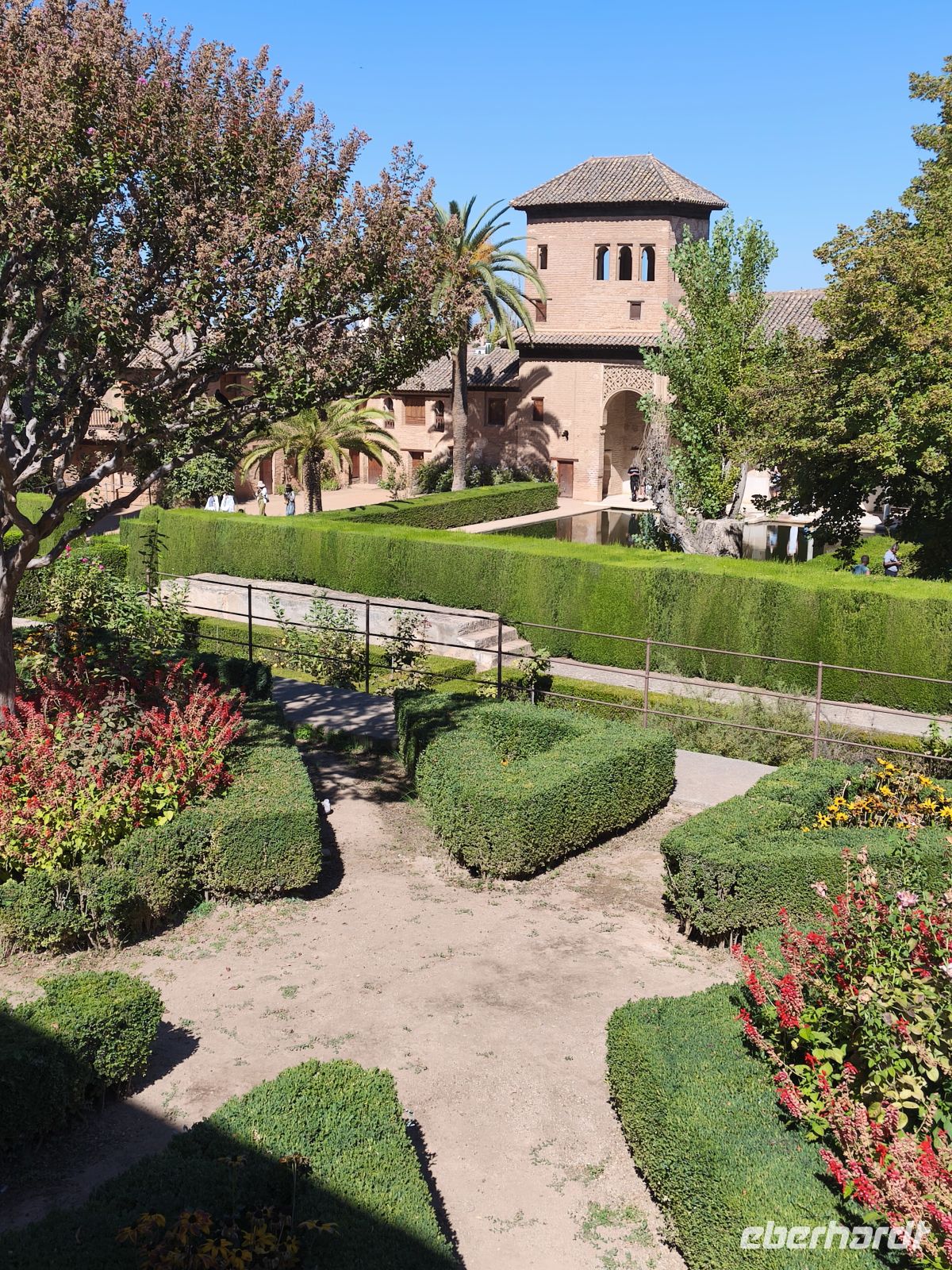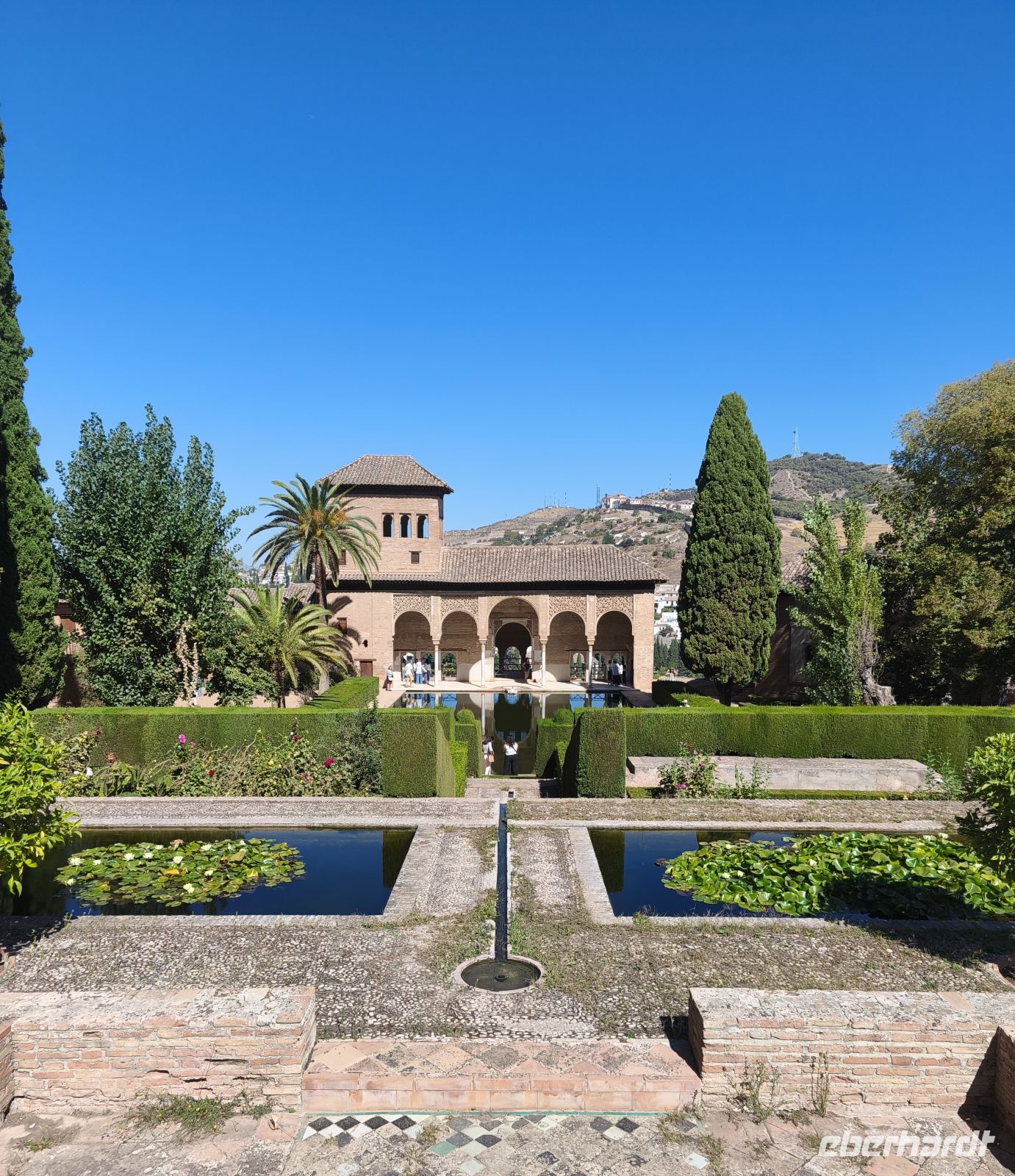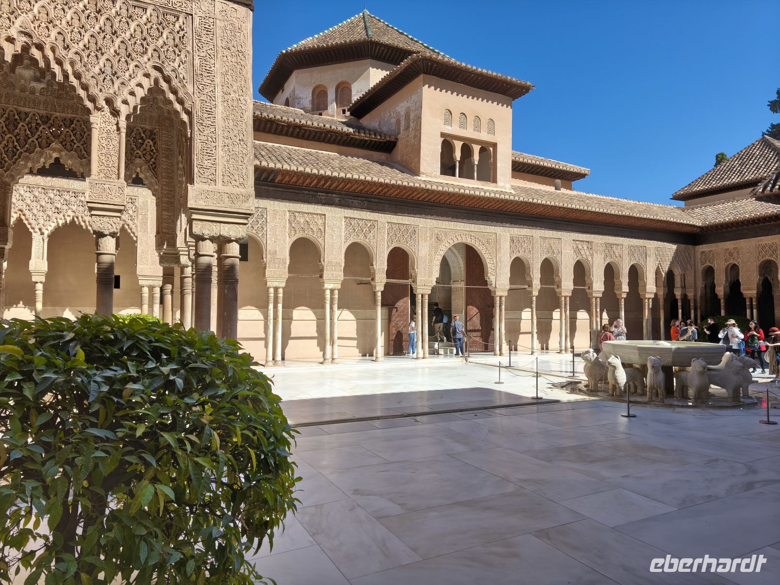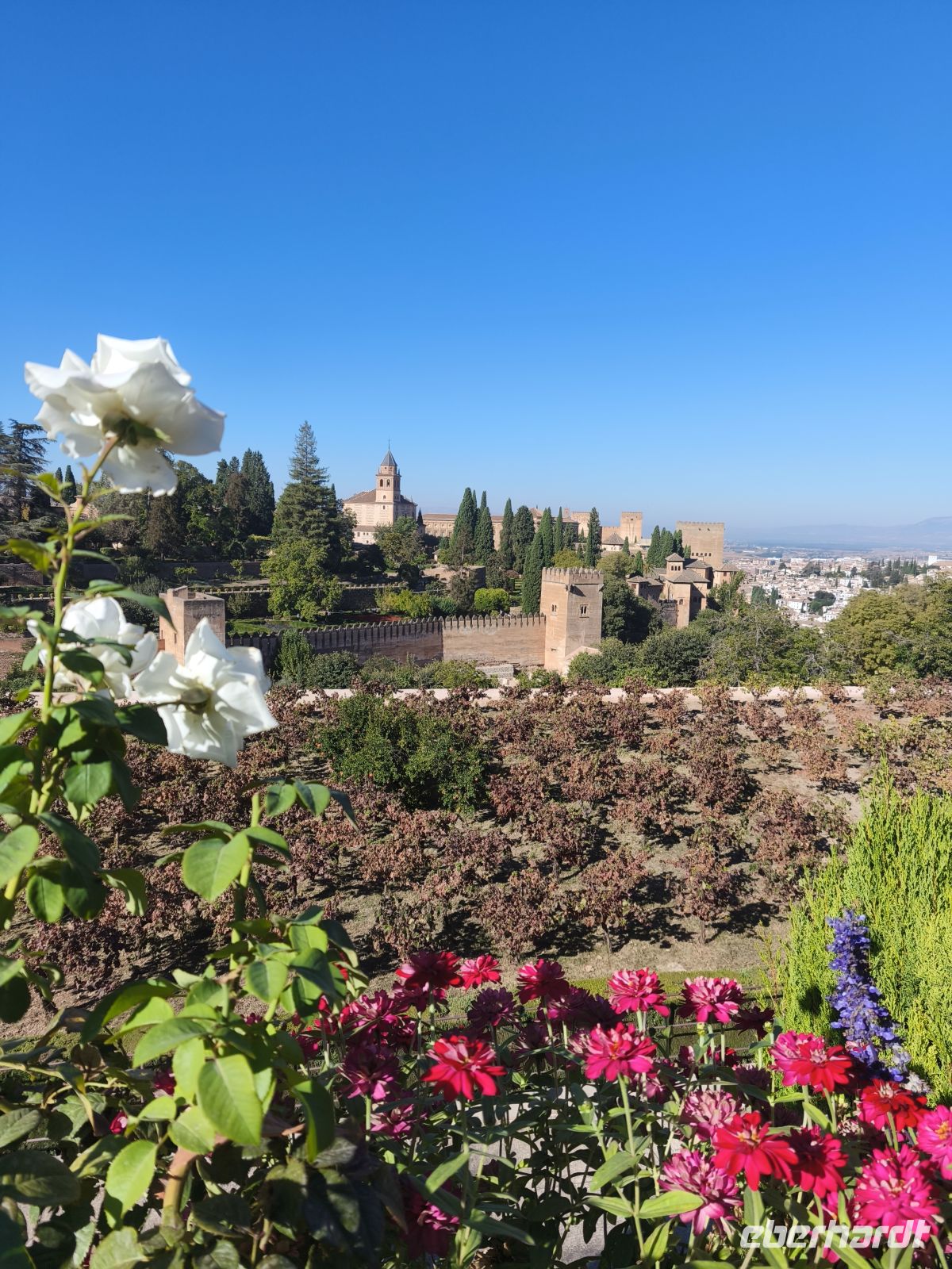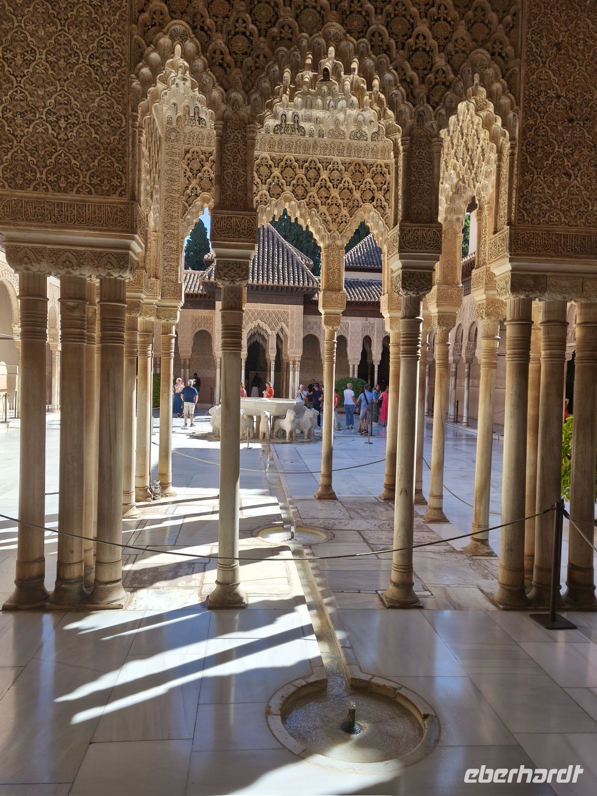 Heute ist sicherlich eine der Höhepunkte der Reise, die Besichtigung der Alhambra und die Gärten des Generalife. UNESCO Kulturerbe erster Klasse und eines der meistbesuchten Attraktionen in Europa und der Welt. Die Alhambra ist eine historische Palast und Festungsanlage, die als herausragendes Beispiel maurischer Architektur gilt. Sie ist ein sehr weitläufiger Komplex aus Palästen, Gärten und Befestigungsanlagen, der sich auf dem Sabikah-Hügel befindet. Der Name Alhambra bedeutet die rote Festung und bezieht sich auf die rötliche Färbung der Mauern. Wir haben einen hervorragenden Reiseführer, Pedro, der exklusiv Eberhardt Reisende führt. Er erklärt uns auf charmante und humorvolle Weise die Architektur und Geschichte der Alhambra und zeigt uns die besten "Postkartenfotomotive" . Wir sind absolut begeistert von dieser einmaligen Anlage. Nach über zwei Stunden endet die Führung und ich laufe mit einigen Gästen einmal um die Alhambra, natürlich mit einem Stopp für ein kühles Getränk und einen kleinen Snack.