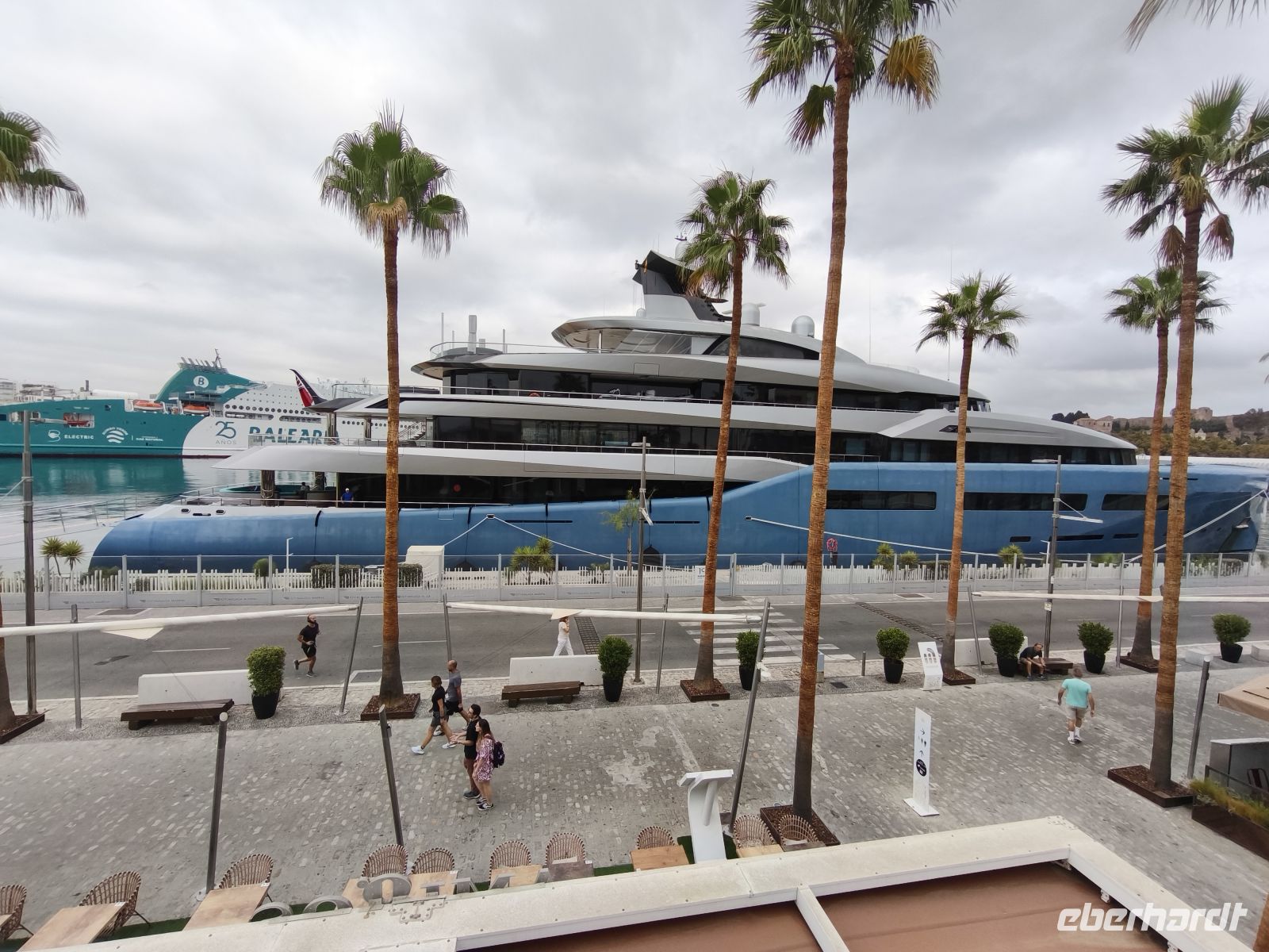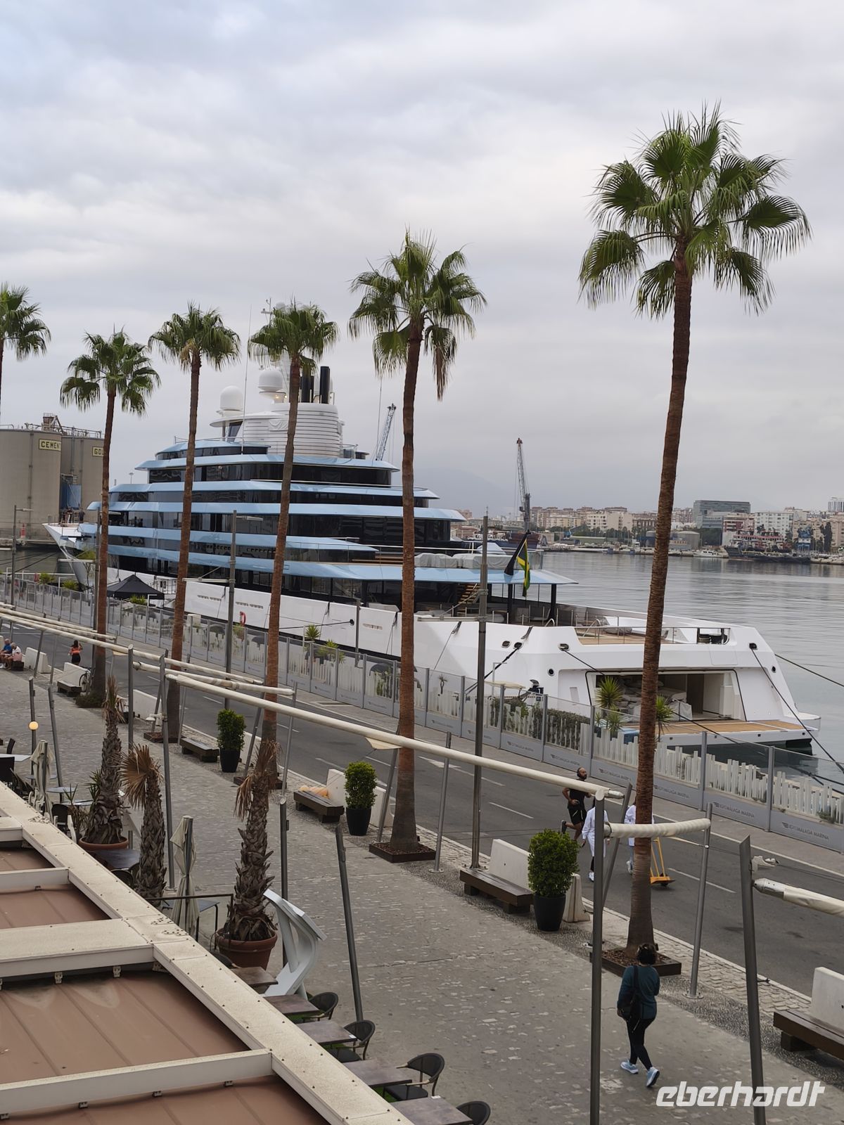 Erster Stopp der Hafen, da steht Sie "La Farola" (El Faro ist der männliche Ausdruck) der weibliche Leuchtturm der Stadt, weiß elegant und immer im Mittelpunkt. Wir werfen einen Blick auf den schicken Hafen mit etlichen Luxusyachten, edlen Bars und Restaurants.