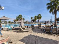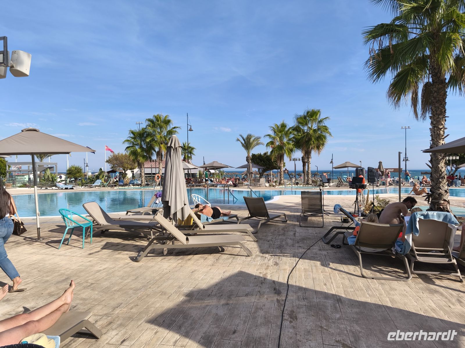 Wir haben noch ein wenig Zeit die Arena und die umliegenden Gassen und Parks auf uns wirken zu lassen, bevor wir mit dem Bus in unser Hotel direkt am Meer fahren. Viele nutzen die Gelegenheit für ein kühles Bad im Meer oder in den großen Pools sehr wohltuend nach dem heißen Tag.