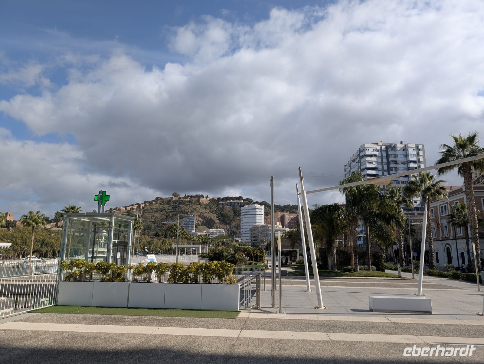 Wir fuhren zunächst ein bisschen durch die Stadt und dann in den modernen Hafen namens „Muelle“. Dort spazierten wir unter Palmen,