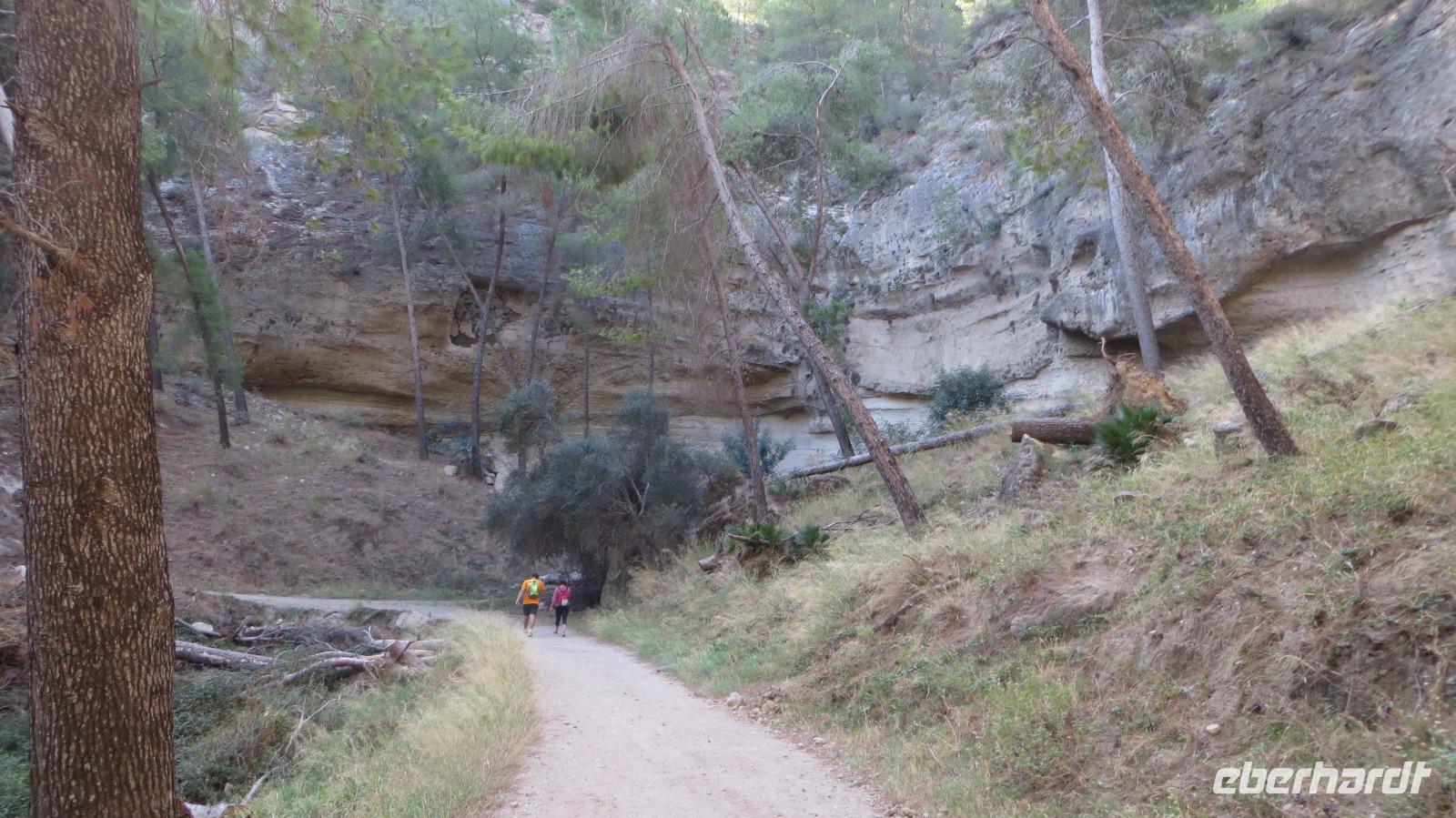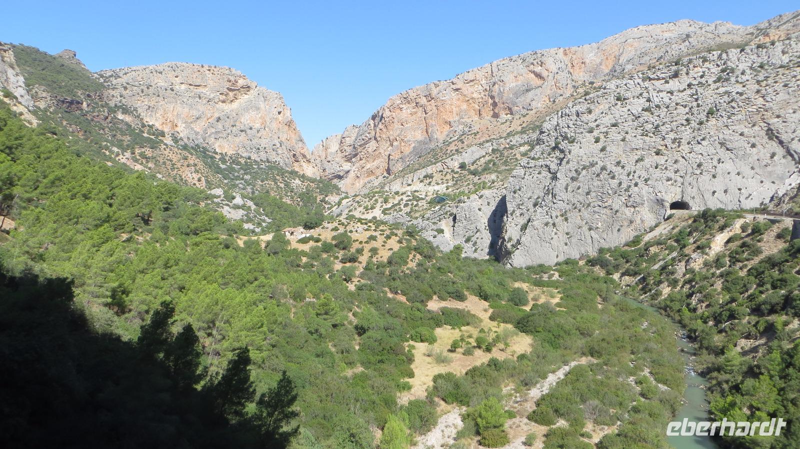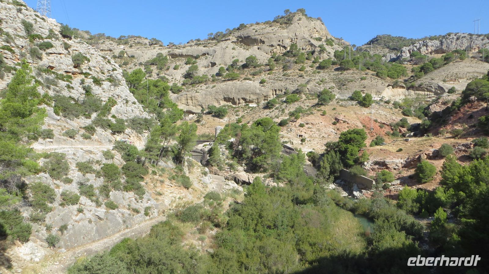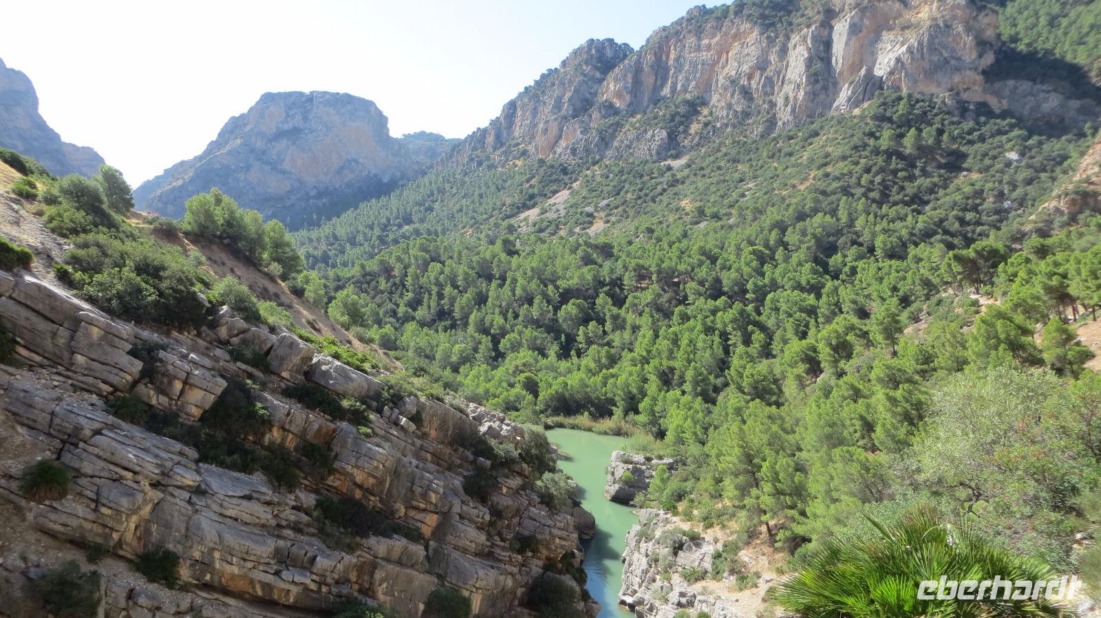 Die Sonne schien und unser Abenteuer begann! Wir fuhren durch das Guadalhorce-Tal in Richtung Nordem bis Ardales. Auf diesem Weg haben wir die verschiedene Zitronen- und Orangenplantage der Provinz gesehen. In Ardales angekommen, sind wir ausgestiegen und sind unsere ersten 2,7 Km bis zum Eingang des Caminito del Rey gegangen. Am Anfang war es etwas frisch aber langsam kamen die warmen Temperaturen und wir konnten erste Eindrücke von Crecendo bekommen. Eine leichte Brise mit Mittelmeeraroma, die ruhige Lage zwischen Kiefern und dem See sowie der Klang der Natur machten diese erste Strecke zu einem ganz besonderen Erlebnis.