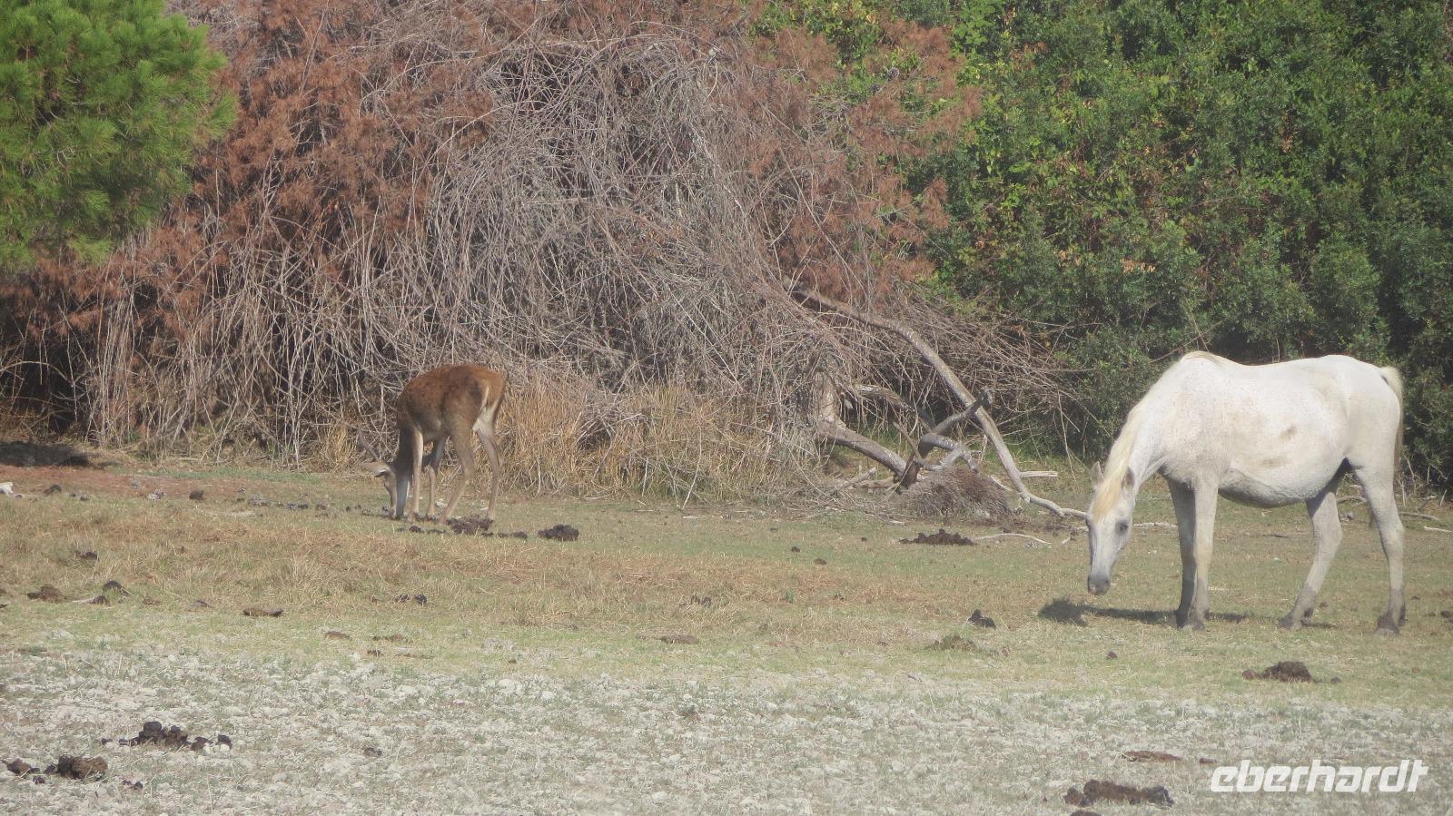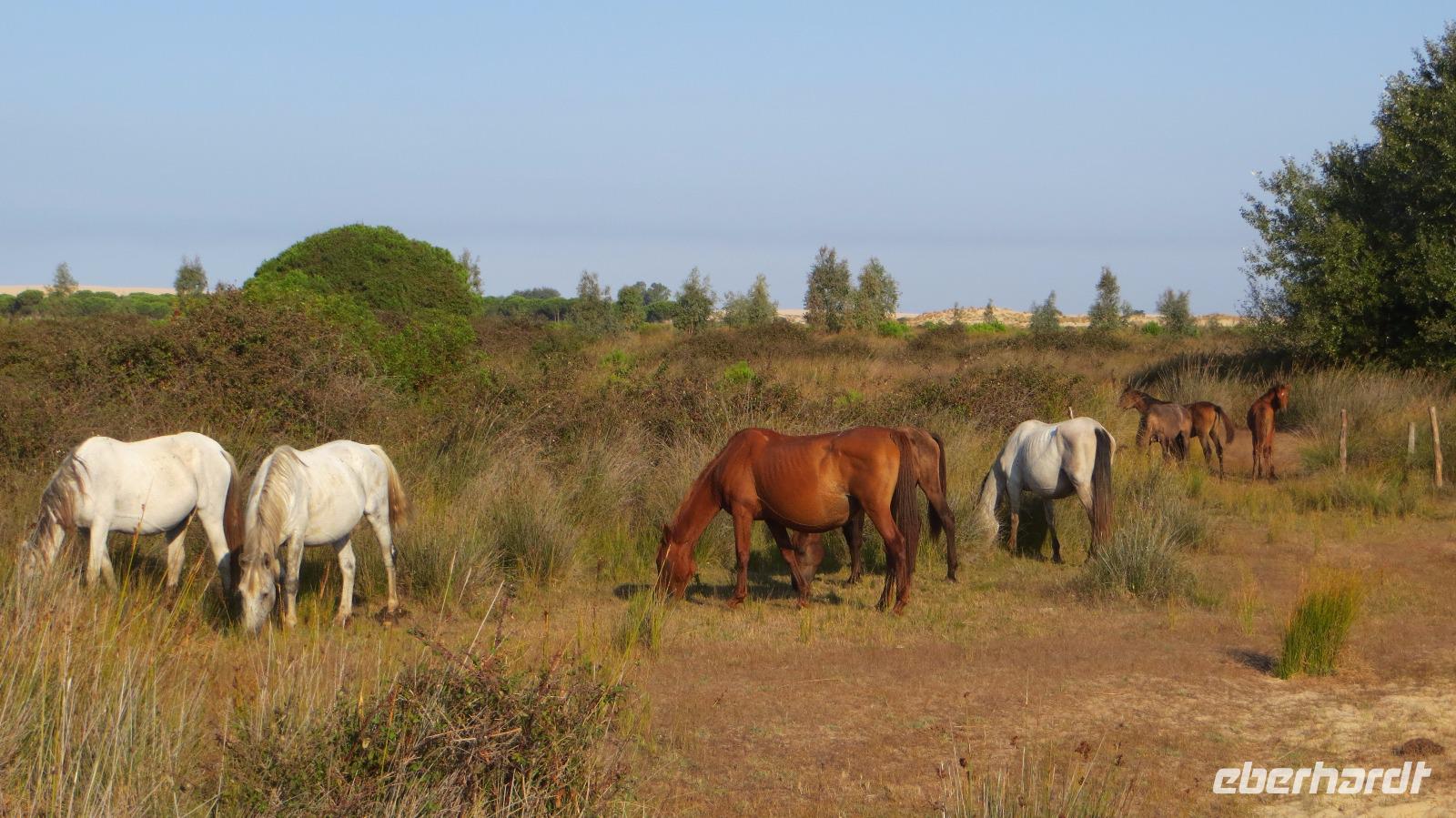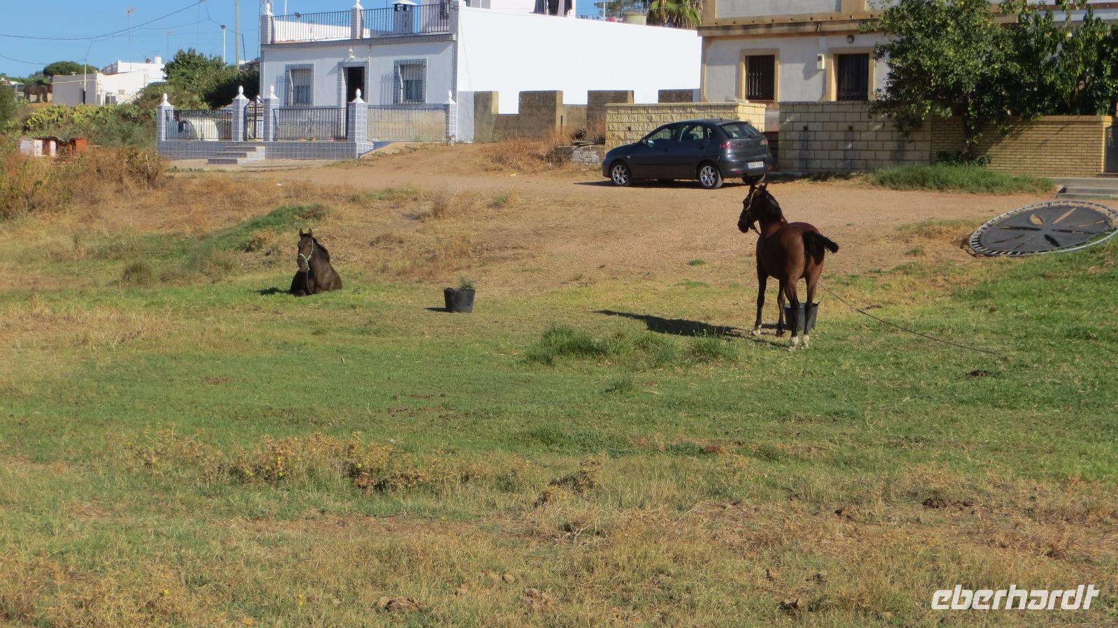 Leider sahen die Sümpfe wie eine Wüste aus, weil der Sommer vorbei war und man immernoch auf den ersten Regen wartet. Man muss bedenken, dass Doñana ein Sumpf ist, der von Flusswasser lebt. Also wenn es keinen Regen gibt, gibt es auch keinen Sumpf. In diese Sümpfe haben wir einige „Augen" gesehen. In dieser Umgebung haben wir viele Waldpferde, Kühe, Wildschweine und den besonderen Iberischen Kaiseradler betrachtet.