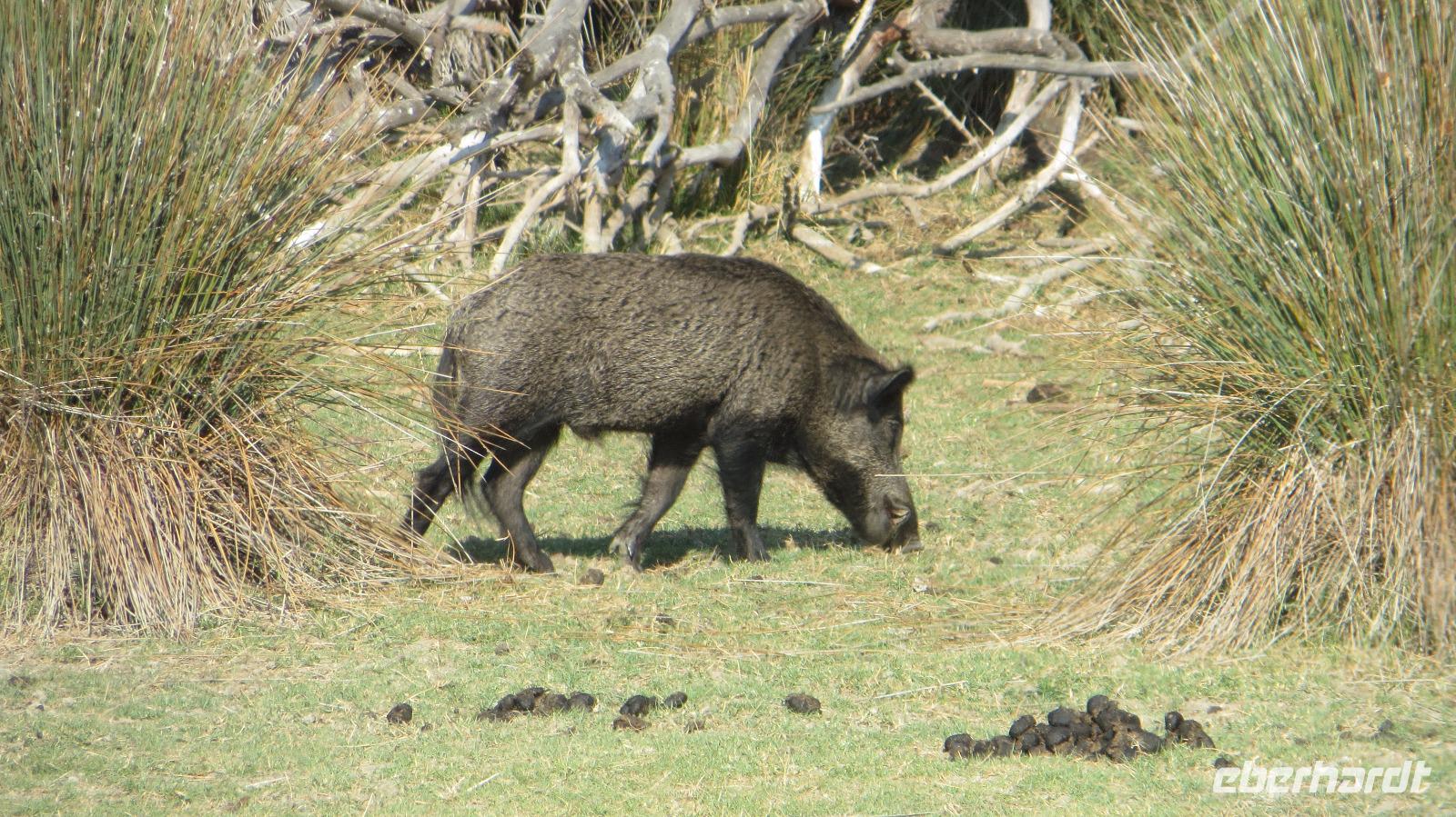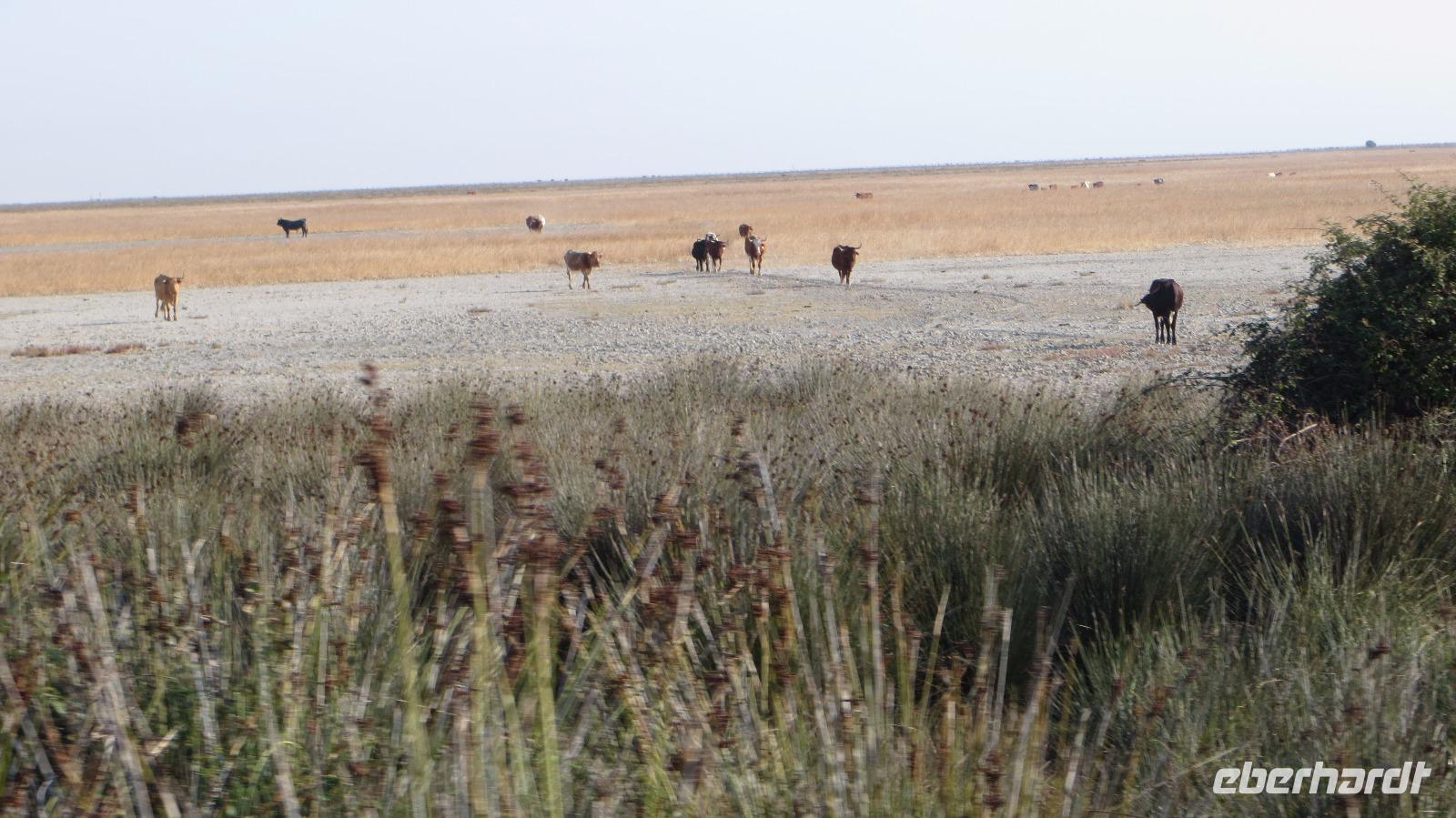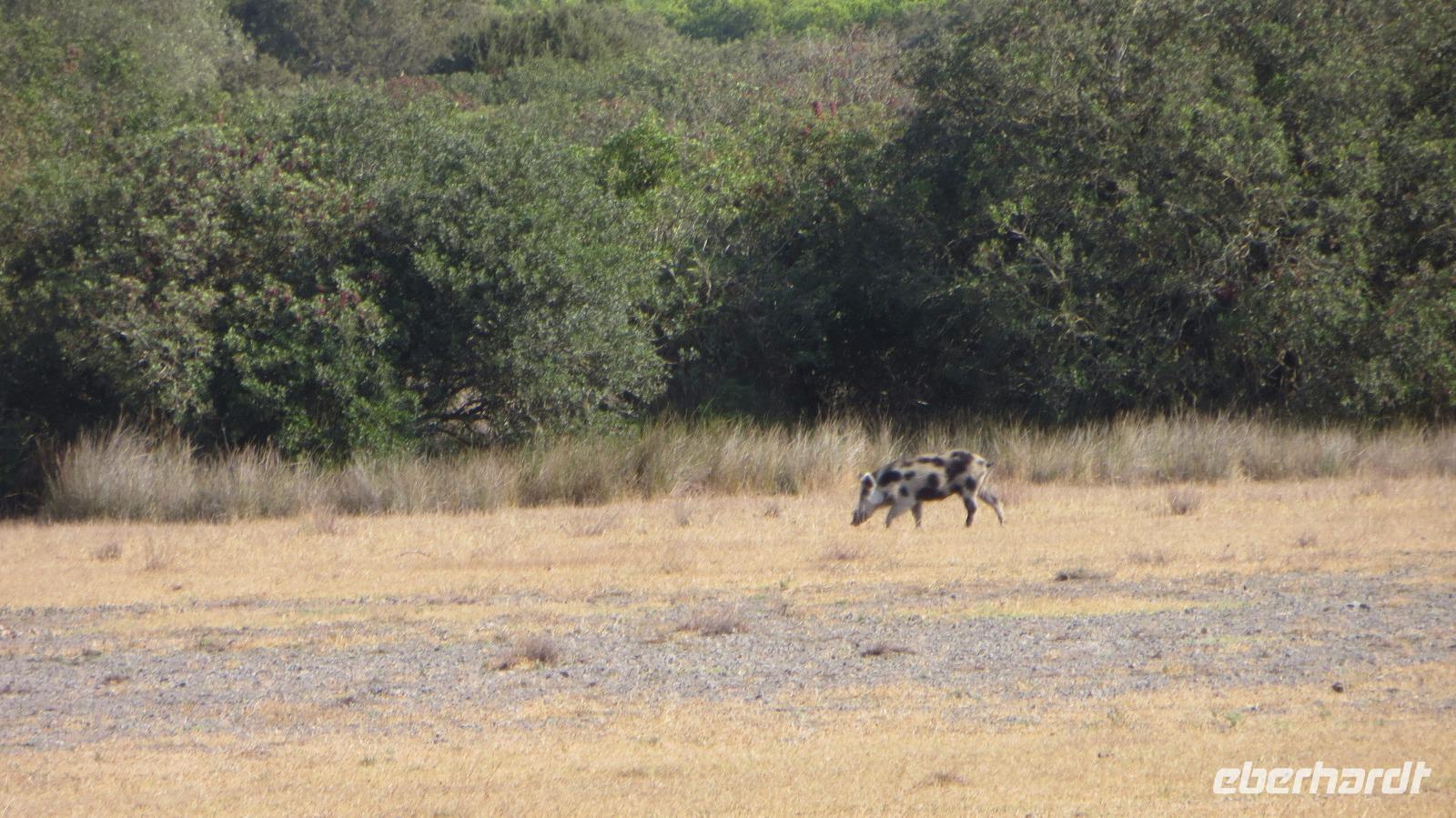 Leider sahen die Sümpfe wie eine Wüste aus, weil der Sommer vorbei war und man immernoch auf den ersten Regen wartet. Man muss bedenken, dass Doñana ein Sumpf ist, der von Flusswasser lebt. Also wenn es keinen Regen gibt, gibt es auch keinen Sumpf. In diese Sümpfe haben wir einige „Augen" gesehen. In dieser Umgebung haben wir viele Waldpferde, Kühe, Wildschweine und den besonderen Iberischen Kaiseradler betrachtet.