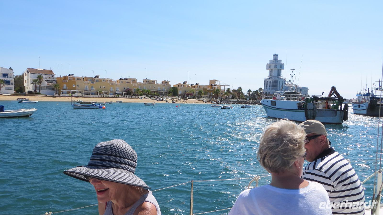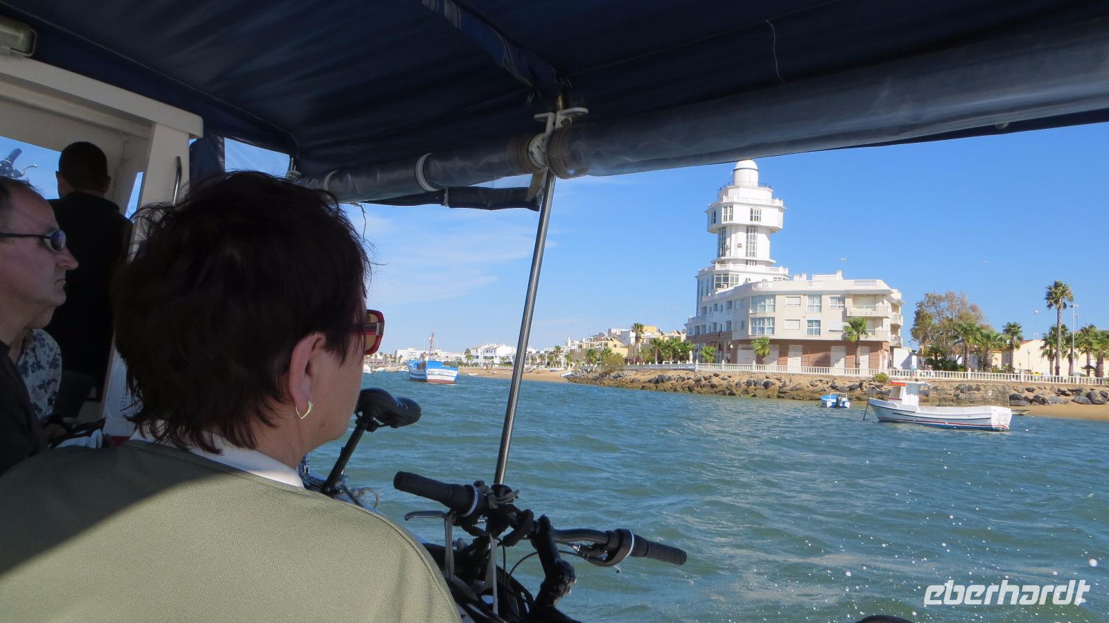 Danach fuhren wir direkt zum Hafen, um unsere Fähre zu nehmen und ein weiteres Mal die Grenze zu überqueren. Wieder in Spanien angekommen, spazierten wir durch Ayamonte und sind über den Fahrradweg bis nach Isla Canela gefahren. Da befand sich auch unser Boot, mit dem wir dann zurück nach Isla Cristina fuhren. Dort endete unser Tagesprogramm auch schon.