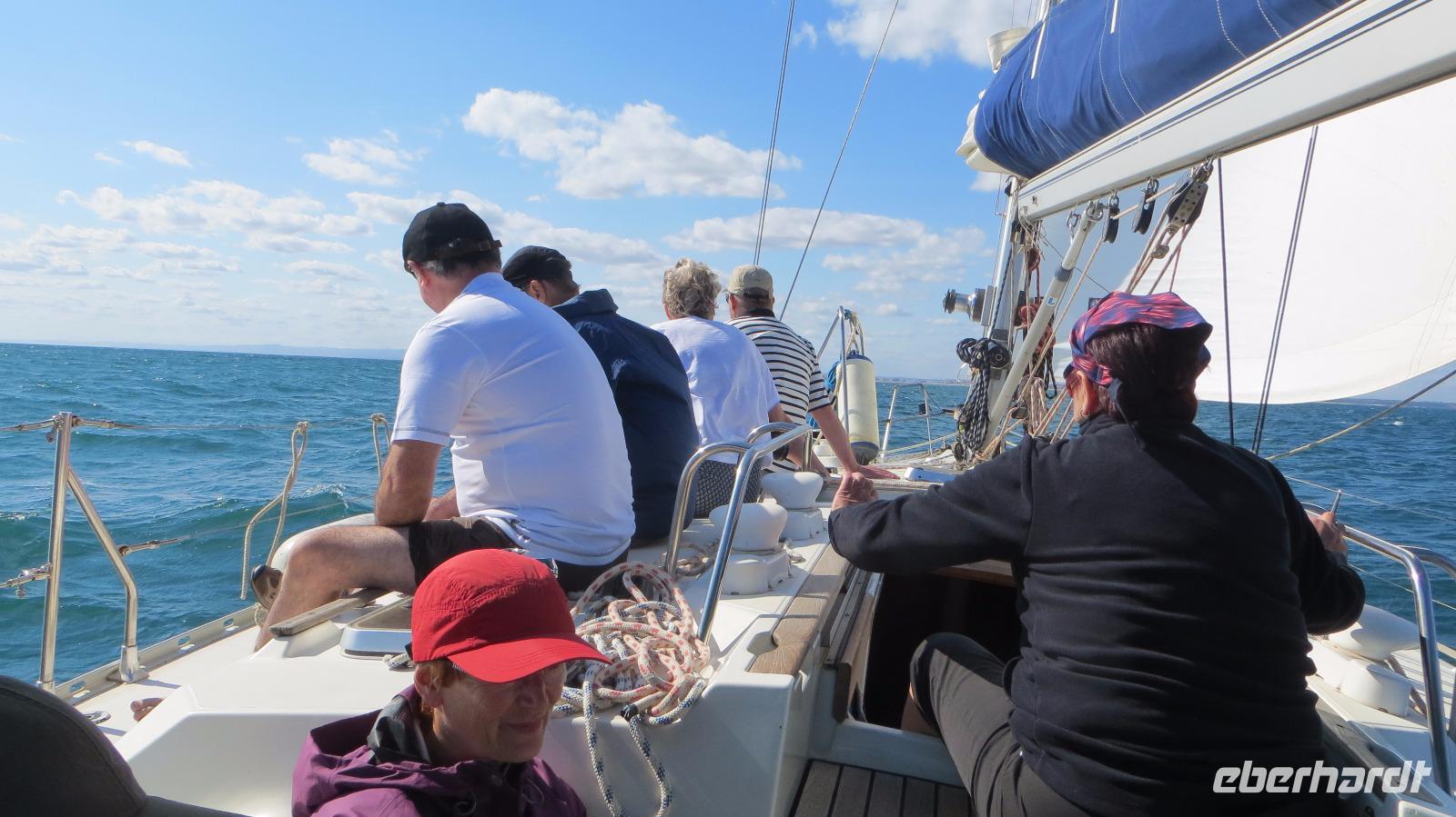 Am Mittag haben wir uns alle gemeinsam getroffen und spazierten entlang der Promenade bis zum Hafen. Dort angekommen, stiegen wir auf unser Segelboot und stachen in See. Es war nicht nur eine einfache Segeltour, sondern uns wurde auch viel über die Umgebung und das Meer erzählt.