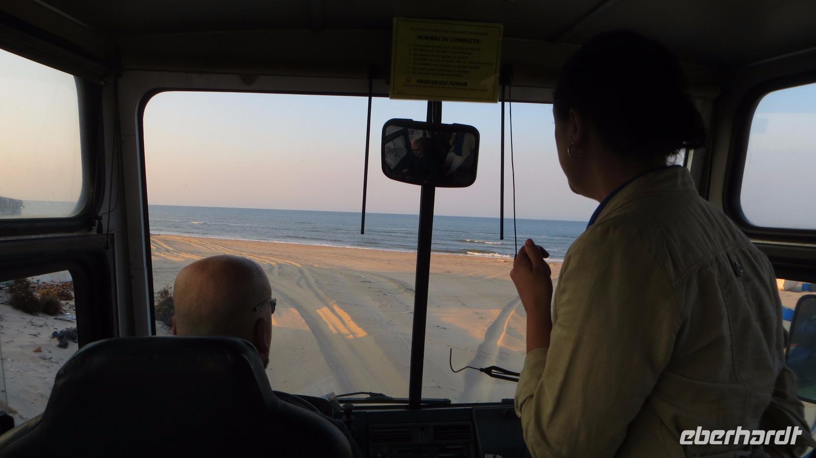 Nach dem Frühstück spazierten wir von unserem Hotel aus über die Strandpromenade bis zum Hafen. Da traffen wir uns mit Mónica Maite (unsere örtlice Reiseleterin) und unserem Mechaniker des Tages, Antonio.