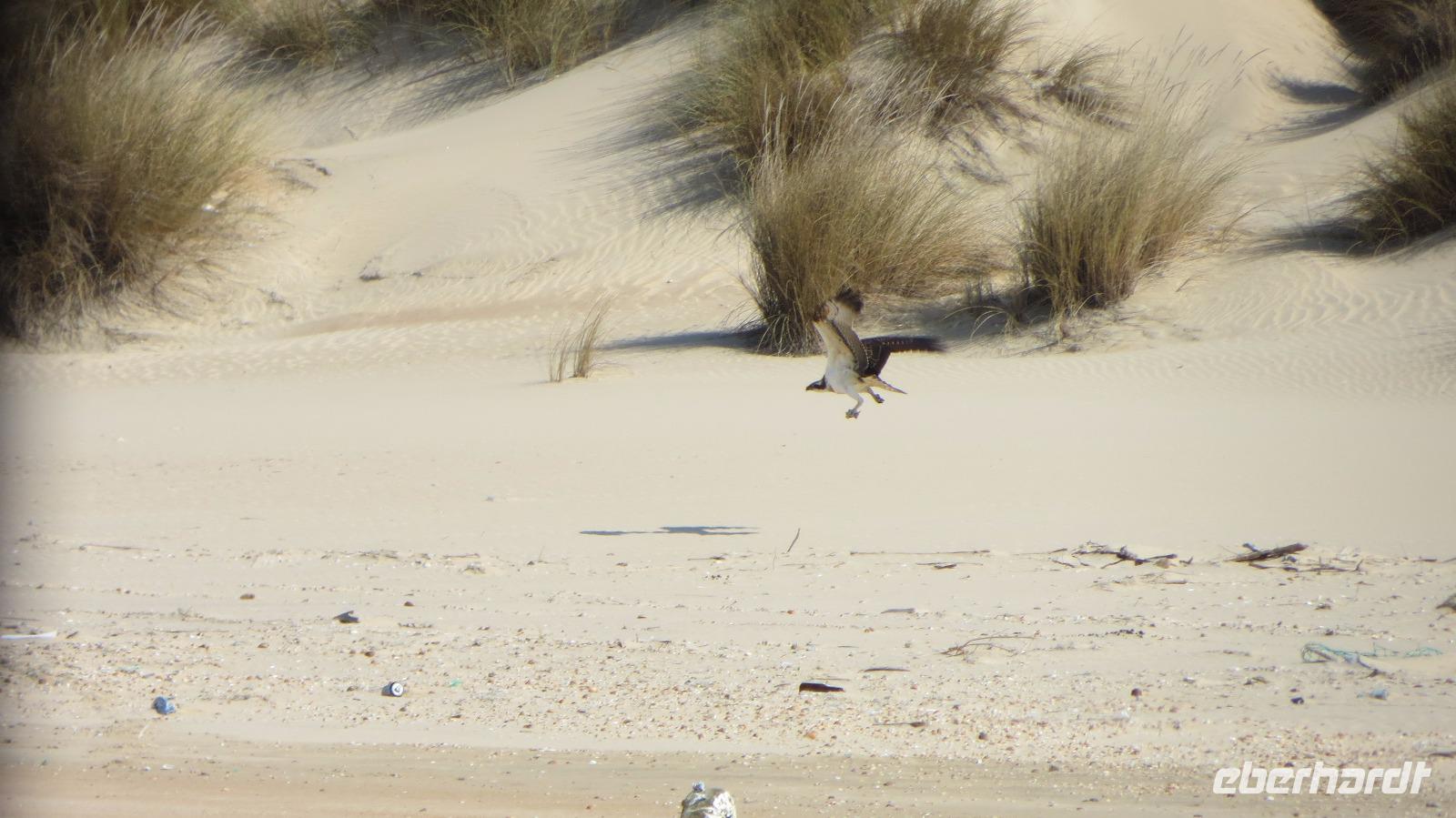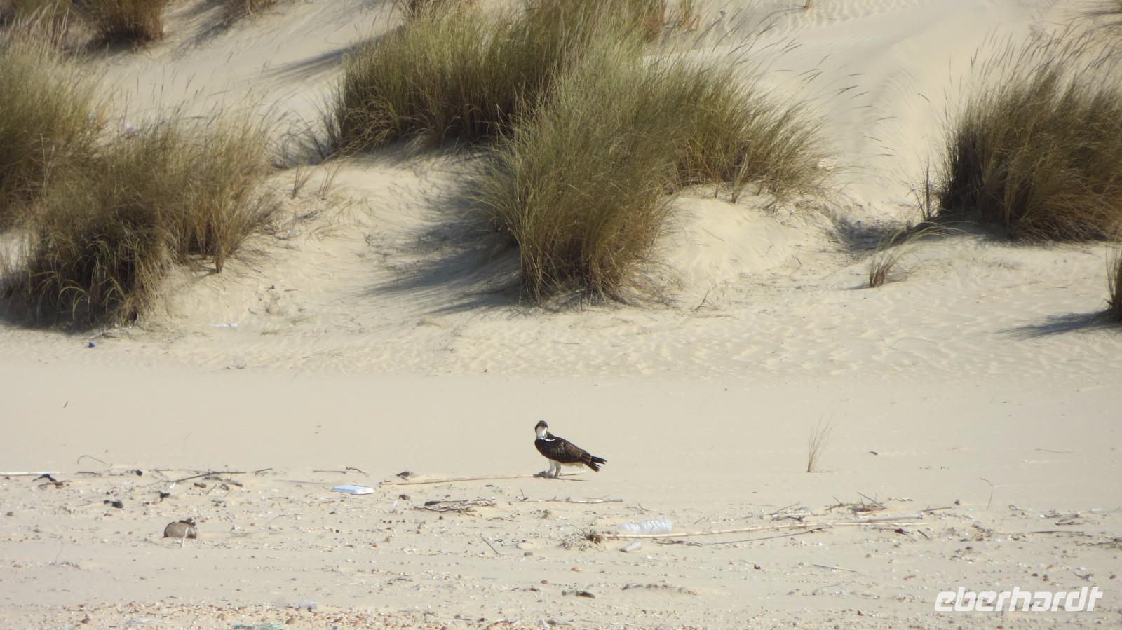 Anschließend erreichten wir wieder den Strand und sahen auf der anderen Seite des Guadalquivir-Flusses das Dorf Sanlúcar de Barrameda, welches bekannt ist für seinen Wein. In dieser Umgebung sahen wir auch das bekannte Reisboot im Meer und trafen einen Fischadler.