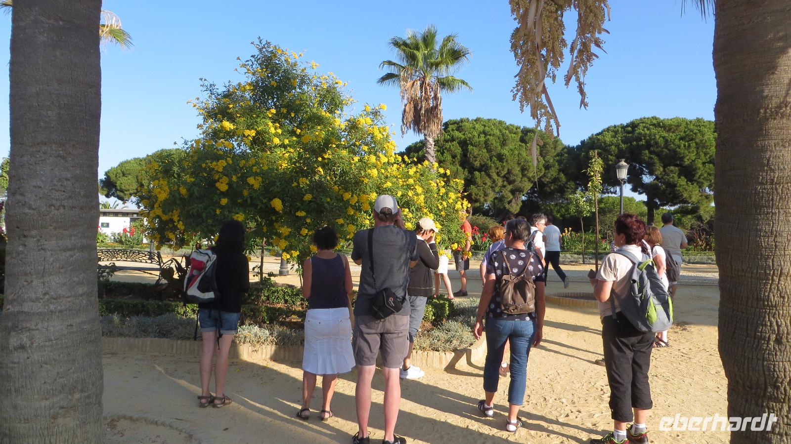 Nach dieser schönen Besichtigung in dem Nationalpark, fuhren mit unserer Reiseleiterin Monika zum Wallfahrtsort „El Rocío", mit seinen Sand-Straßen die uns an den Western erinnert haben. Dort besuchten wir eine typische Bruderschaft und die bekannte Madonna. Außerdem haben wir an diesem wundervollen Platz unsere Mittagspause genossen.