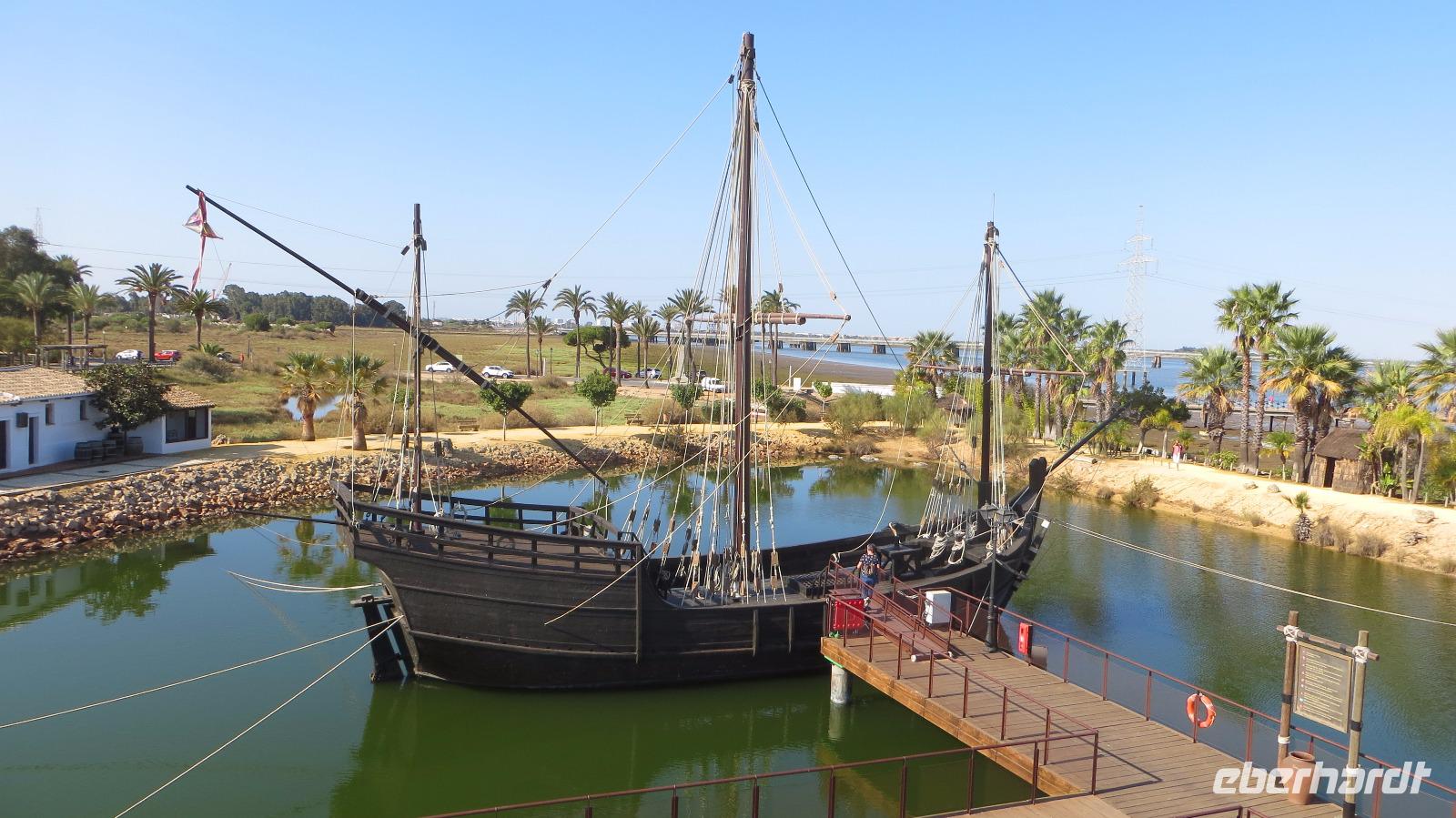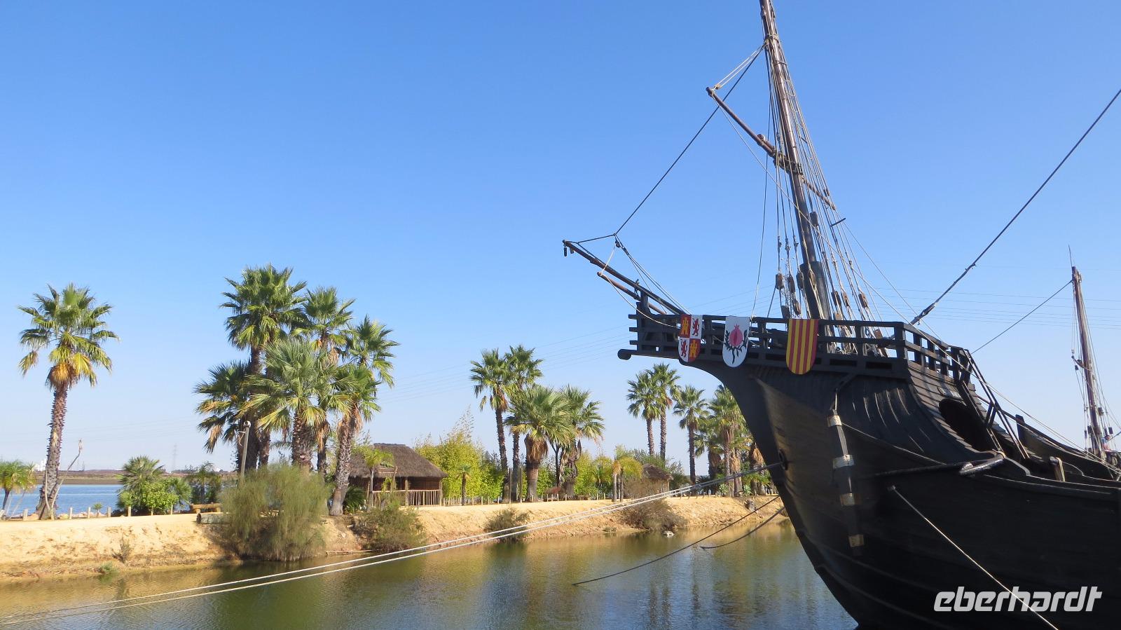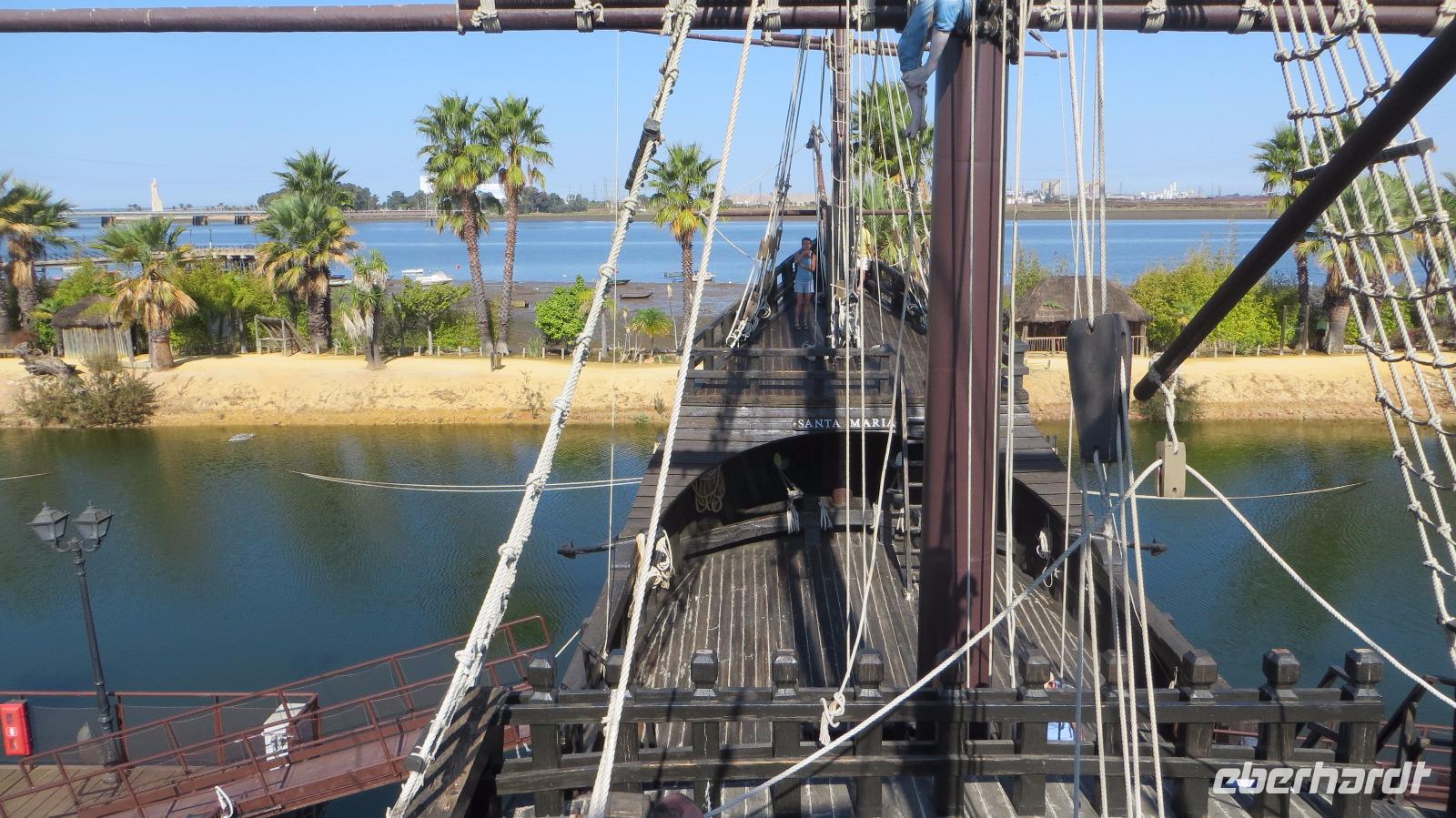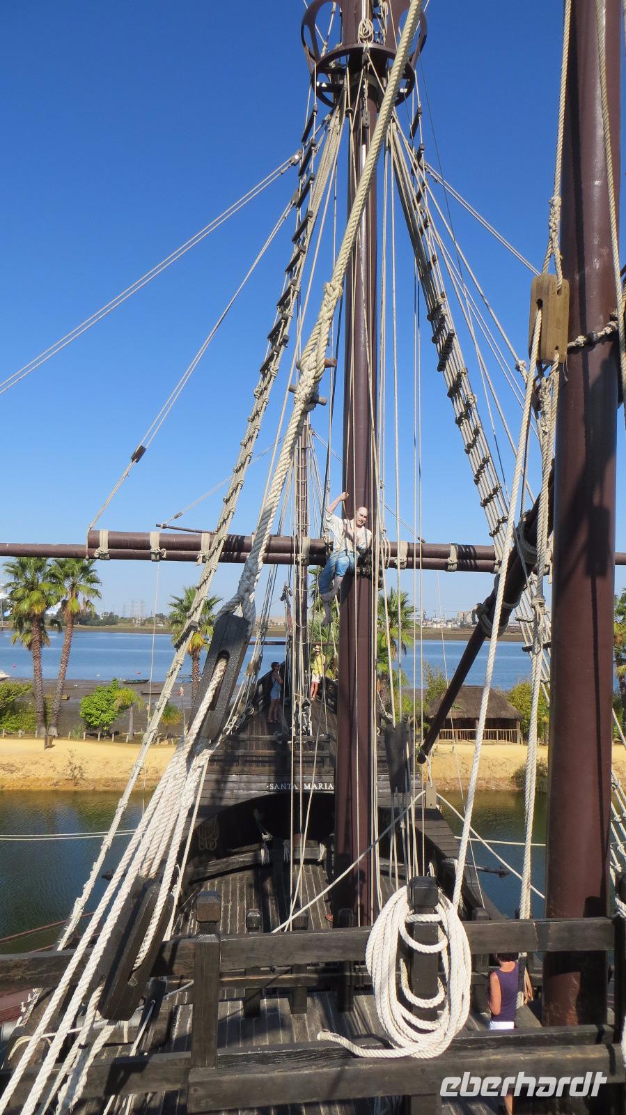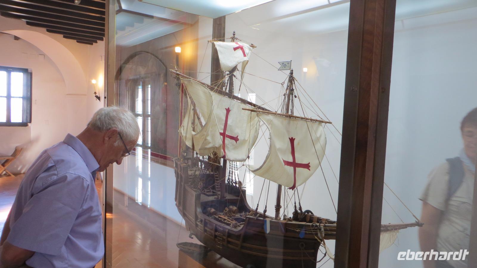 Nach dem Frühstück fuhren wir nach La Rábida, auf den Spuren von Kolumbus. La Rábida ist das Franziskaner-Kloster in dem Kolumbus seine Entdeckungsreise plante. Bei einer Führung haben wir die Geschichte Kolumbus, sowie anderen Entdeckern Amerikas kennen gelernt. Wir haben ebenfalls weitere schöne Räume des Klosters besucht, wie zum Beispiel: die Innehöfe, die Sakristei oder obere Etage, wo sich kleine Replikate von den drei Schiffe befinden. Im Anschluss gingen wir zum Hafen, um die drei Schiffe in ihrer voller Pracht zu sehen. Natürlich, konnten wir zwei der Karavellen von Innen besichtigen: die kleine „La Niña" und „La Pinta", als auch der grosse Nao „Santa María", auf welcher Kolumbus gewesen ist. Bevor wir unsere Besichtigung in La Rábida fortsetzten, schauten wir ein Video über der Entdeckungsreise und das neue Land. Dann fuhren wir nach Moguer, wo haben wir die traditionelle Weinkellerei Saenz mit seinem bekannten Orangenwein besuchten. Der Besitzer, Antonio, hat uns vile über die Herstellung der Weinsorten erklärt. Er erzählte uns Legenden über den Wein und seine Familie. Besonders für diese Weinkellerei ist ihre traditionelle Arbeitsweise, die von Generation zu Generation weiter gegeben wurde. Bodegas Saenz wurde in einem Kloster erbaut, und war das erste Gebäude mit Strom im Dorf. Die Bodega war die einzige die Orangenwein produzierte. Weil hier über 100 Jahre der bekannte Wein produzierten wird hat die Bodega Saenz vor sieben Jahren die geschützte Herkunftsbezeichnung erhalten. Bei leckeren Tapas, haben wir den leckeren Orangenwein und den Vermout verkostet, um an diesen besonderen Moment zu erinnern. Außerdem, bedanken wir uns bei Antonio, seinen teuersten Wein verkosten zu dürfen.