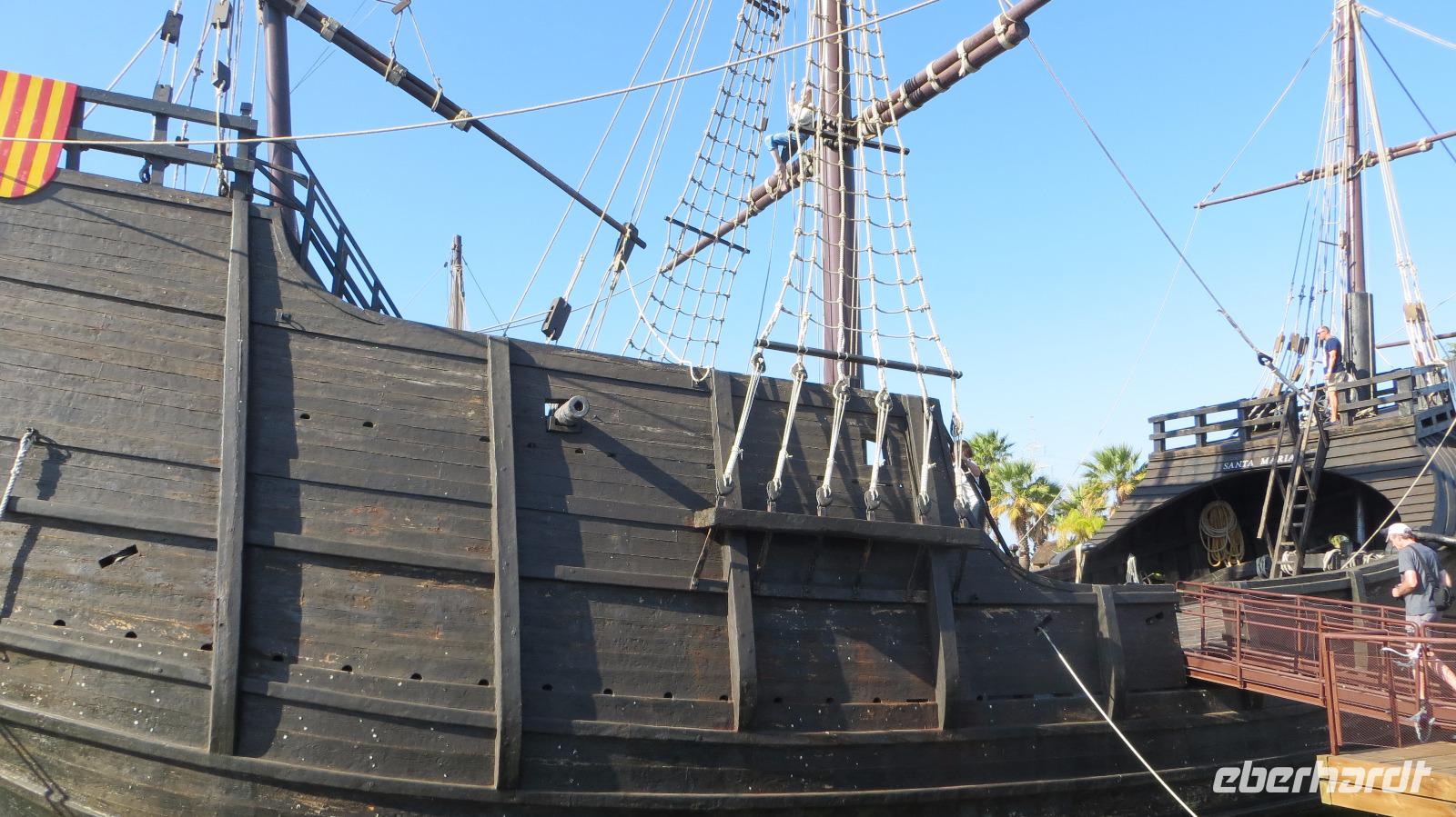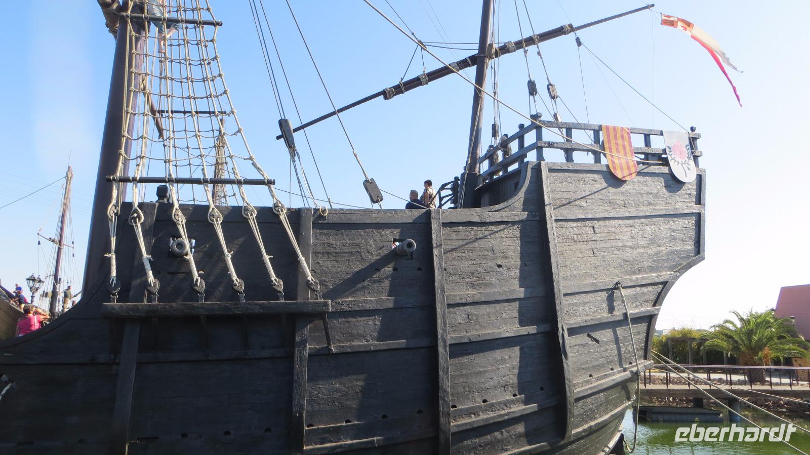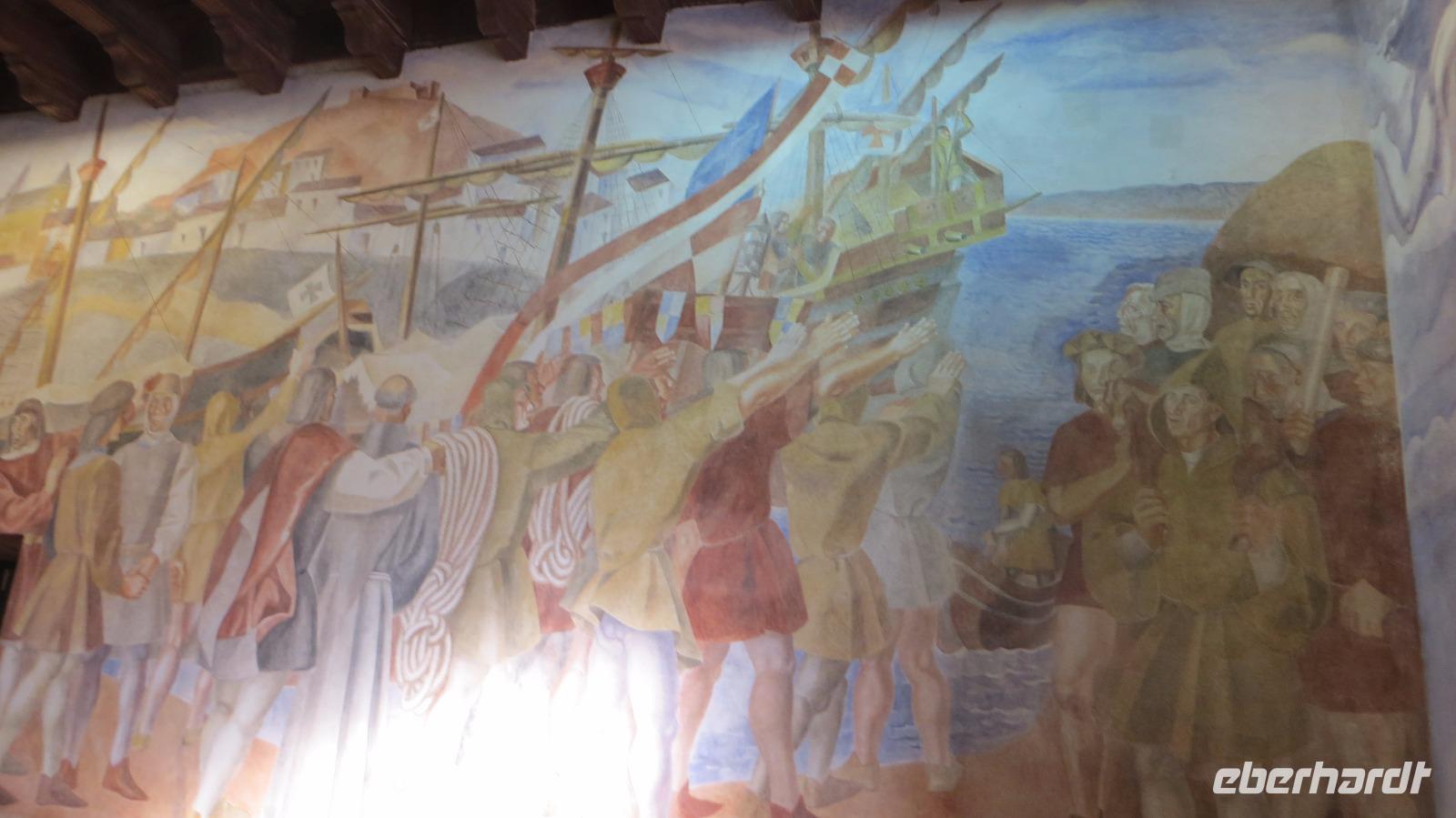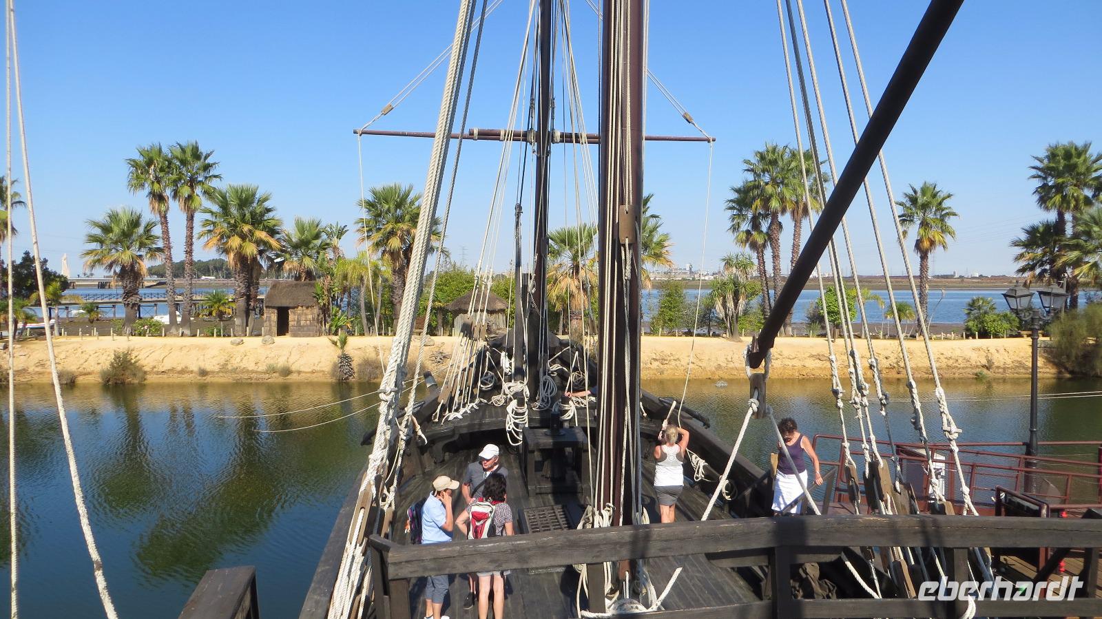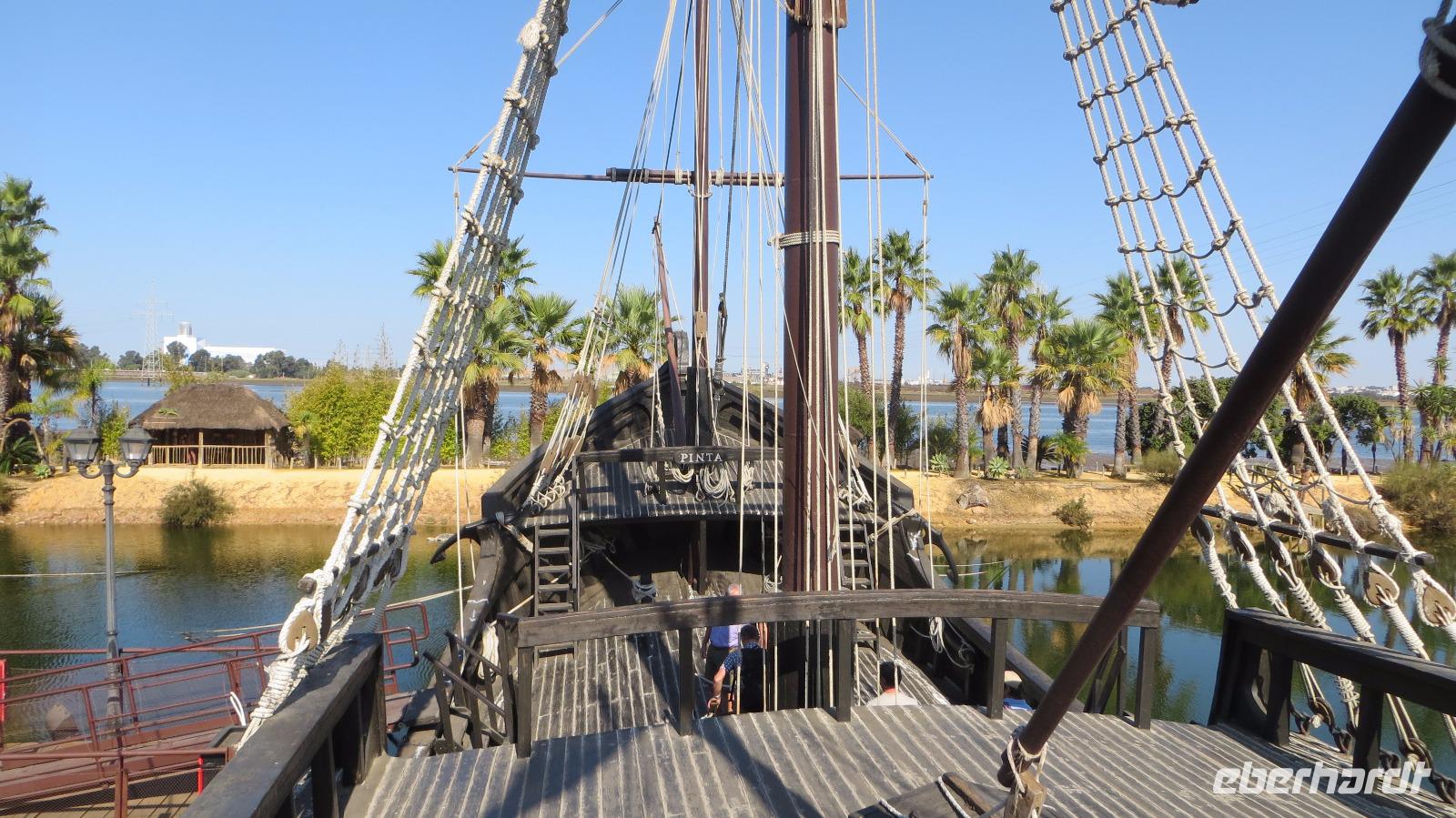 Nach dem Frühstück fuhren wir nach La Rábida, auf den Spuren von Kolumbus. La Rábida ist das Franziskaner-Kloster in dem Kolumbus seine Entdeckungsreise plante. Bei einer Führung haben wir die Geschichte Kolumbus, sowie anderen Entdeckern Amerikas kennen gelernt. Wir haben ebenfalls weitere schöne Räume des Klosters besucht, wie zum Beispiel: die Innehöfe, die Sakristei oder obere Etage, wo sich kleine Replikate von den drei Schiffe befinden. Im Anschluss gingen wir zum Hafen, um die drei Schiffe in ihrer voller Pracht zu sehen. Natürlich, konnten wir zwei der Karavellen von Innen besichtigen: die kleine „La Niña" und „La Pinta", als auch der grosse Nao „Santa María", auf welcher Kolumbus gewesen ist. Bevor wir unsere Besichtigung in La Rábida fortsetzten, schauten wir ein Video über der Entdeckungsreise und das neue Land. Dann fuhren wir nach Moguer, wo haben wir die traditionelle Weinkellerei Saenz mit seinem bekannten Orangenwein besuchten. Der Besitzer, Antonio, hat uns vile über die Herstellung der Weinsorten erklärt. Er erzählte uns Legenden über den Wein und seine Familie. Besonders für diese Weinkellerei ist ihre traditionelle Arbeitsweise, die von Generation zu Generation weiter gegeben wurde. Bodegas Saenz wurde in einem Kloster erbaut, und war das erste Gebäude mit Strom im Dorf. Die Bodega war die einzige die Orangenwein produzierte. Weil hier über 100 Jahre der bekannte Wein produzierten wird hat die Bodega Saenz vor sieben Jahren die geschützte Herkunftsbezeichnung erhalten. Bei leckeren Tapas, haben wir den leckeren Orangenwein und den Vermout verkostet, um an diesen besonderen Moment zu erinnern. Außerdem, bedanken wir uns bei Antonio, seinen teuersten Wein verkosten zu dürfen.