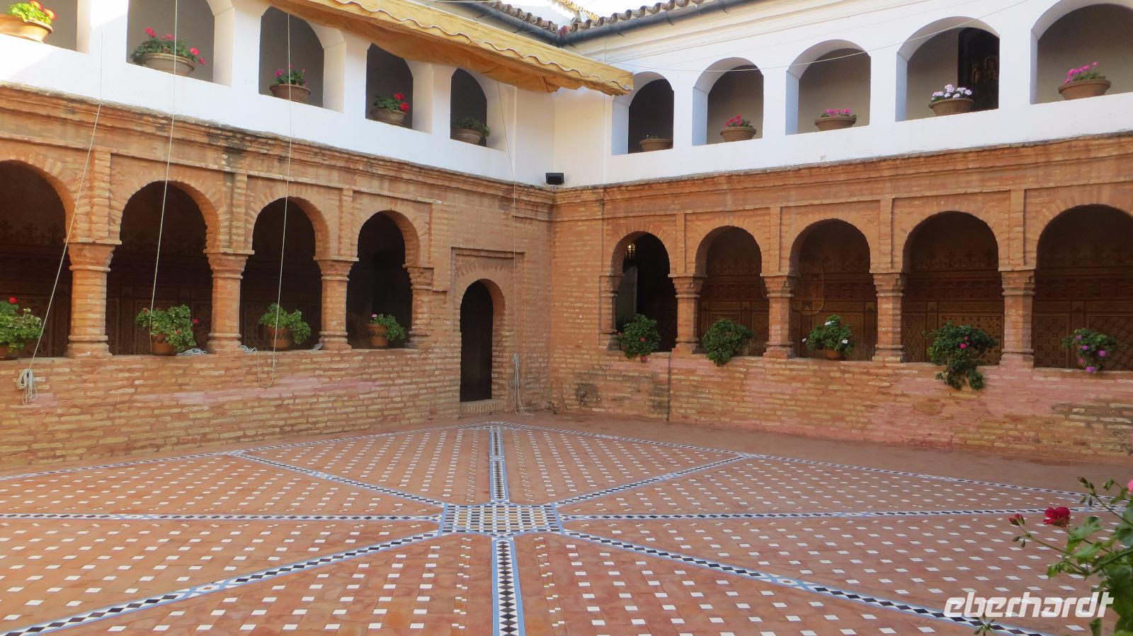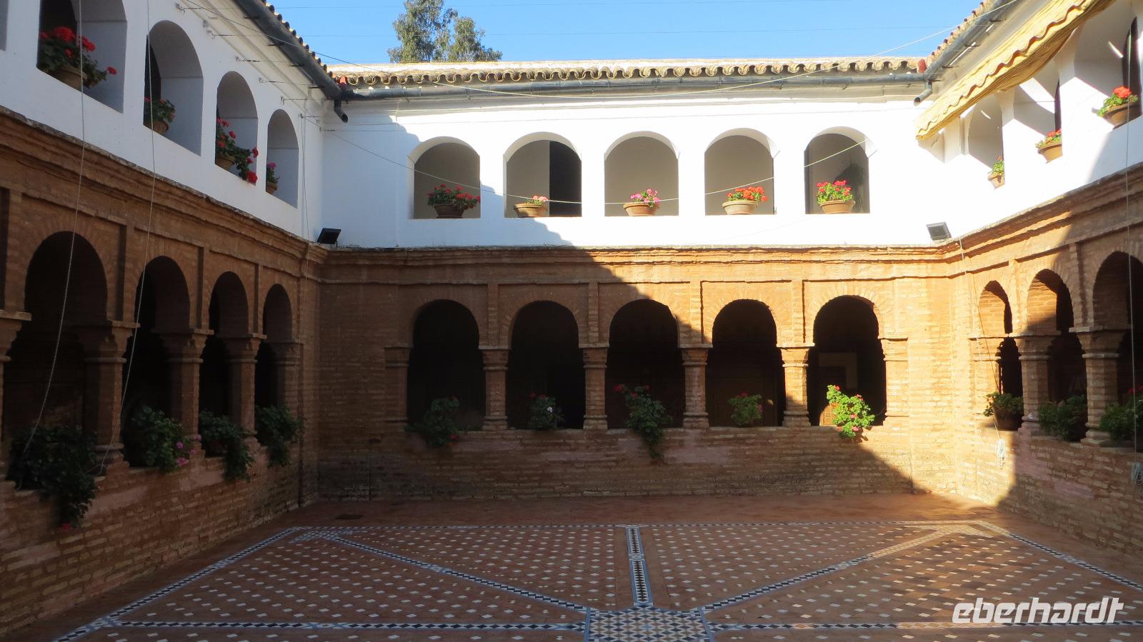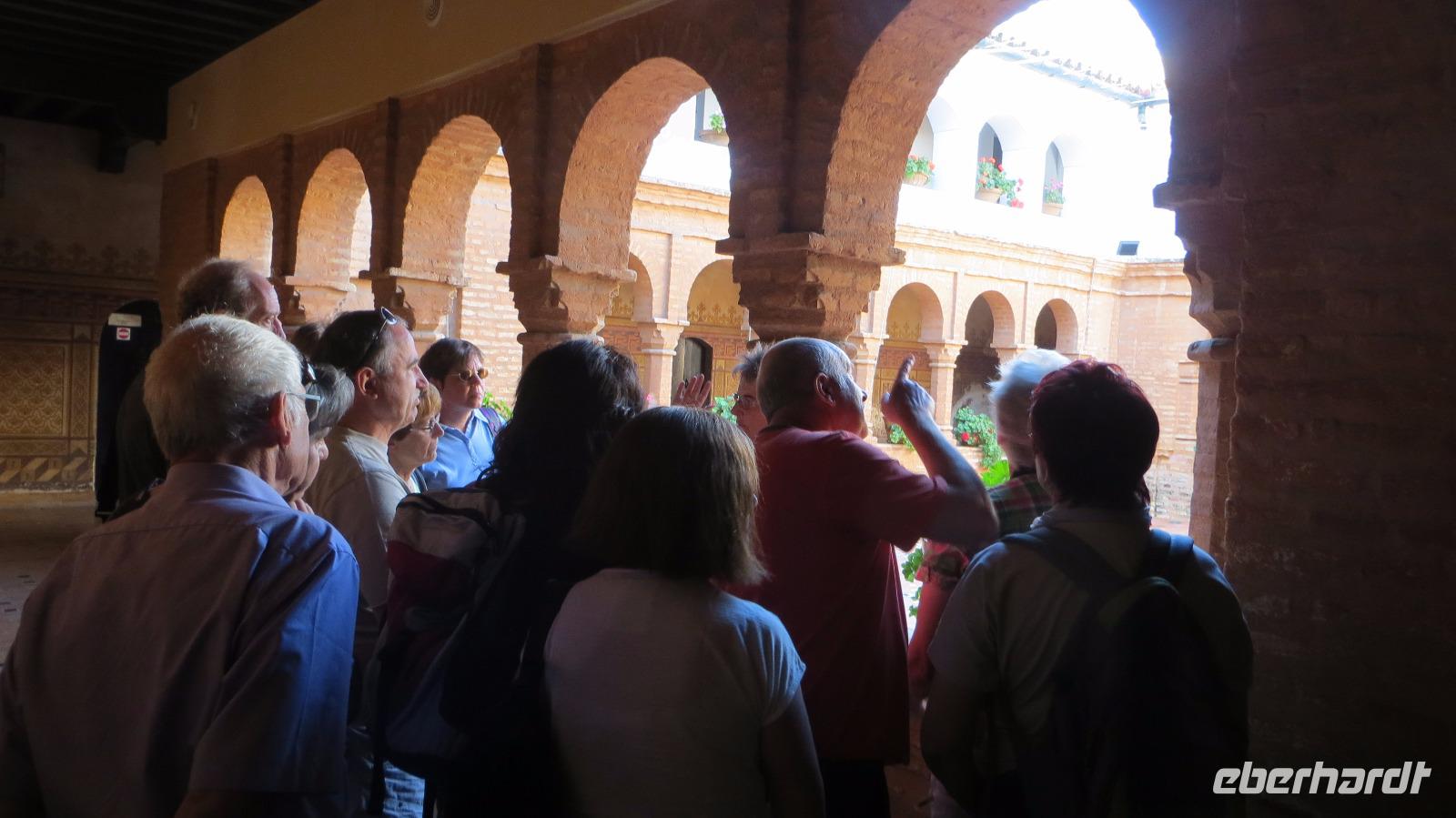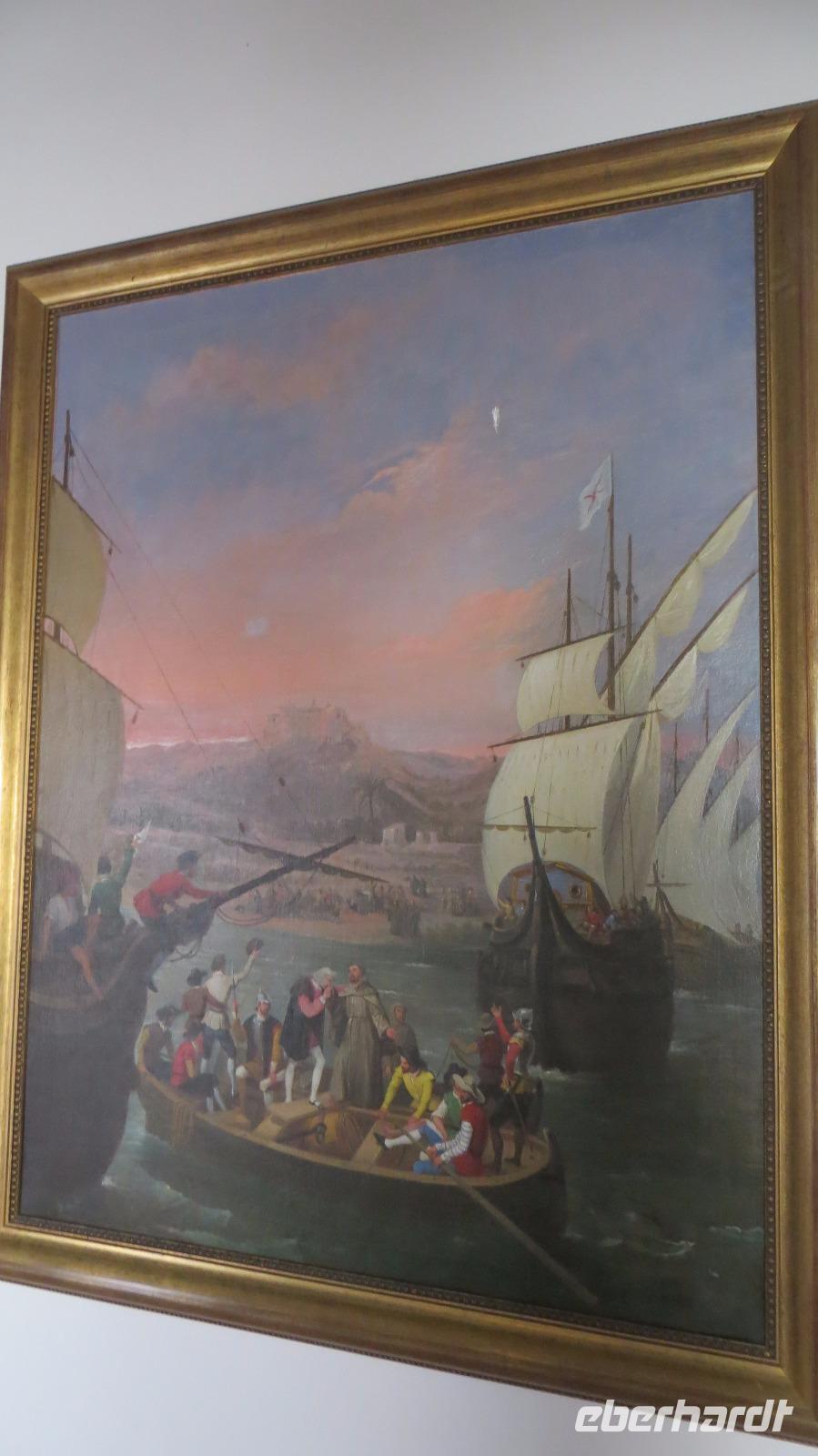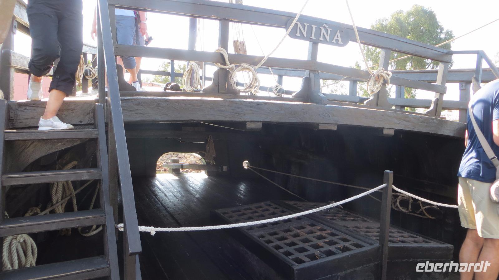 Nach dem Frühstück fuhren wir nach La Rábida, auf den Spuren von Kolumbus. La Rábida ist das Franziskaner-Kloster in dem Kolumbus seine Entdeckungsreise plante. Bei einer Führung haben wir die Geschichte Kolumbus, sowie anderen Entdeckern Amerikas kennen gelernt. Wir haben ebenfalls weitere schöne Räume des Klosters besucht, wie zum Beispiel: die Innehöfe, die Sakristei oder obere Etage, wo sich kleine Replikate von den drei Schiffe befinden. Im Anschluss gingen wir zum Hafen, um die drei Schiffe in ihrer voller Pracht zu sehen. Natürlich, konnten wir zwei der Karavellen von Innen besichtigen: die kleine „La Niña" und „La Pinta", als auch der grosse Nao „Santa María", auf welcher Kolumbus gewesen ist. Bevor wir unsere Besichtigung in La Rábida fortsetzten, schauten wir ein Video über der Entdeckungsreise und das neue Land. Dann fuhren wir nach Moguer, wo haben wir die traditionelle Weinkellerei Saenz mit seinem bekannten Orangenwein besuchten. Der Besitzer, Antonio, hat uns vile über die Herstellung der Weinsorten erklärt. Er erzählte uns Legenden über den Wein und seine Familie. Besonders für diese Weinkellerei ist ihre traditionelle Arbeitsweise, die von Generation zu Generation weiter gegeben wurde. Bodegas Saenz wurde in einem Kloster erbaut, und war das erste Gebäude mit Strom im Dorf. Die Bodega war die einzige die Orangenwein produzierte. Weil hier über 100 Jahre der bekannte Wein produzierten wird hat die Bodega Saenz vor sieben Jahren die geschützte Herkunftsbezeichnung erhalten. Bei leckeren Tapas, haben wir den leckeren Orangenwein und den Vermout verkostet, um an diesen besonderen Moment zu erinnern. Außerdem, bedanken wir uns bei Antonio, seinen teuersten Wein verkosten zu dürfen.