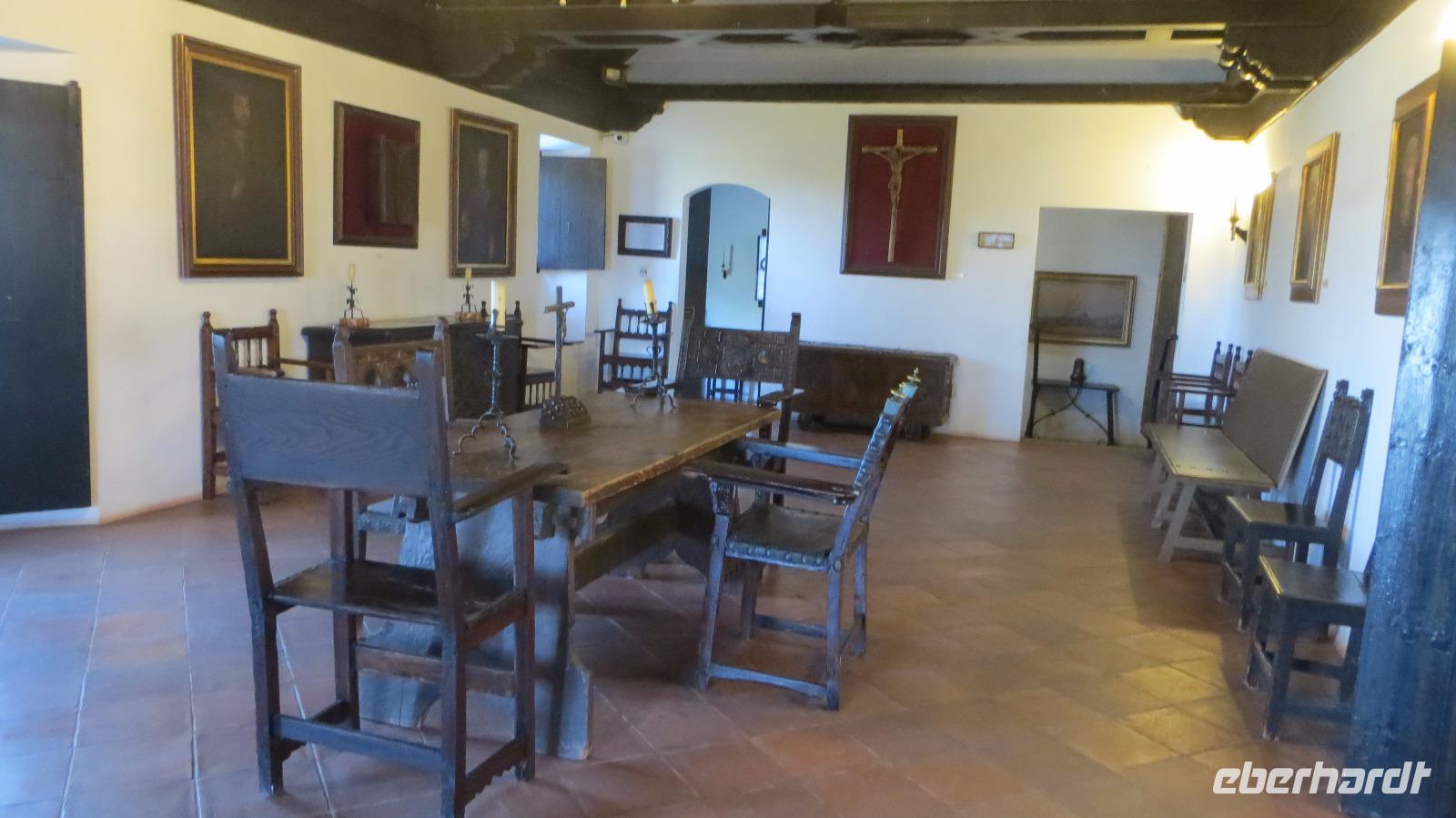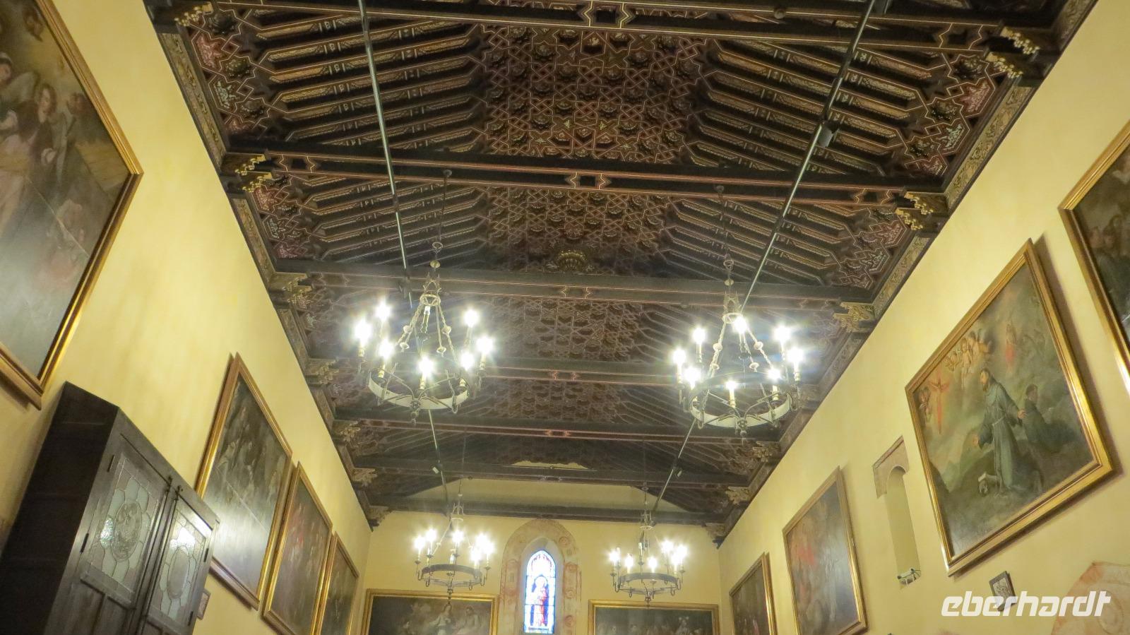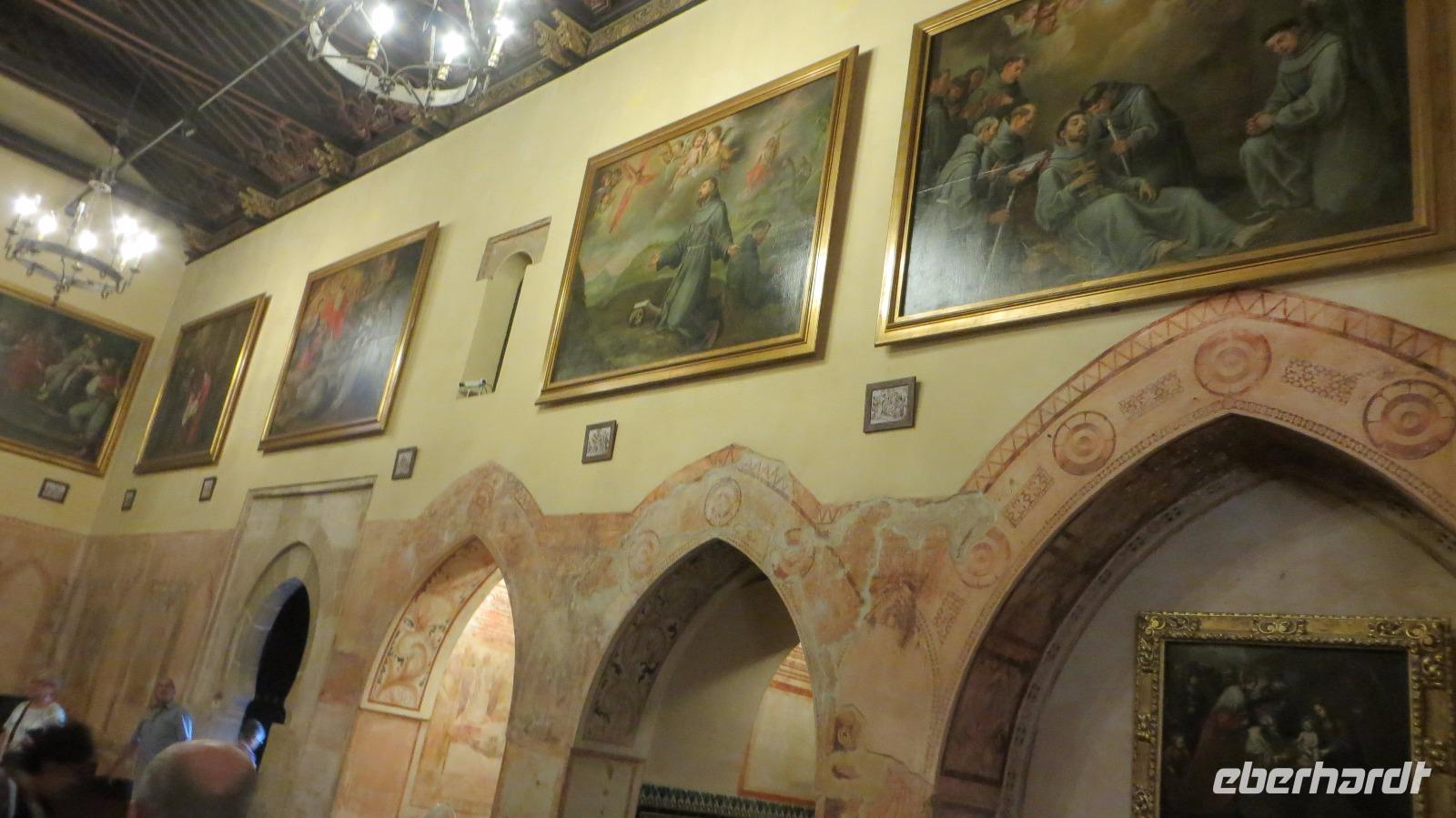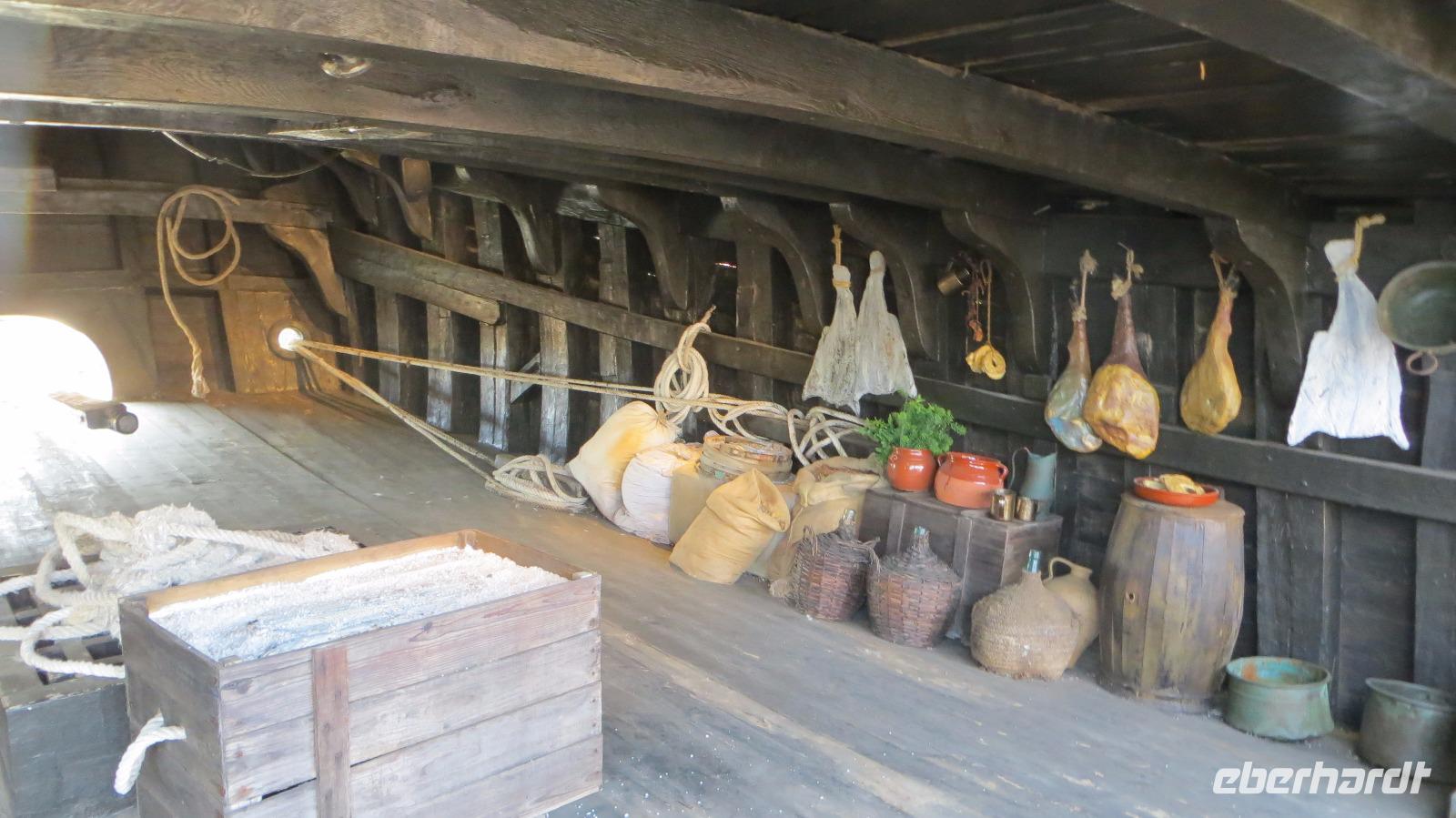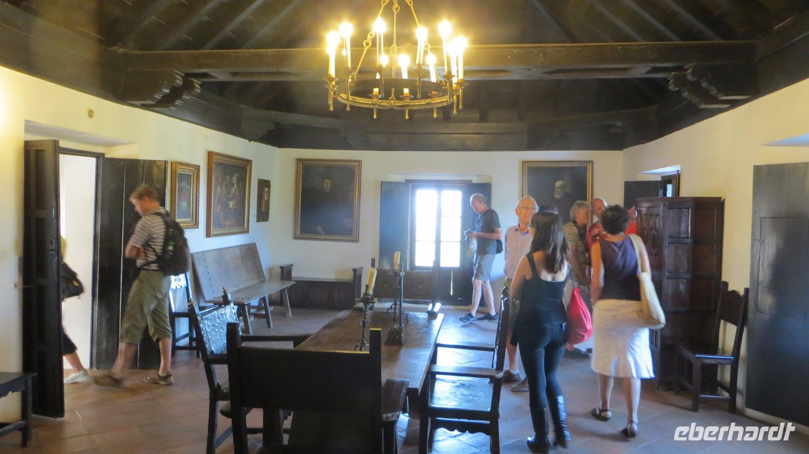 Nach dem Frühstück fuhren wir nach La Rábida, auf den Spuren von Kolumbus. La Rábida ist das Franziskaner-Kloster in dem Kolumbus seine Entdeckungsreise plante. Bei einer Führung haben wir die Geschichte Kolumbus, sowie anderen Entdeckern Amerikas kennen gelernt. Wir haben ebenfalls weitere schöne Räume des Klosters besucht, wie zum Beispiel: die Innehöfe, die Sakristei oder obere Etage, wo sich kleine Replikate von den drei Schiffe befinden. Im Anschluss gingen wir zum Hafen, um die drei Schiffe in ihrer voller Pracht zu sehen. Natürlich, konnten wir zwei der Karavellen von Innen besichtigen: die kleine „La Niña" und „La Pinta", als auch der grosse Nao „Santa María", auf welcher Kolumbus gewesen ist. Bevor wir unsere Besichtigung in La Rábida fortsetzten, schauten wir ein Video über der Entdeckungsreise und das neue Land. Dann fuhren wir nach Moguer, wo haben wir die traditionelle Weinkellerei Saenz mit seinem bekannten Orangenwein besuchten. Der Besitzer, Antonio, hat uns vile über die Herstellung der Weinsorten erklärt. Er erzählte uns Legenden über den Wein und seine Familie. Besonders für diese Weinkellerei ist ihre traditionelle Arbeitsweise, die von Generation zu Generation weiter gegeben wurde. Bodegas Saenz wurde in einem Kloster erbaut, und war das erste Gebäude mit Strom im Dorf. Die Bodega war die einzige die Orangenwein produzierte. Weil hier über 100 Jahre der bekannte Wein produzierten wird hat die Bodega Saenz vor sieben Jahren die geschützte Herkunftsbezeichnung erhalten. Bei leckeren Tapas, haben wir den leckeren Orangenwein und den Vermout verkostet, um an diesen besonderen Moment zu erinnern. Außerdem, bedanken wir uns bei Antonio, seinen teuersten Wein verkosten zu dürfen.