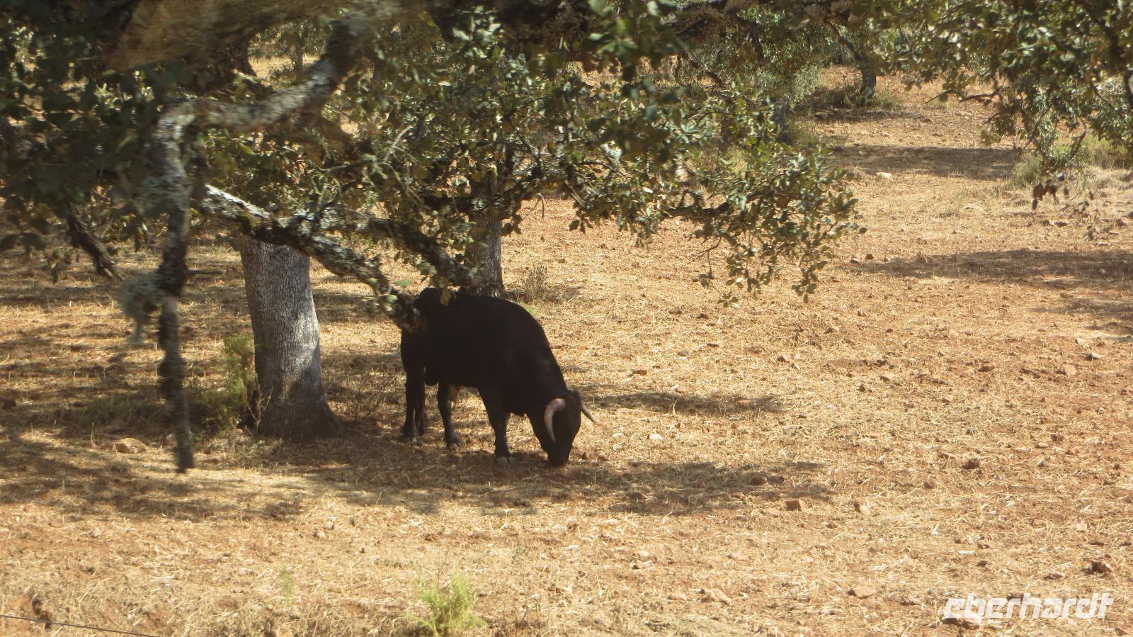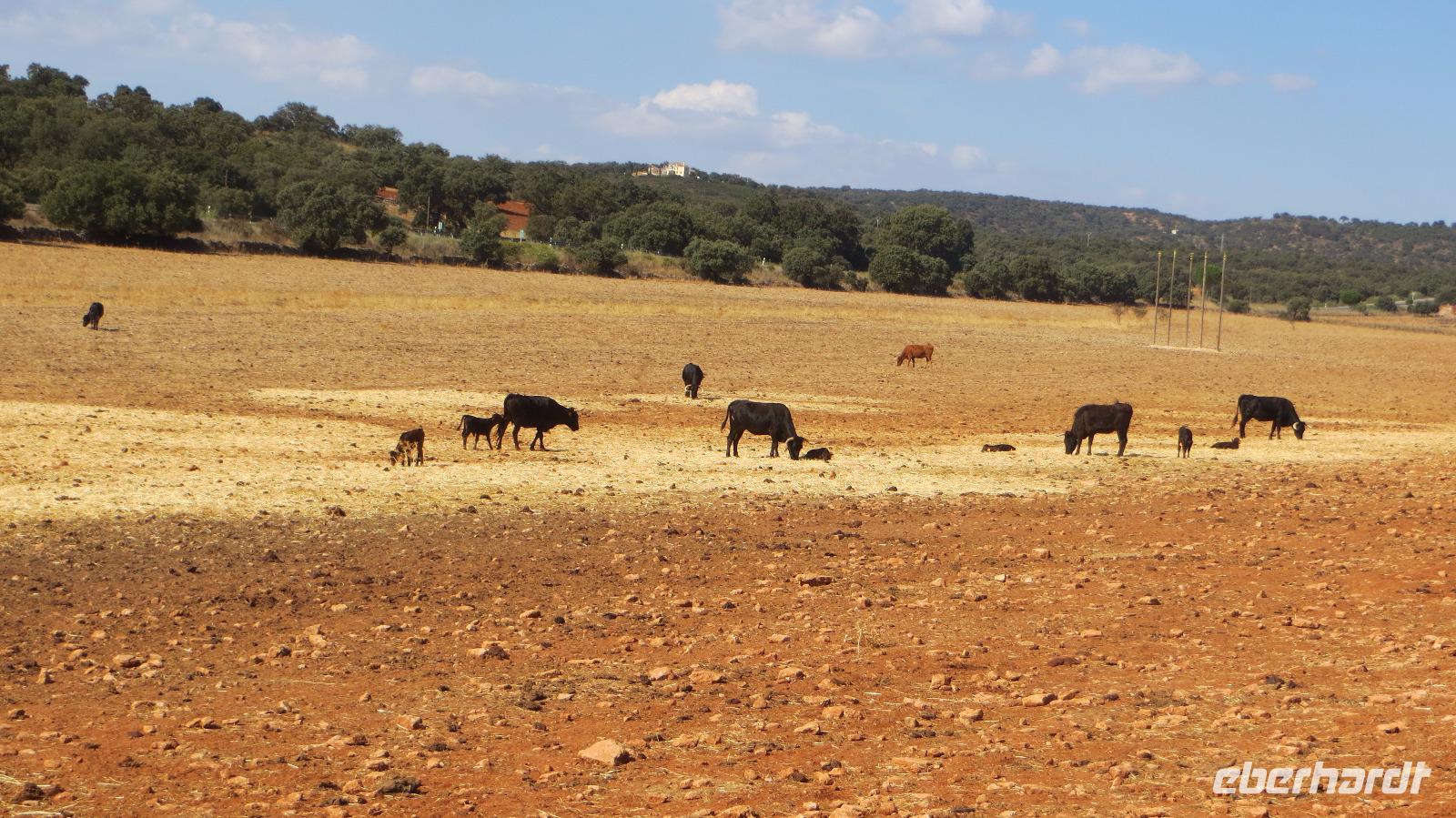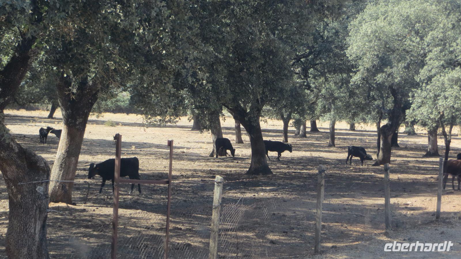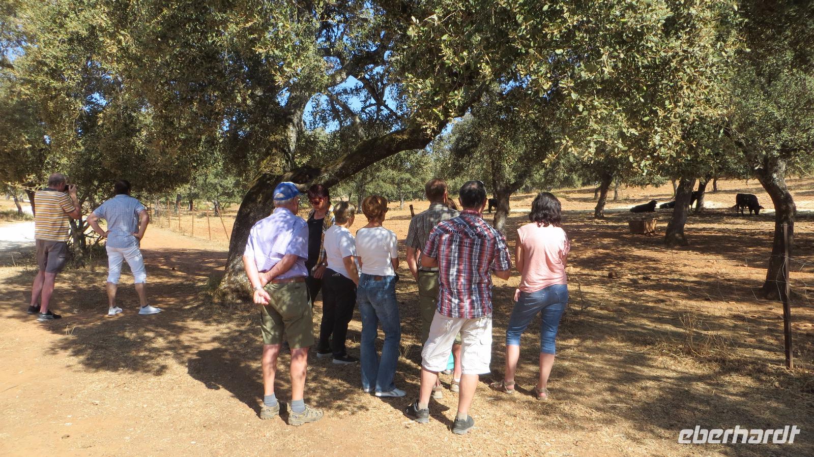 Wir sind früh am Morgen nach Castaño de Robledo gefahren. Da spazierten wir durch das Dorf bis zum Hauptplatz, wo wir ein Gutes Brötchen mit Serrano Schinken aßen und einen Kaffeegetrunken haben. Schon ging unsere Wanderung durch den Sierra de Aracena los. Wir liefen zwischen Kastanienbäume und Korkeichen entlang und sahen auf unserem Weg verschiedene Fincas.