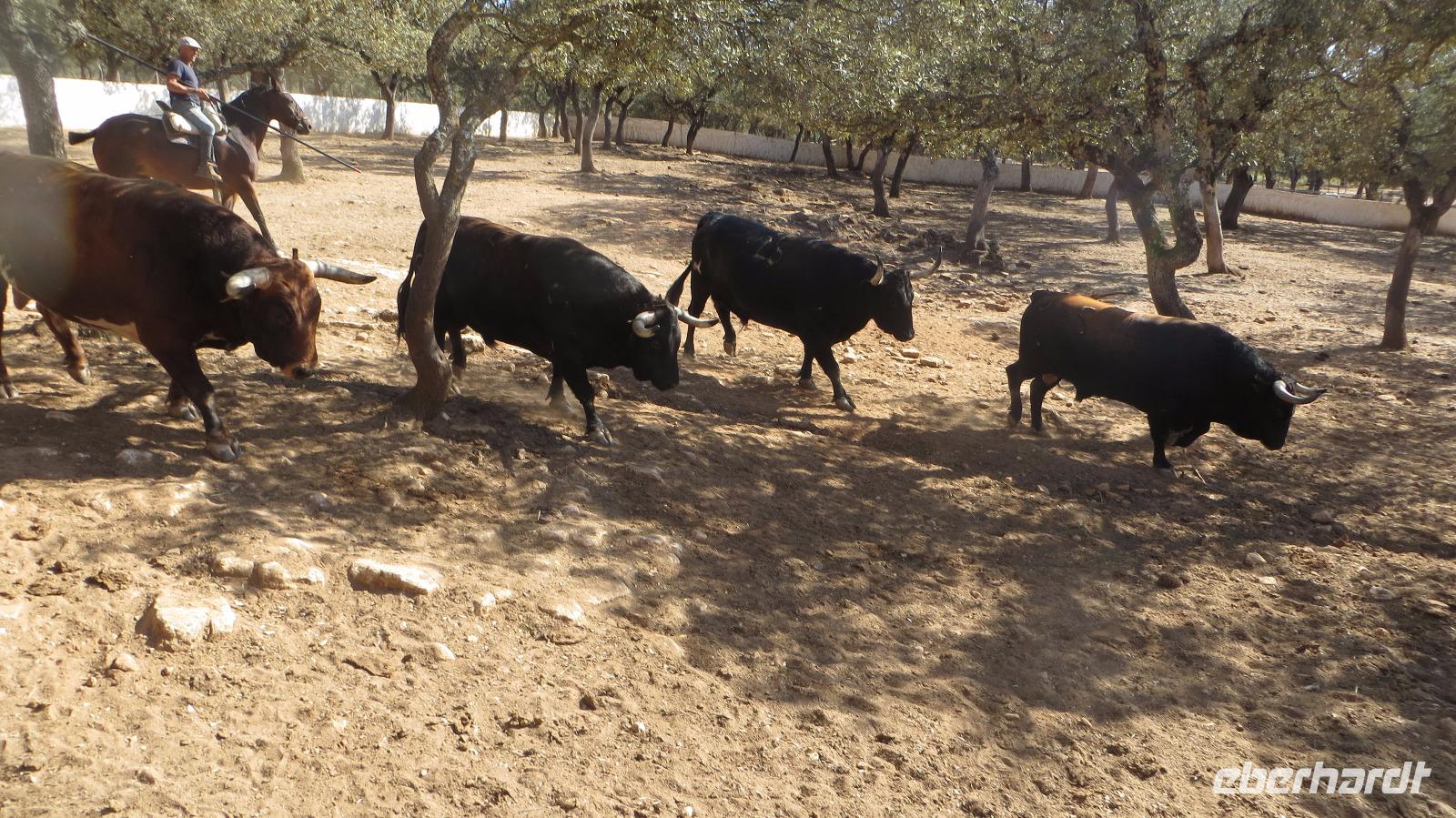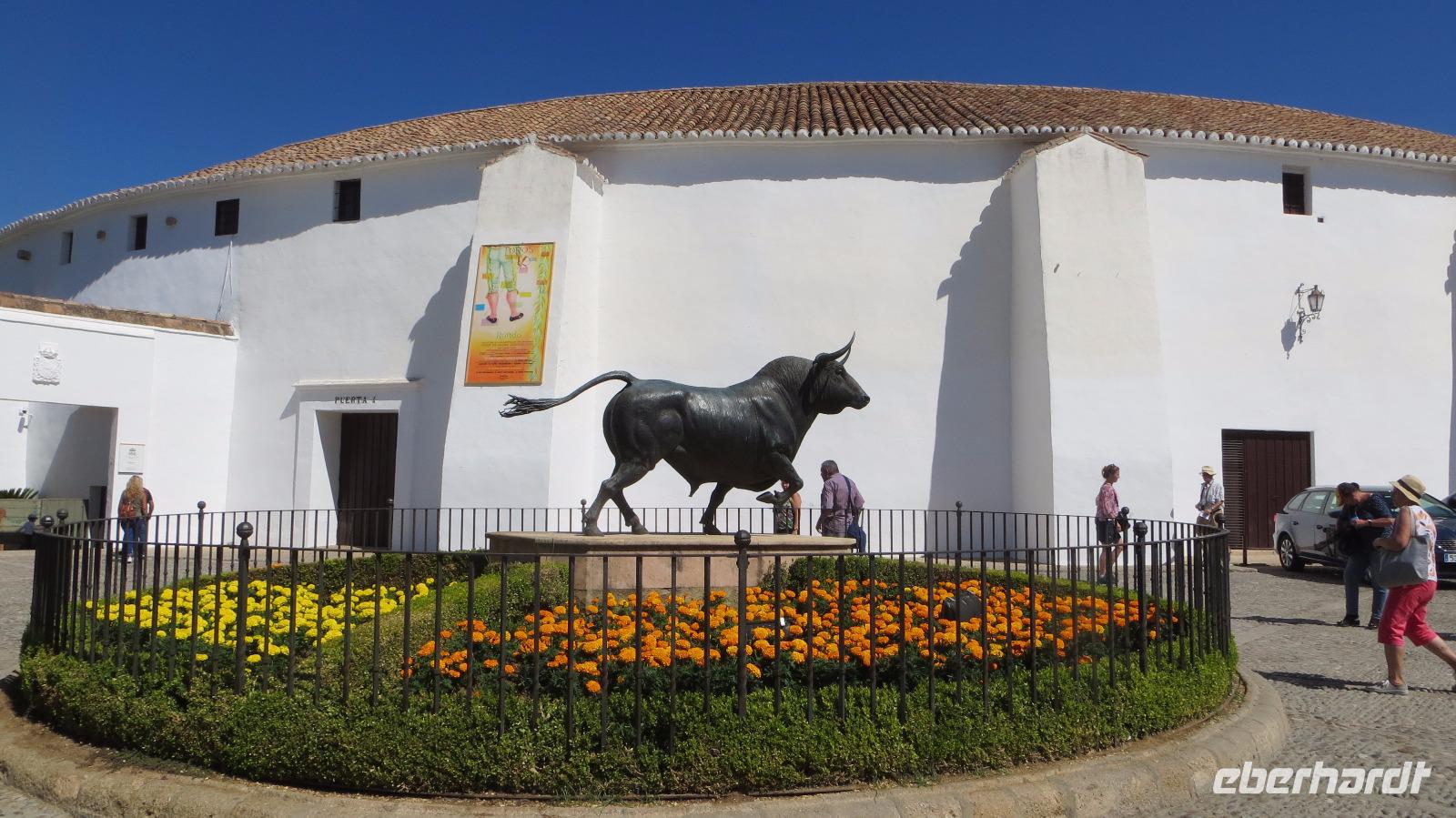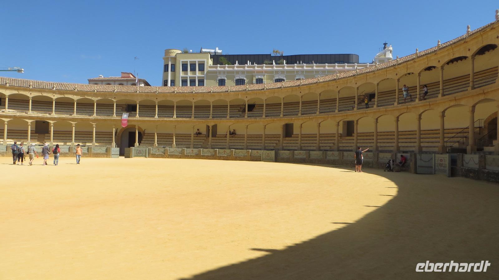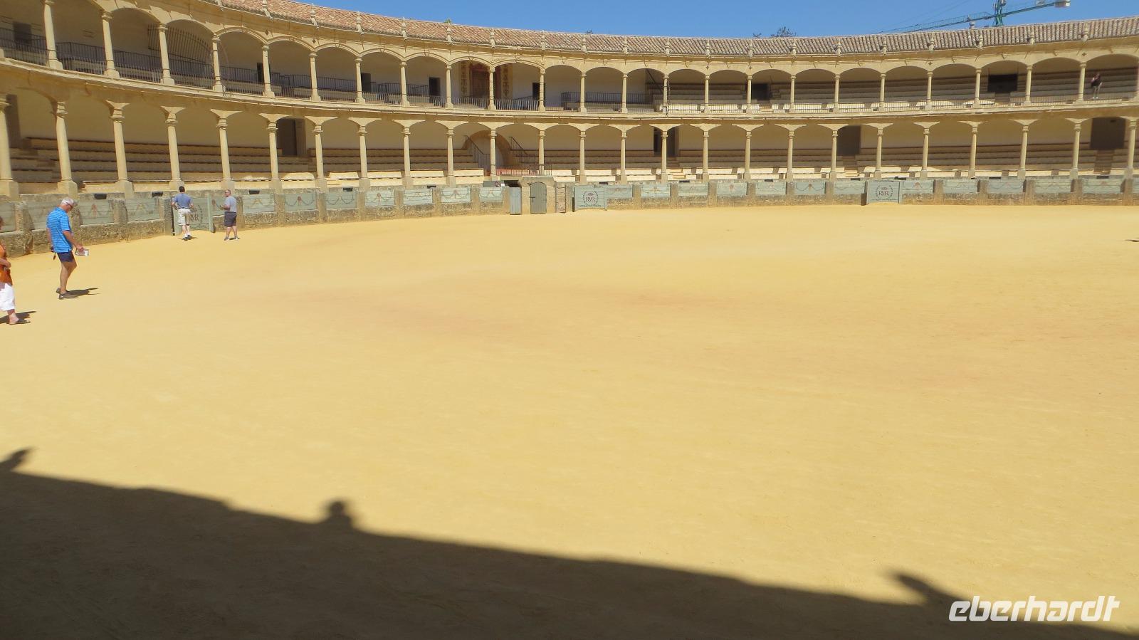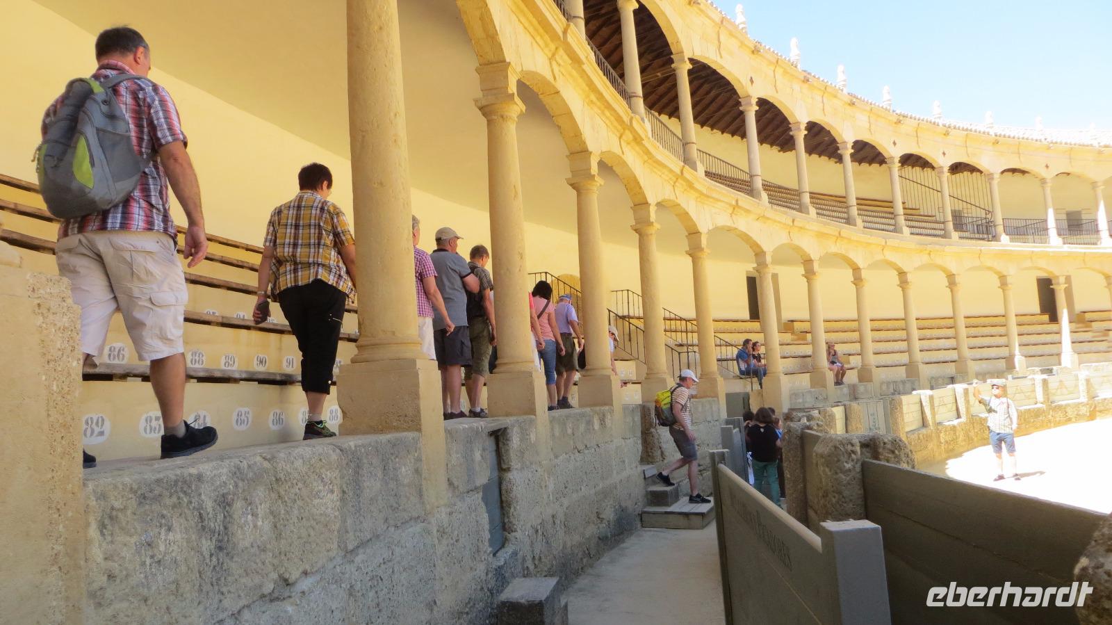 Unsere Reise geht leider langsam zu Ende...deswegen mussten wir früh unser Hotel in Isla Cristina verlassen und nach Ronda fahren. Schon in Ronda sind wir durch die Weißen Straßen gelaufen und hatten etwas Freizeit zum Mittagessen. Dann haben wir uns mit unserem örtlichen Reiseleiter Daniel getroffen und mit ihm die Stadtbesichtigung begonnen. Von dem Aussichtspunkt auf die Serranía de Ronda, sind wir zum Stierkampfarena gegangen, wo wir die Geschichte des Stierkampfes kennengelernt haben. Wir konnten die ganze Arena bestaunen. Dann gingen wir auf die berühmte neue Brücke an der Tajo-Schlucht, welche wir überquerten um in die Altstadt anzukommen. Dort haben wir die romantische Geschichten Rondas von Daniel zu hören bekommen. Wir besichtigten das Rathaus und die Basilika. Wir bummelten durch die typischen, engen Gassen und gingen den Weg nach unten, wo wir das beste Foto von der Schlucht machen konnten. Danach hatten wir Freizeit für den Einkauf von Souvenirs. Wir fuhren zu einer typischen Finca, wo wir eine kleine Stierkampfarena gesehen haben. Auf dem Weg fuhren wir zwischen Pferde und Stieren. Unsere liebe Paqui hat uns mit Hingabe erklärt, was wir auf unseren Weg querten. Über das Leben de Besitzer Rafael und die Stiere- und Pferdezucht erfuhren wir ebenfalls viel Interessantes. Es war ein besonderes Erlebnis so nahe an den Stieren und Kühen zu sein. Wir haben verschiedene Pferderassen gesehen und uns wurde eine kleine Darbietung gegeben, bei der wir das Temperament der „Chiclanero"-Pferde erleben durften. Die Kinder des Besitzers Rafael trainierten als Stierkämpfer (Matadores). Nun kann man uns getrost als Experten in der Welt der „Toreo" nennen. Nach dieser schönen Zeit fuhren wir nach Málaga, um etwas Freizeit vor unserem letzten Abendessen zu genießen. Mit einem leckeren Abendessen in eine traditionelle Restaurant, dem Bodega Patio de Beatas, haben wir uns verabschieden können.