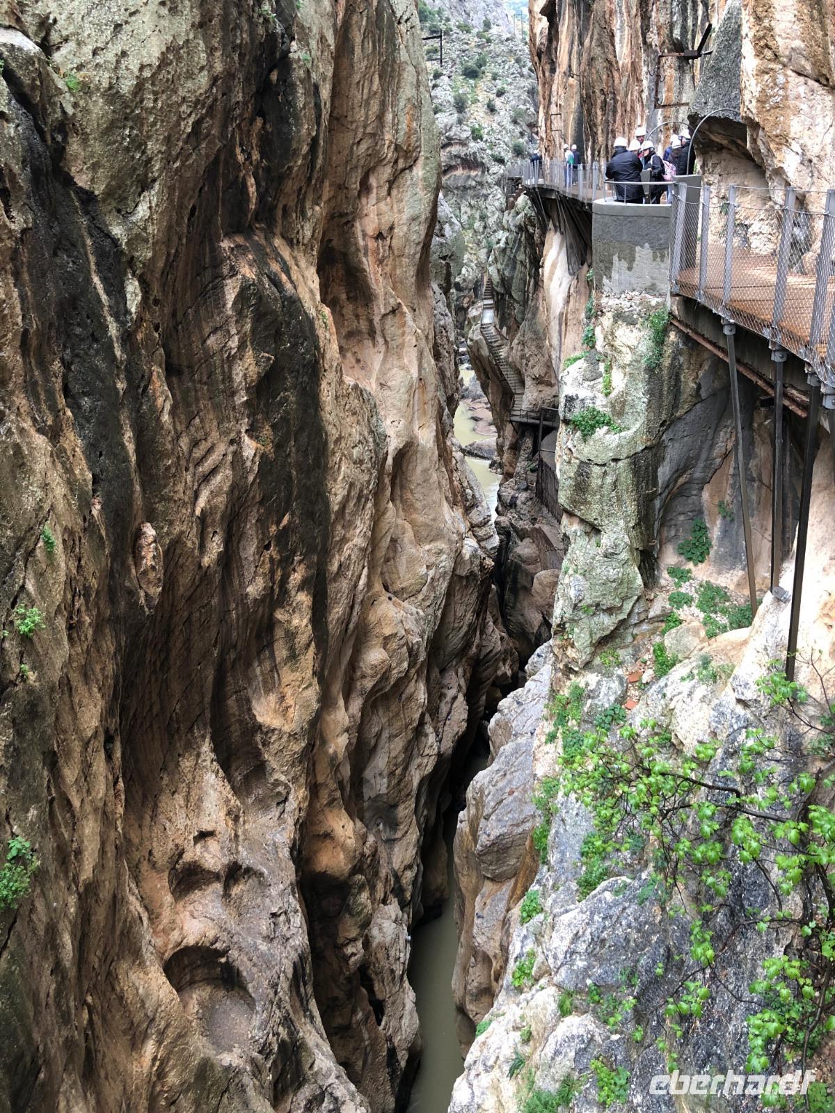 Dann gingen wir durch die verschiedene Pasarelen auf den Felsen und über den Fluss. Wir fahren unsere Fühler aus und die Ausblicke sind fantastisch. Den ganzen Weg entlang haben wir die Geschichte des Königspfades kennen gelernt und auch die Umgebung des Nationalpark El Chorro.