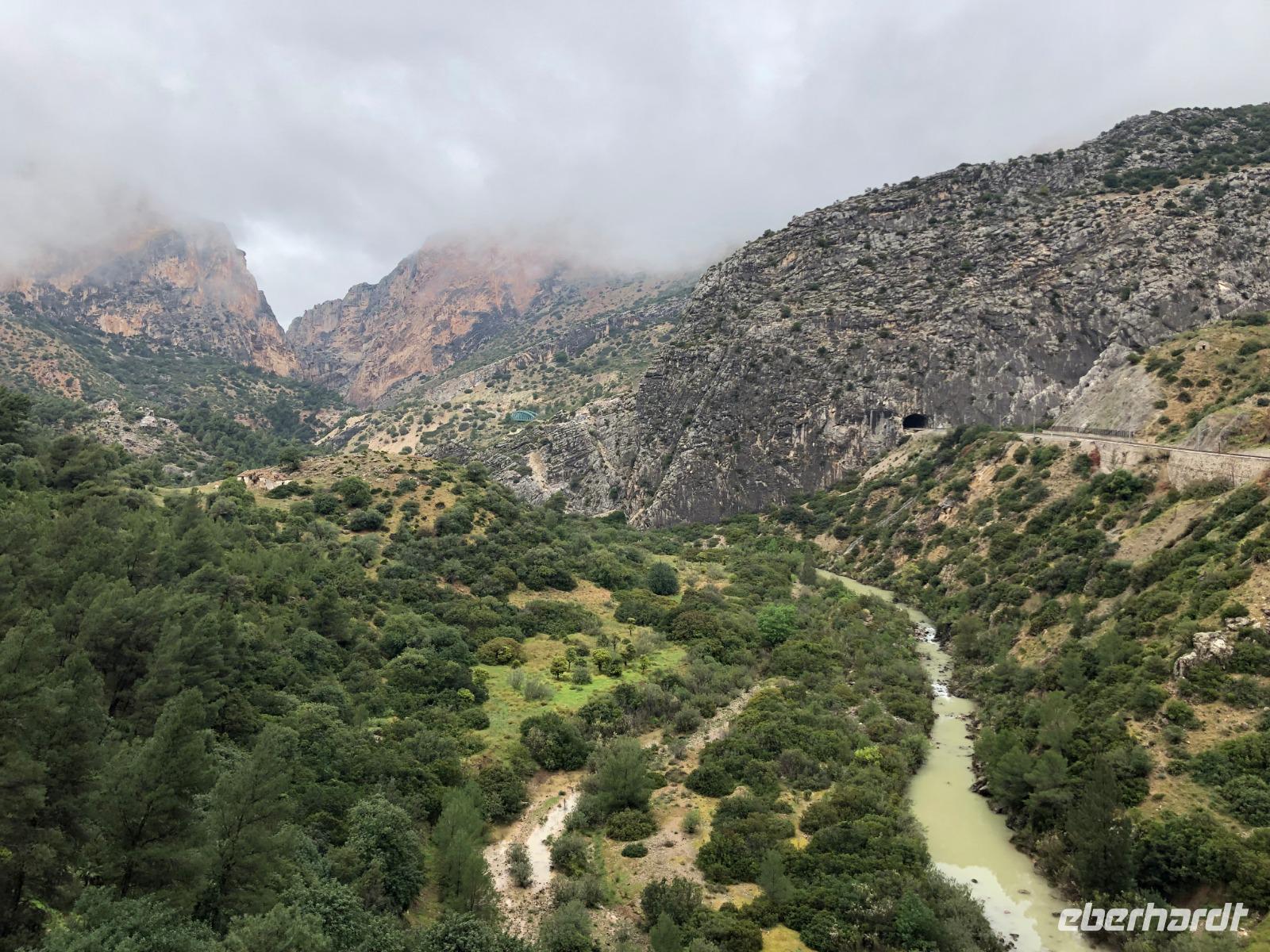 Als wir im Naturpark El Chorro angekommen sind, sahen wir den schönen Stausee und begannen unsere Wanderroute bis zum Eingang des Königspfades. Erst einmal überquerten wir ein Tunnel und nach dem Wanderweg bis zum Eingang treffen wir schon auf einheimische Vegetation.