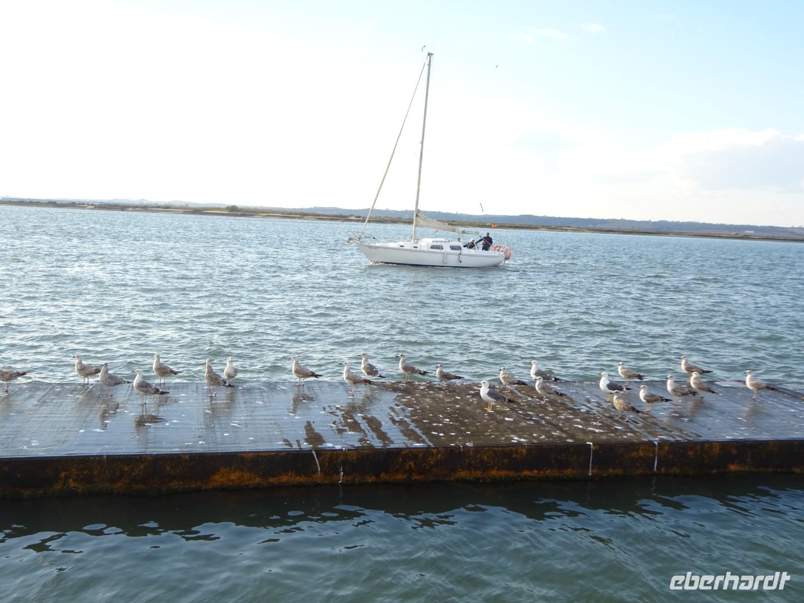 Der Rückfahrt ging entlang der Promenade bis zum Dorf Isla Canela, wo wir ein kleines Fähre-Boot nahmen, um die Sümpfe zu überqueren und direkt auf der Isla Cristina anzukommen. Leider machte der Wind unsere Ausgabe etwas kompliziert und am Ende wurden wir etwas nass, aber nach einer guten warmen Dusche, waren wir voller neuer Energie.