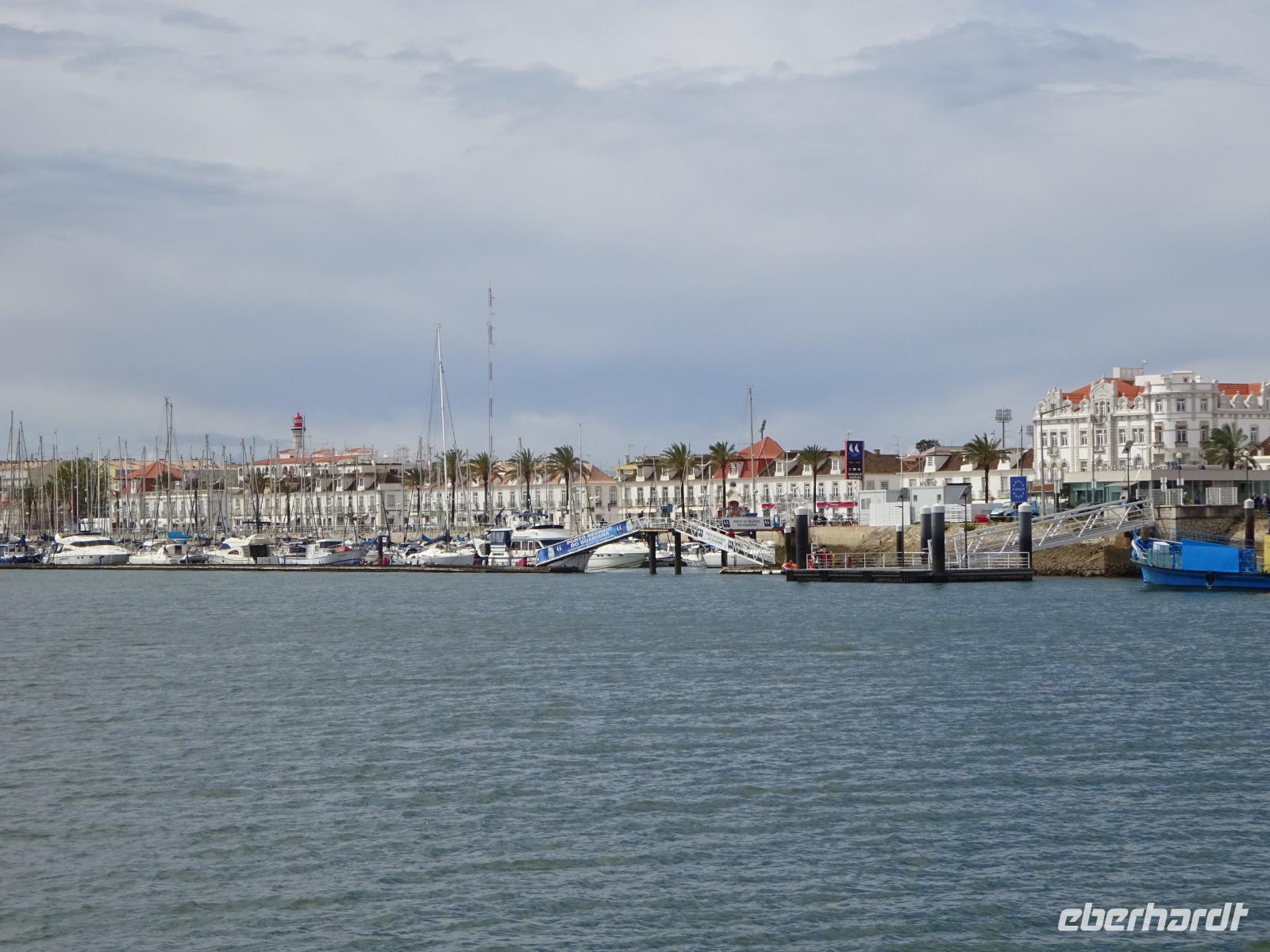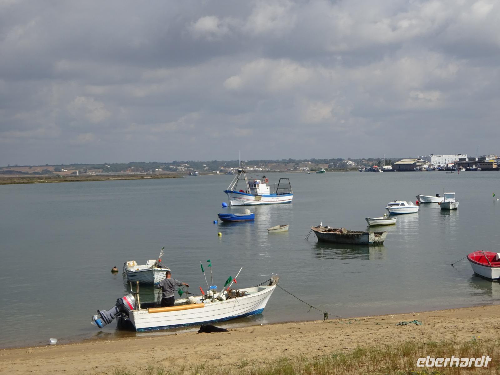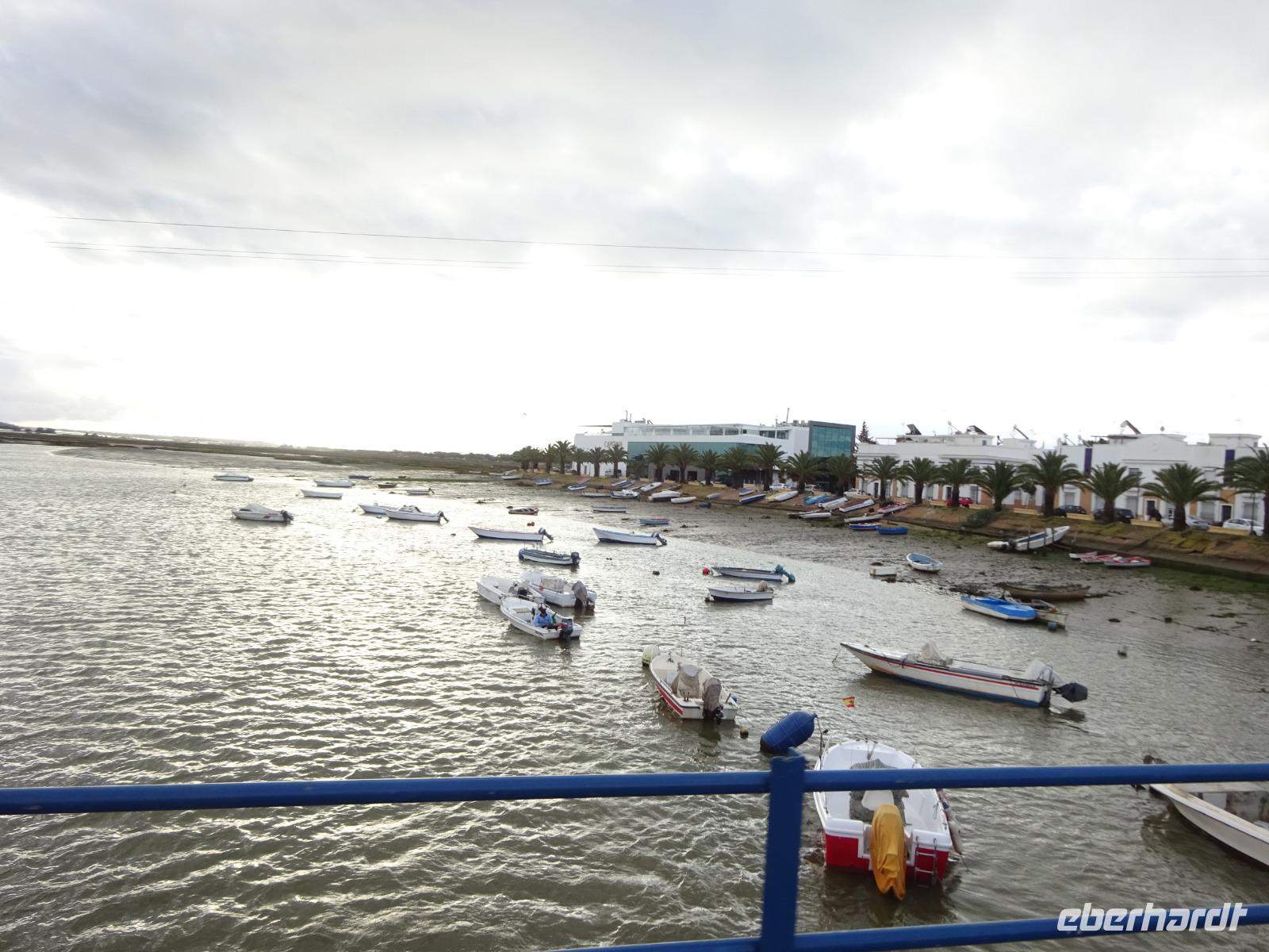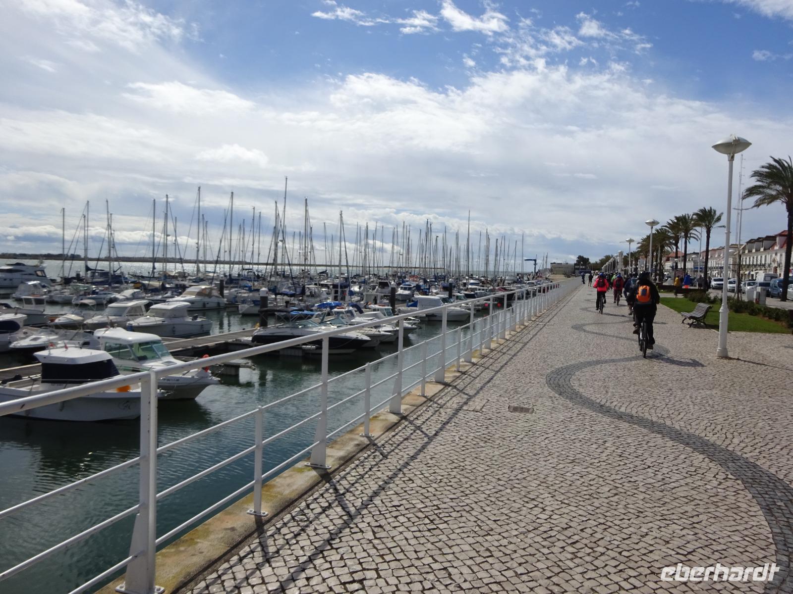 Nach einigen Kilometern haben wir eine alte Mühle gesehen, welche mit den Gezeiten des Sumpfes arbeitet. Wir könnten diesen Platz nicht verlassen, ohne die Mühle zu besuchen. Wir fuhren weiter und langsam erreichten wir die Stadt Ayamonte, wo wir entlang des Ufes des Flusses bis zum Hauptplatz gefahren sind. Dort gab es die Möglichkeit für eine Kaffeepause, bevor wir die Natur-Grenze zwischen Spanien und Portugal überquerten. Von Ayamonte sind wir mit Fähre nach Vila Real do Santo Antonio gefahren, oder besser gesagt, wir erreichten Südportugal mit der Fähre. Da hatten wir Zeit, um dieses nette Dorf kennen zu lernen und sind durch die ganze Stadt gefahren bis zu unserem Restaurant, direkt am Ende des Dorfes.