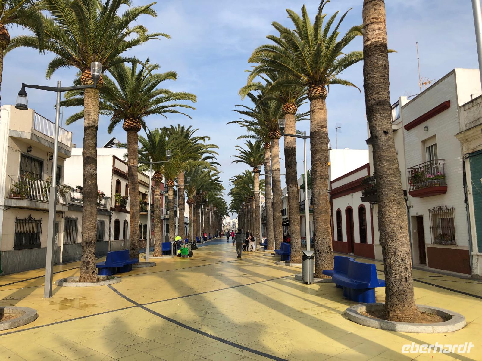 In Punta Umbría halten wir direkt am Strand und nahmen einen guten "Wind Kaffee" ein, mit etwas Sonne und romantischen Ausblicken. Ein Stück weiter halten wir auch, beim Aussichtspunkt Punta de Flecha und fahren durch verschiedene Städte um die Unterschiedlichkeit zu sehen. Eine davon war Lepe, das Dorf, das alle Spanier wegen seiner Witze kennen.
