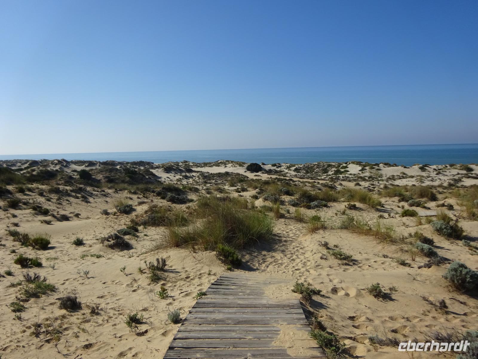 Nach den Frühstück fuhren wir nach Doñana. Der Nationalpark hat 29.000 Hektar mit vier unterschiedlichen Ökosystemen: Strand, Dünen, Wald und Sümpfe.