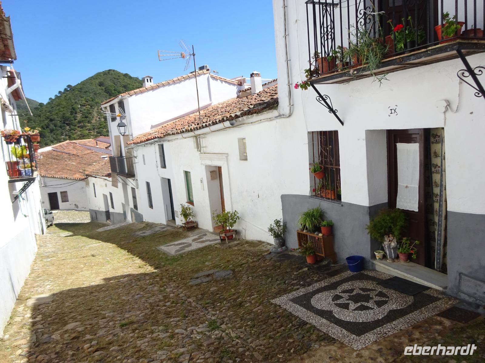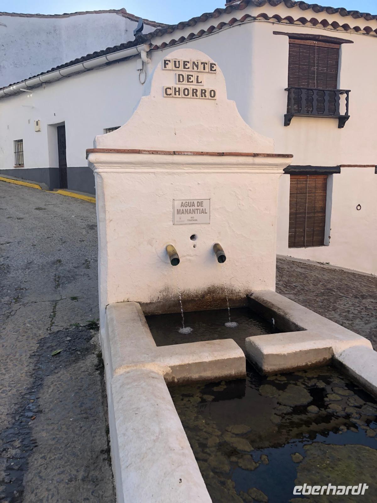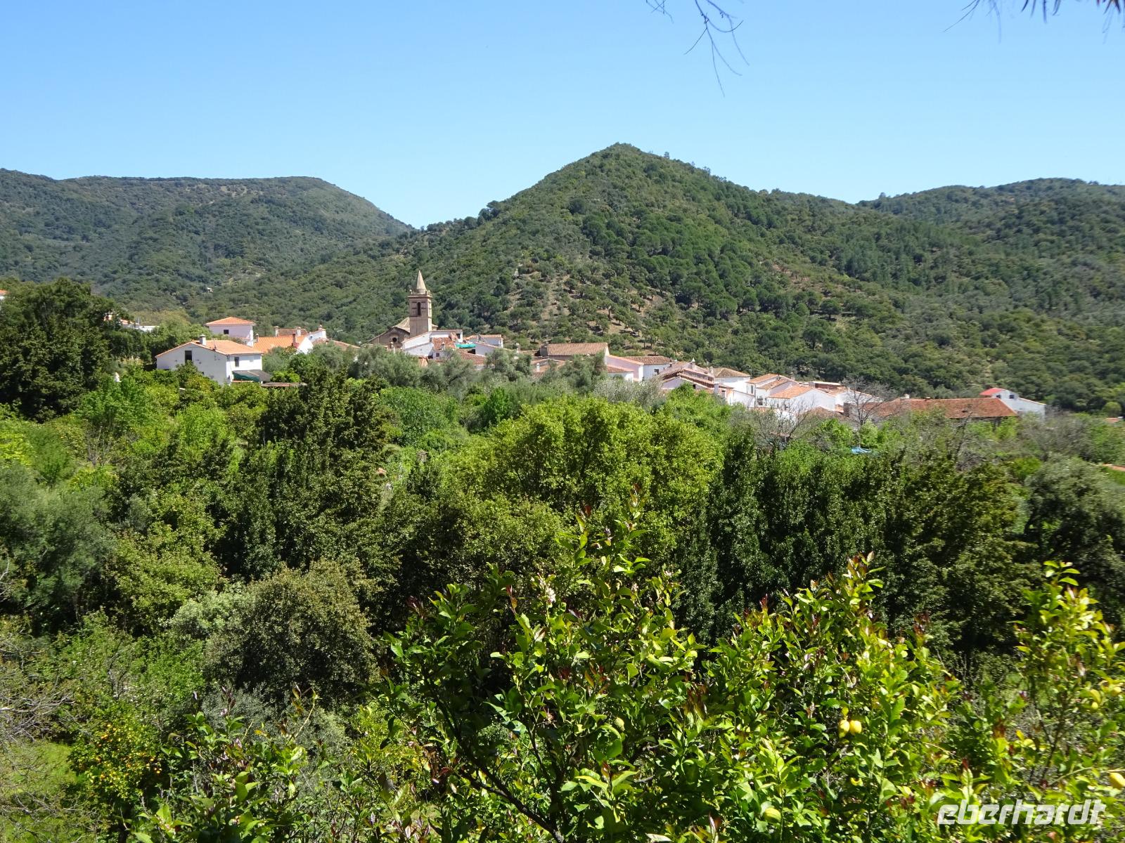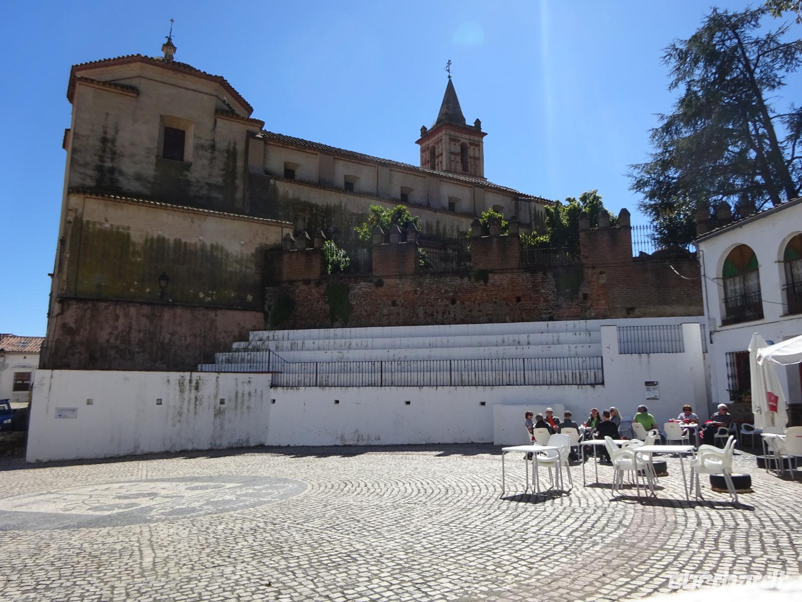Nach einer guten Steigung erreichten wir die Kapelle der Engel mit wunderschönen Ausblicken auf das Dorf Alájar, wo wir die Kirche und den Brunnen gesehen haben, bevor wir durch das Dorf liefen.