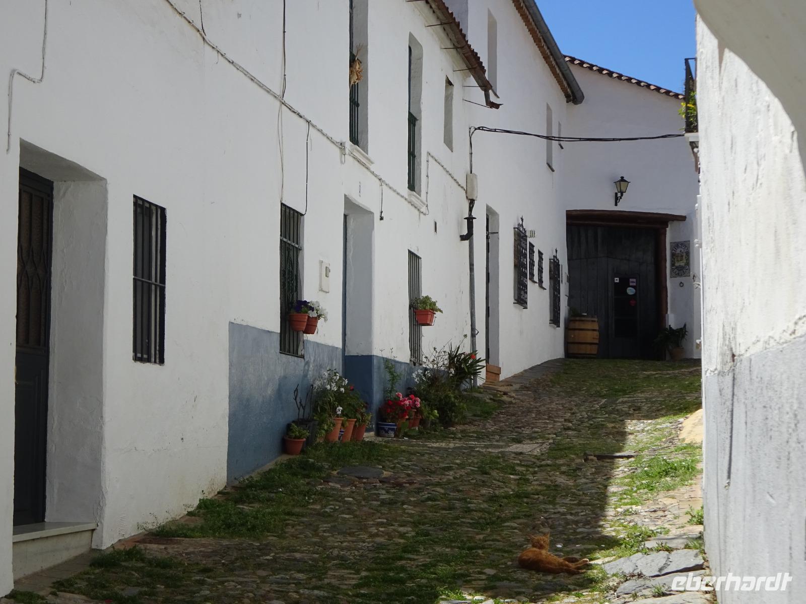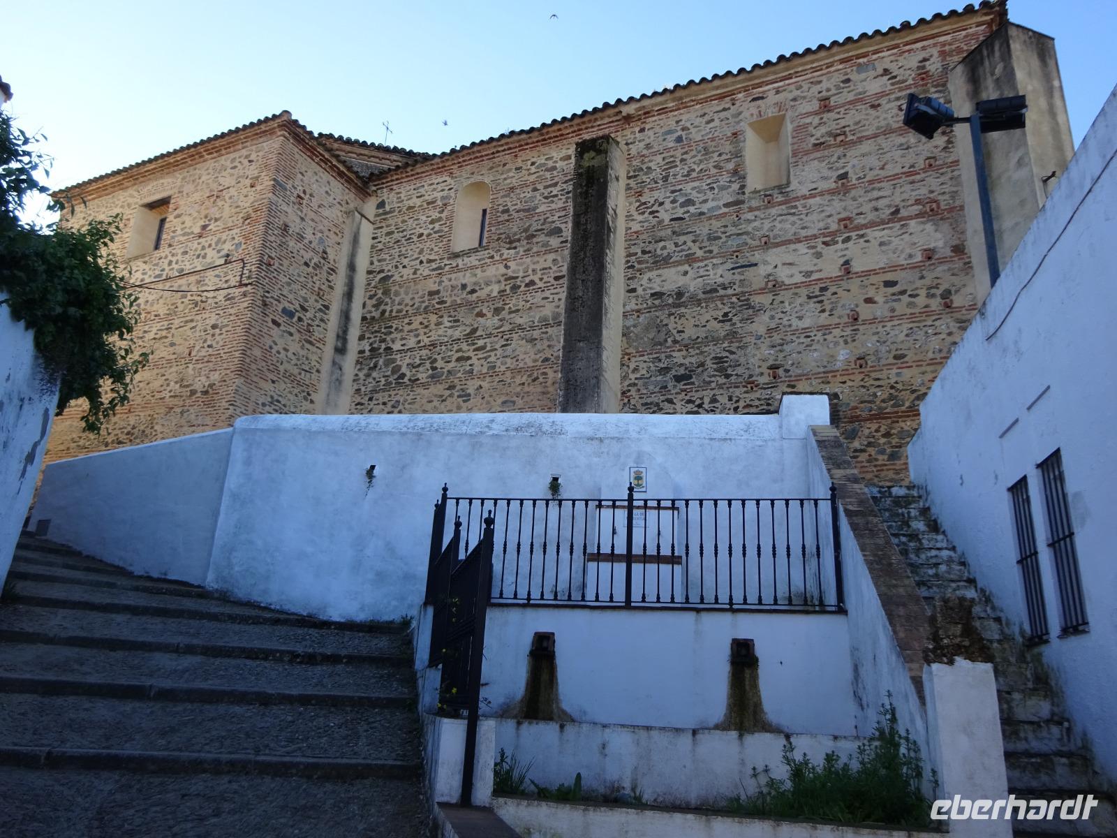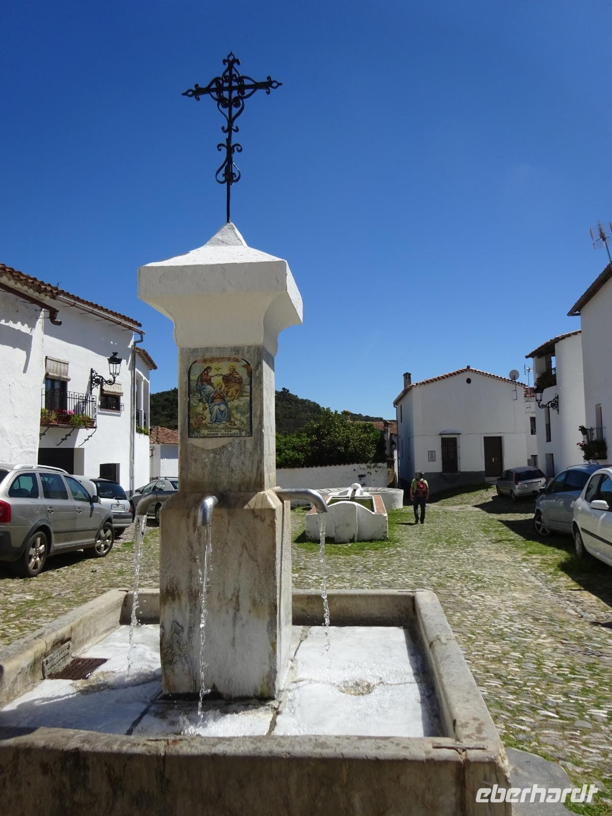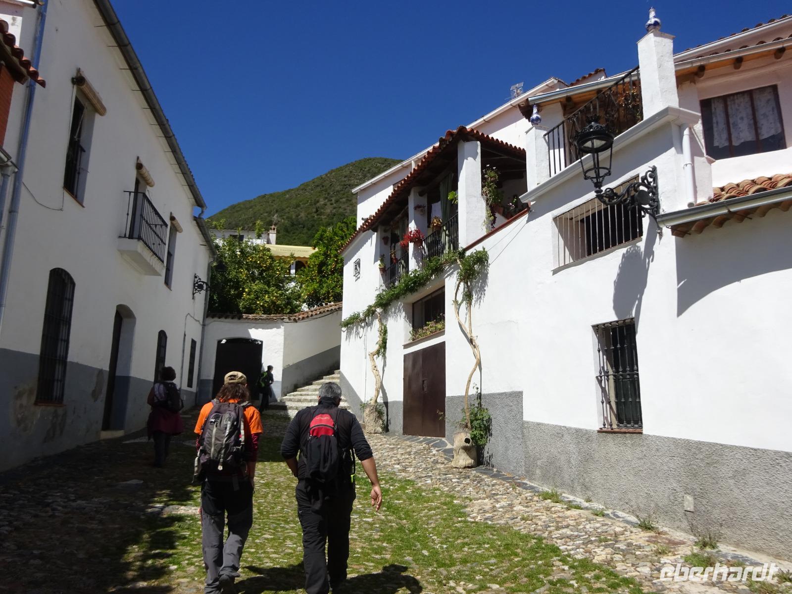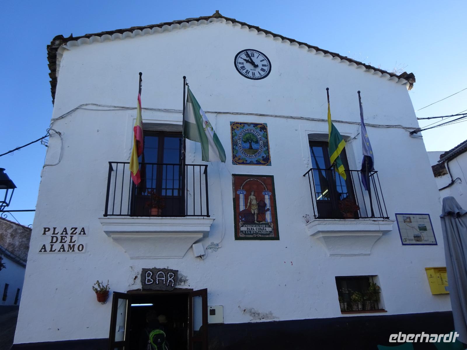 Nach einer guten Steigung erreichten wir die Kapelle der Engel mit wunderschönen Ausblicken auf das Dorf Alájar, wo wir die Kirche und den Brunnen gesehen haben, bevor wir durch das Dorf liefen.