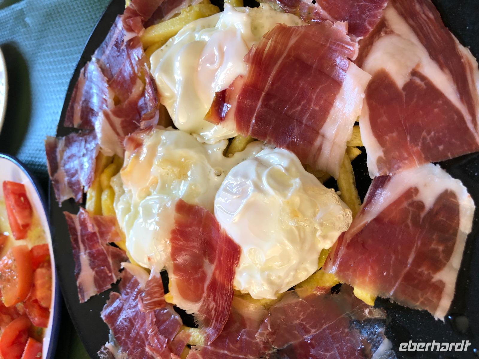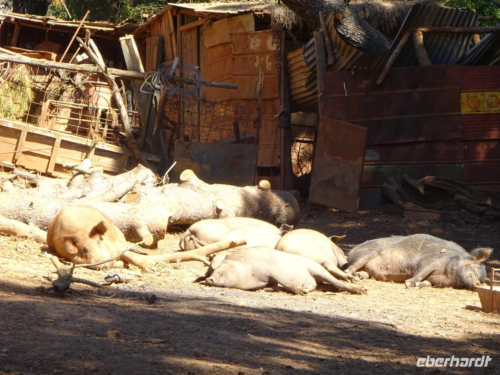Wir standen früh auf und fahren zum Nationalpark Sierra de Aracena. Nach ein paar Stunden Fahrt erreichten wir das Dorf Castaño del Robledo, wo wir unser Frühstück in einer kleinen Bar beim Rathaus einnahmen. Dort bekamen wir einen Kaffee und ein gutes Toast mit Oliven Öl und Serrano-Schinken. Frisch gestärkt, begannen wir unsere Tour durch den Wald, wo am Anfang des Tages ganz kalt war und die Sonne nur langsam warme Temperaturen erzeugte. Auf diesem Weg haben wir die Vegetation gesehen und Einiges gelernt - außerdem haben wir einige iberische Schweine und sogar ein paar Esel gesehen.