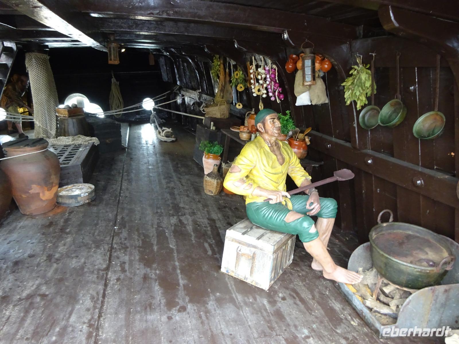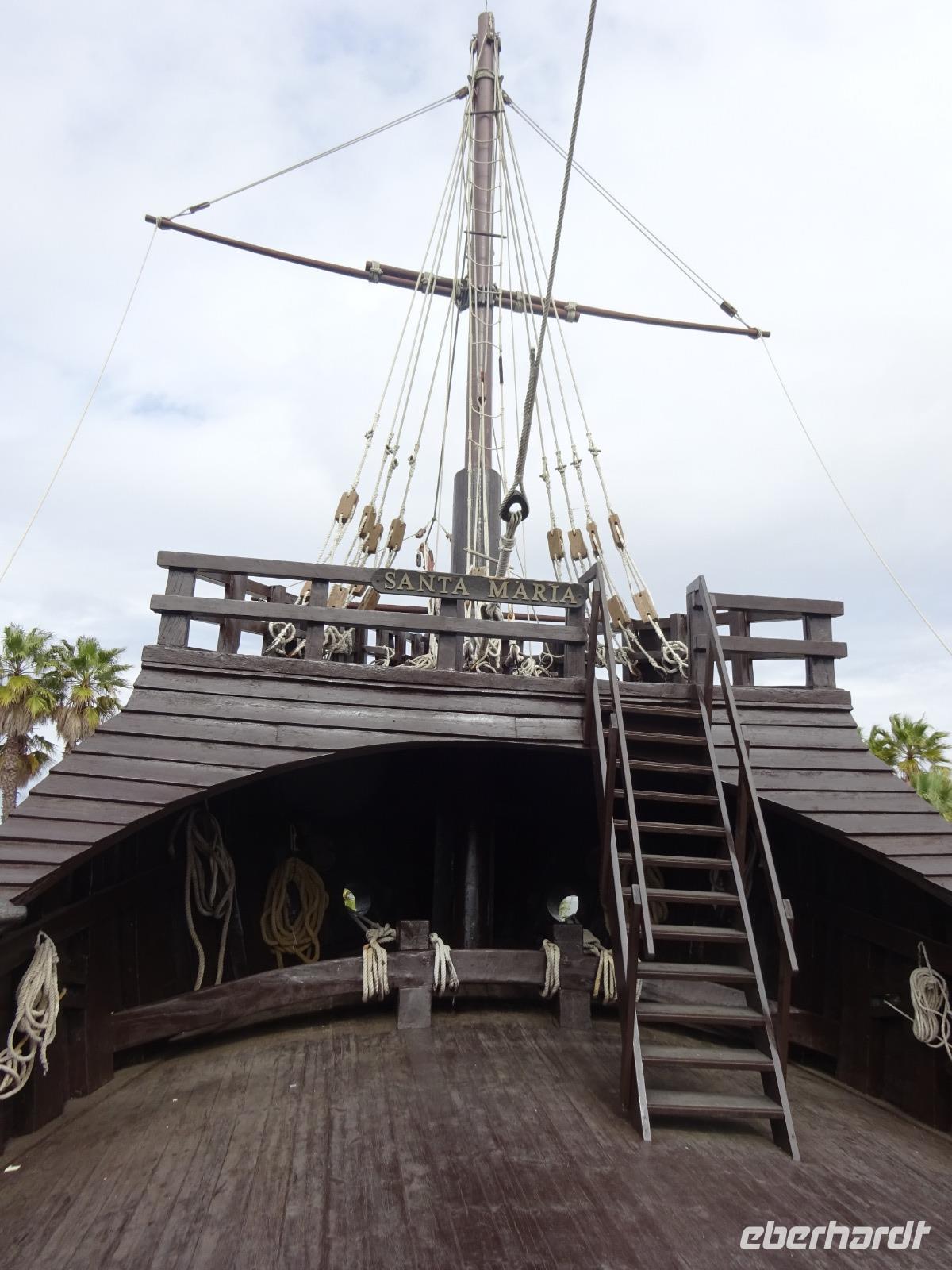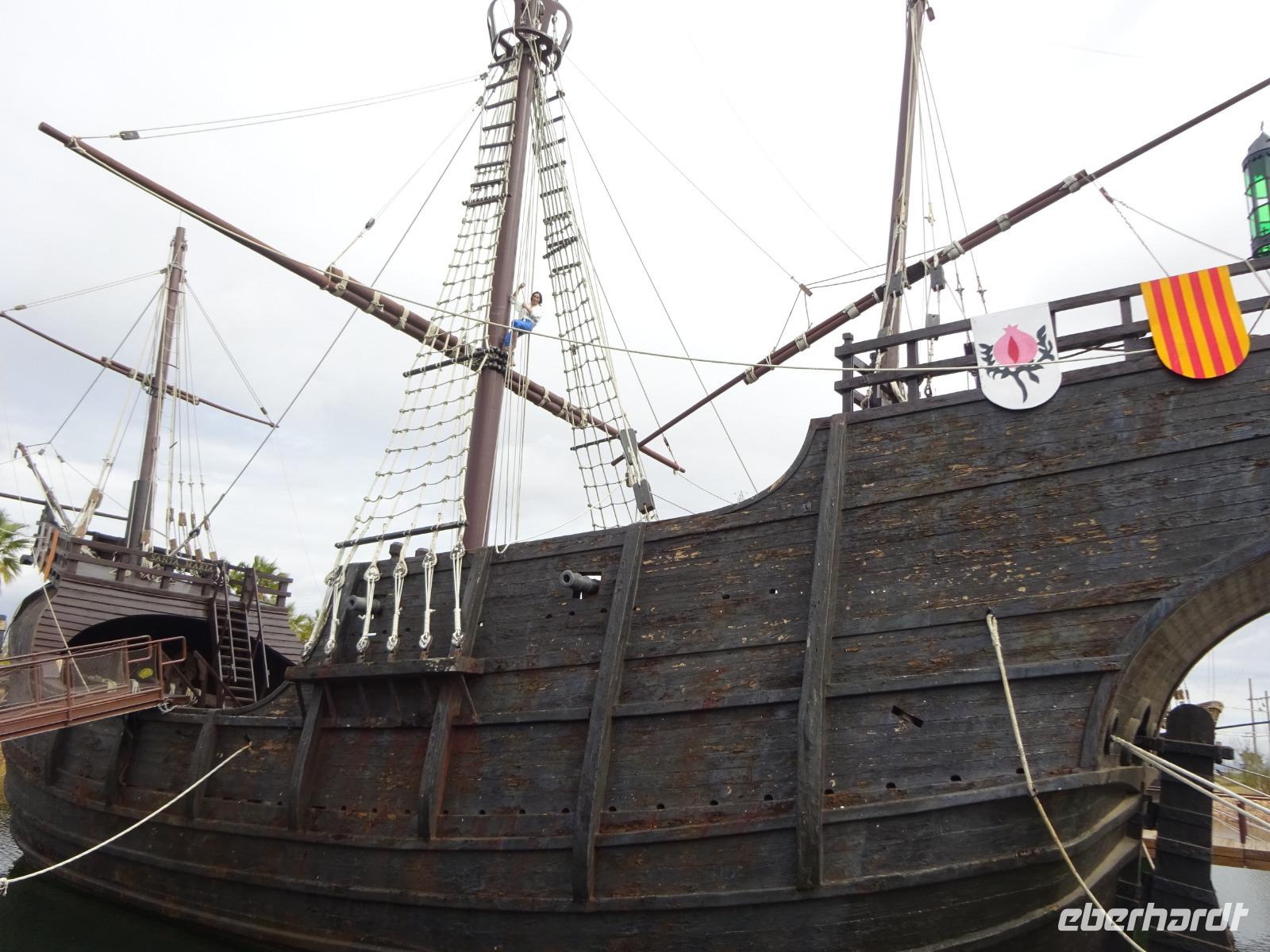 Nachdem sind wir zu Fuß zum Fluss gegangen, wo heutzutage die Repliken des Schiffes Niña, Pinta und Santa Maria stehen. Durch diese Schiffe zu laufen, war ein Muss für alle! Wir können uns vorstellen, wie hart gearbeitet wurde und wie schwer diese Reise war.