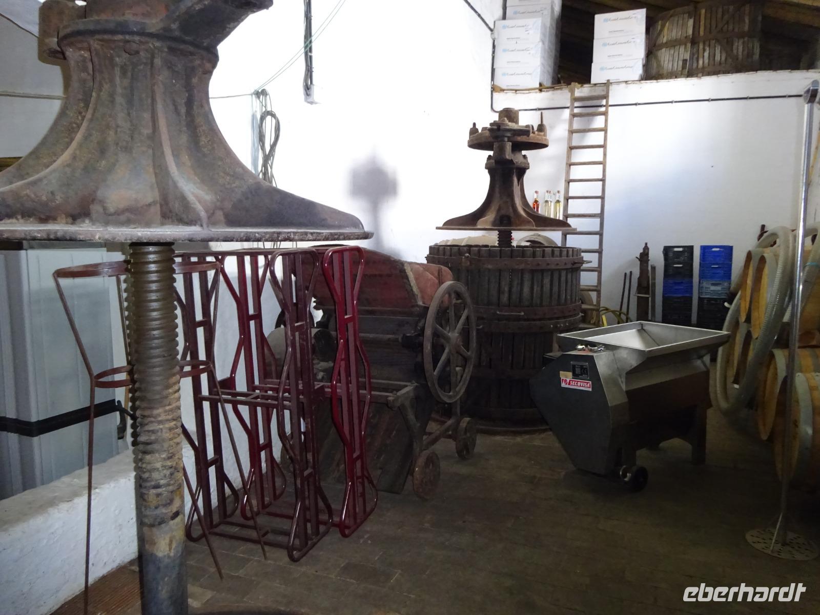 Dann erreichten wir einen Höhepunkt, als wir die Weinkellerei Sáenz besucht haben. Der Besitzer Antonio begrüßte uns und erzählte die Geschichte seiner Familie, sowie die der 32 ursprünglichen Bodegas aus Moguer. Leider sind sie heutzutage die letzten übrig Gebliebenen, aber immer noch die Besten mit dem besonderen Wermuth und Orangen-Wein. Zuerst haben wir den Prozess kennen gelernt, wo alles noch ganz familiär ist und wo sie noch die traditionellen Maschinen benutzen. Das Gebäude hat auch eine großartige Geschichte und deswegen befanden wir uns die ganze Zeit in einem lebendigen Museum.