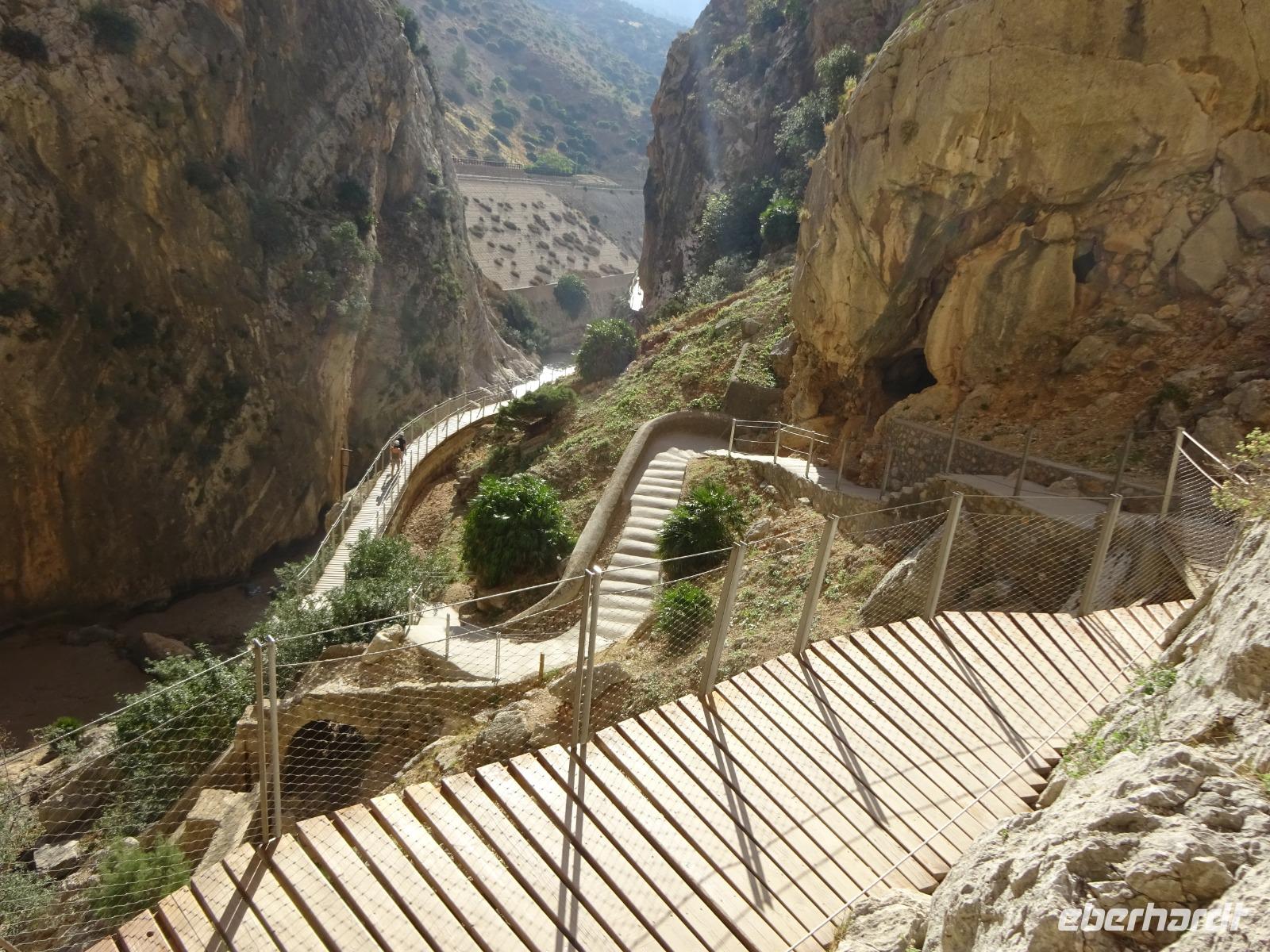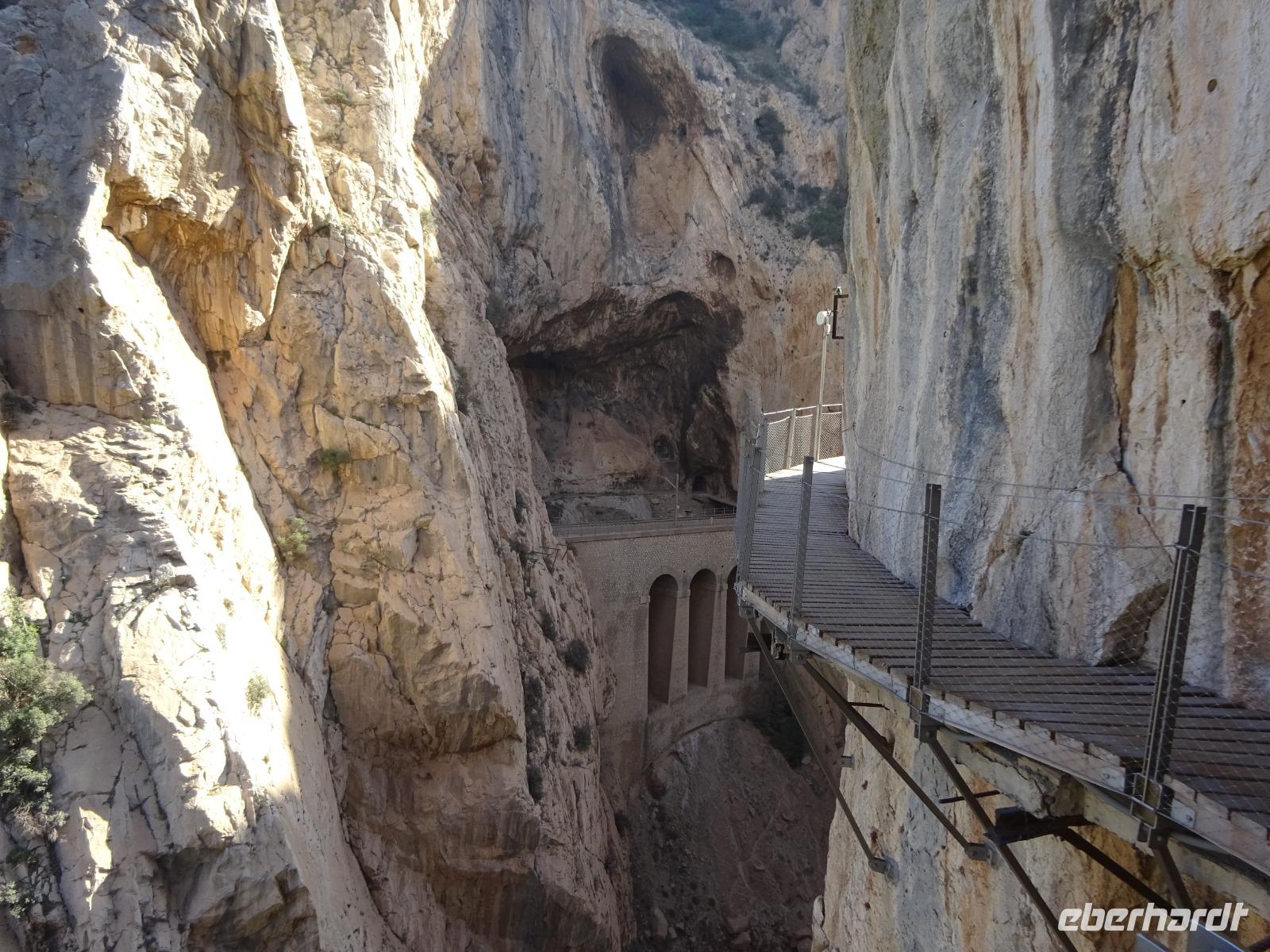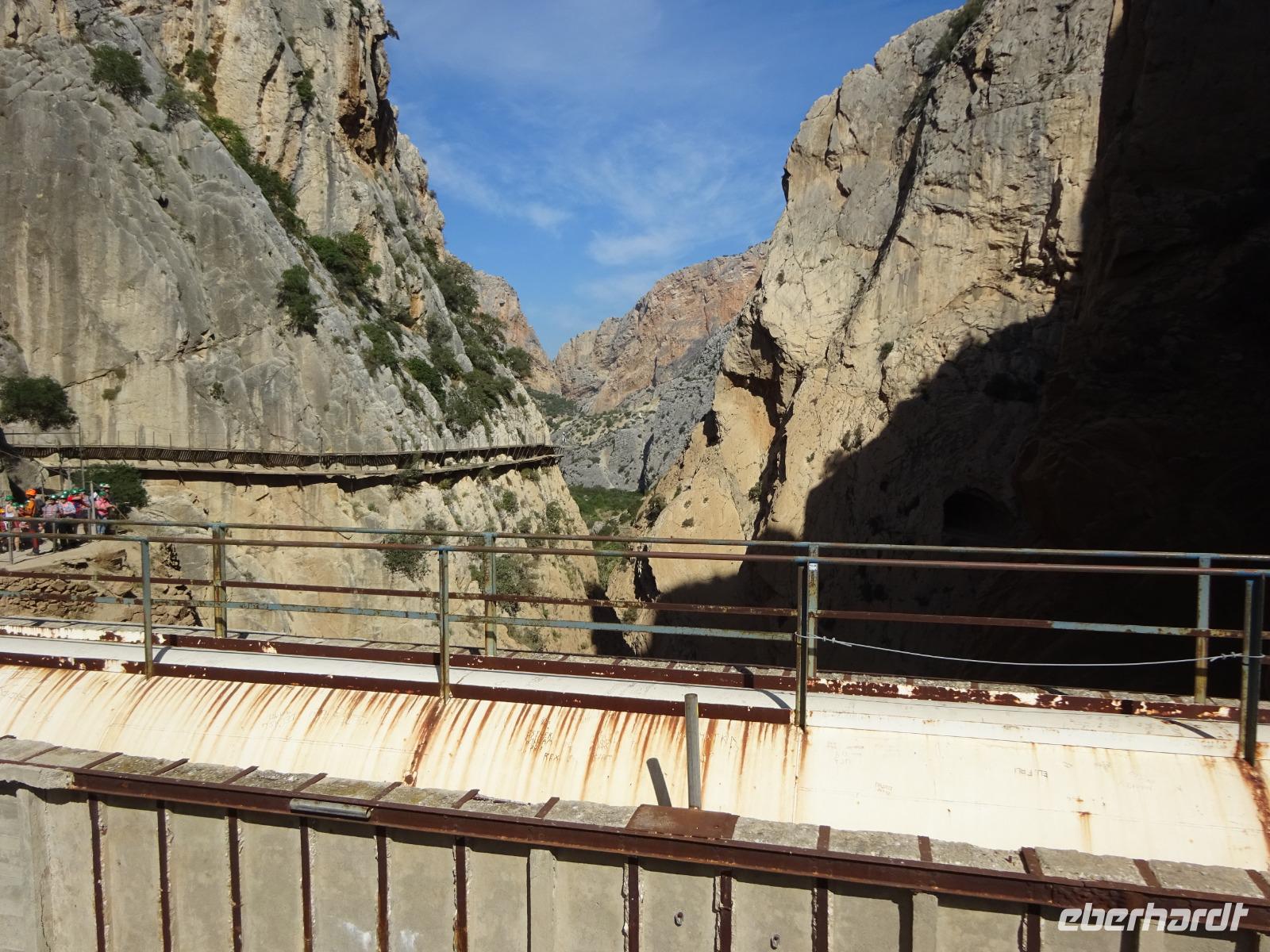 Nach dem Frühstück verlassen wir unser Hotel und fahren im Richtung Guadalhorce-Tal, wo eine Zitrusplantage gesehen haben. So langsam änderte sich auch die Landschaft und wir fuhren durch die ersten Berge in die Nähe des Dorfes Ardales, sowie des Stausees El Chorro. Am Stausee stiegen wir aus und gingen zu Fuß durch einen dunklen Tunnel und einer kleine Wanderroute folgend zum Haupteingang des Königspfades. Abgesichert mit Helmen begannen wir unseren Weg auf dem Königspfad, entlang des ersten Wasserkraftwerks Spaniens, der wunderschönen Natur, mit der Sichtung vieler Geier. Wir haben dessen Geschichte kennen gelernt und konnten die faszinierende Umgebung hautnah erleben.