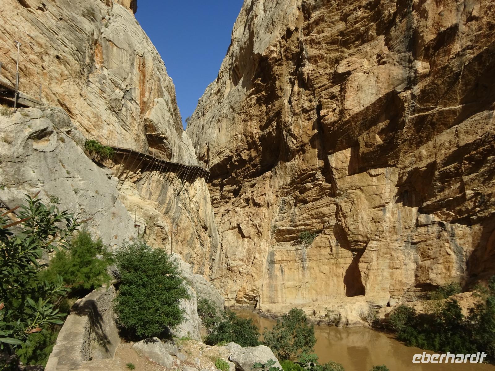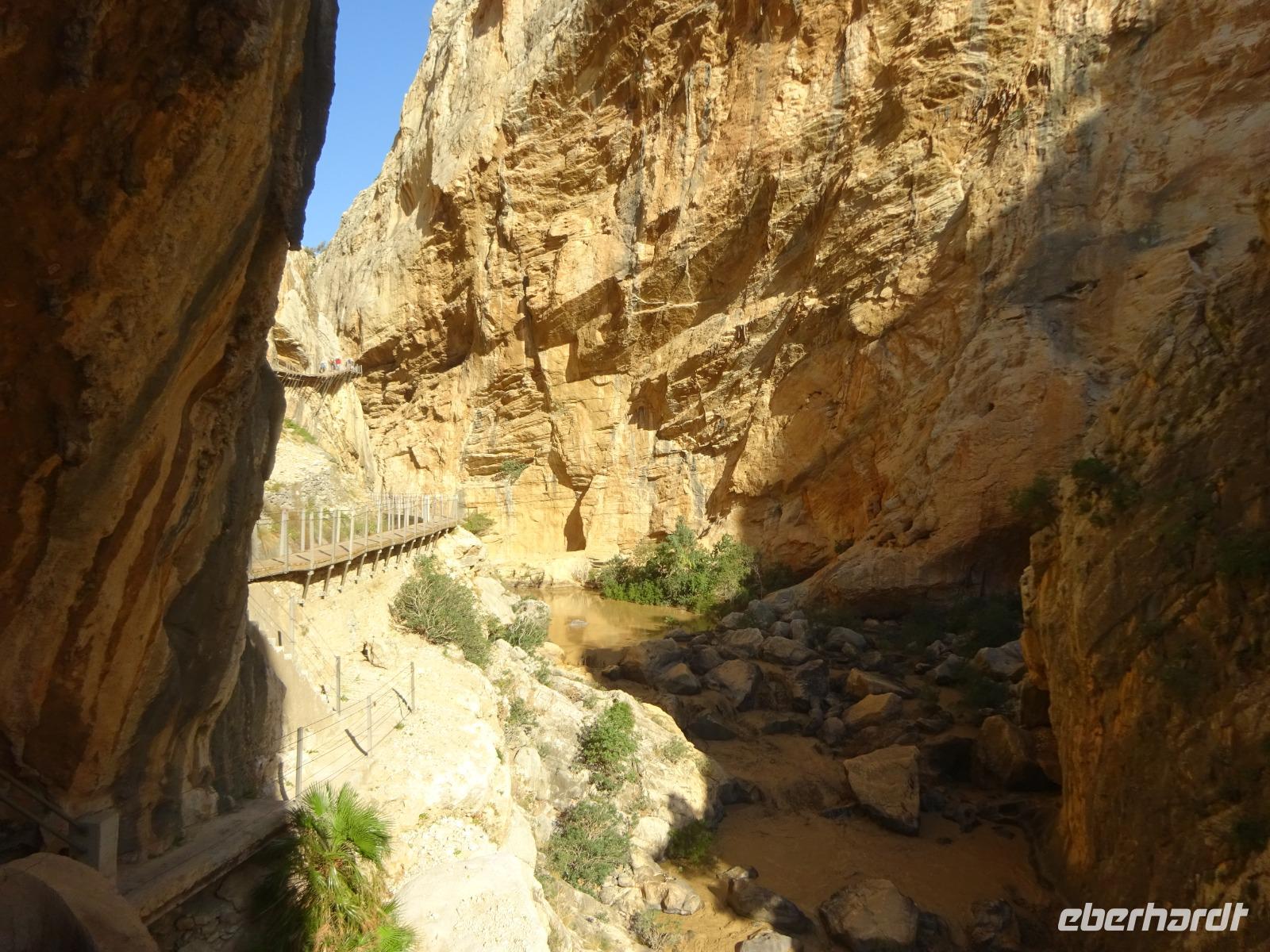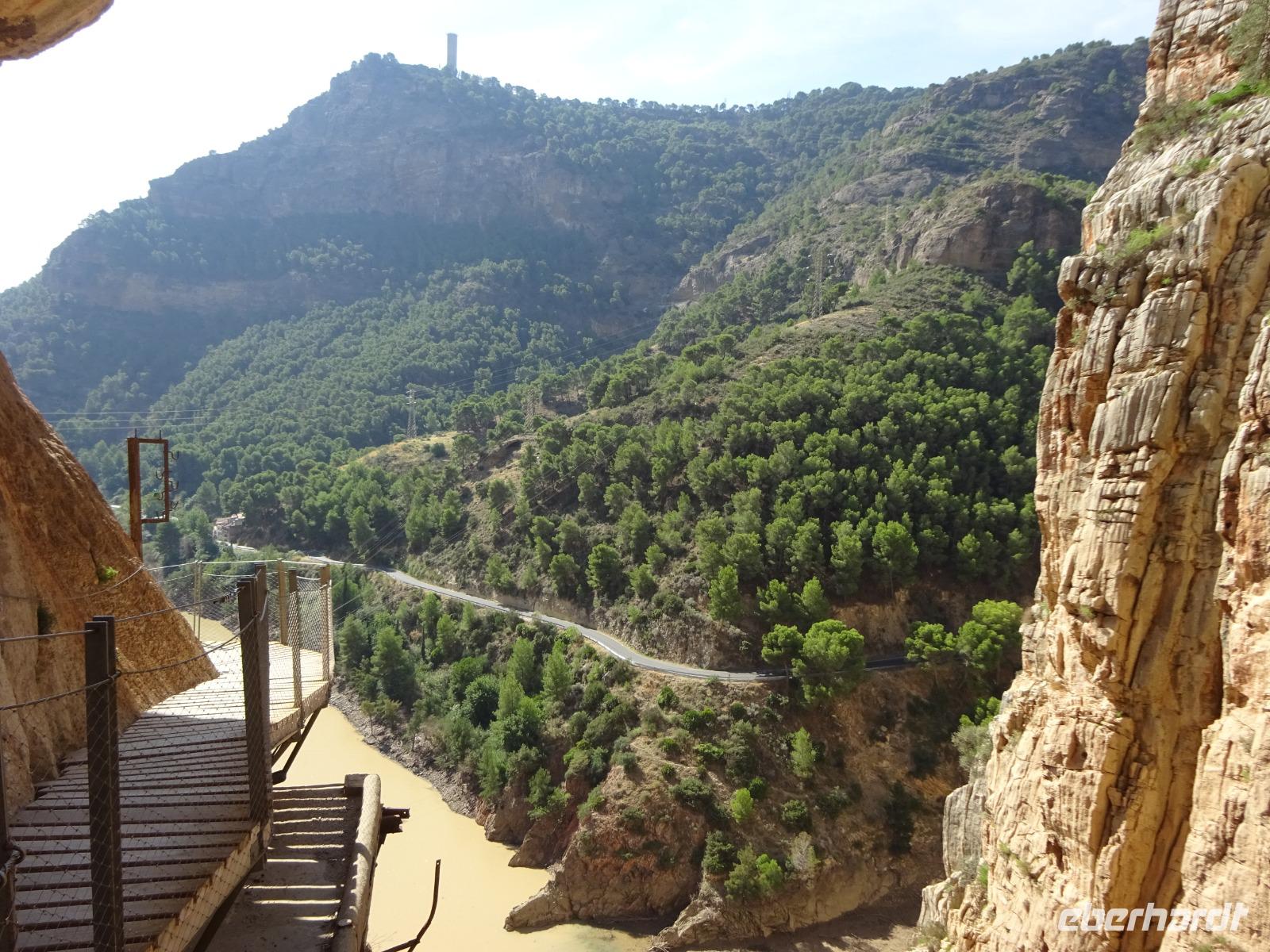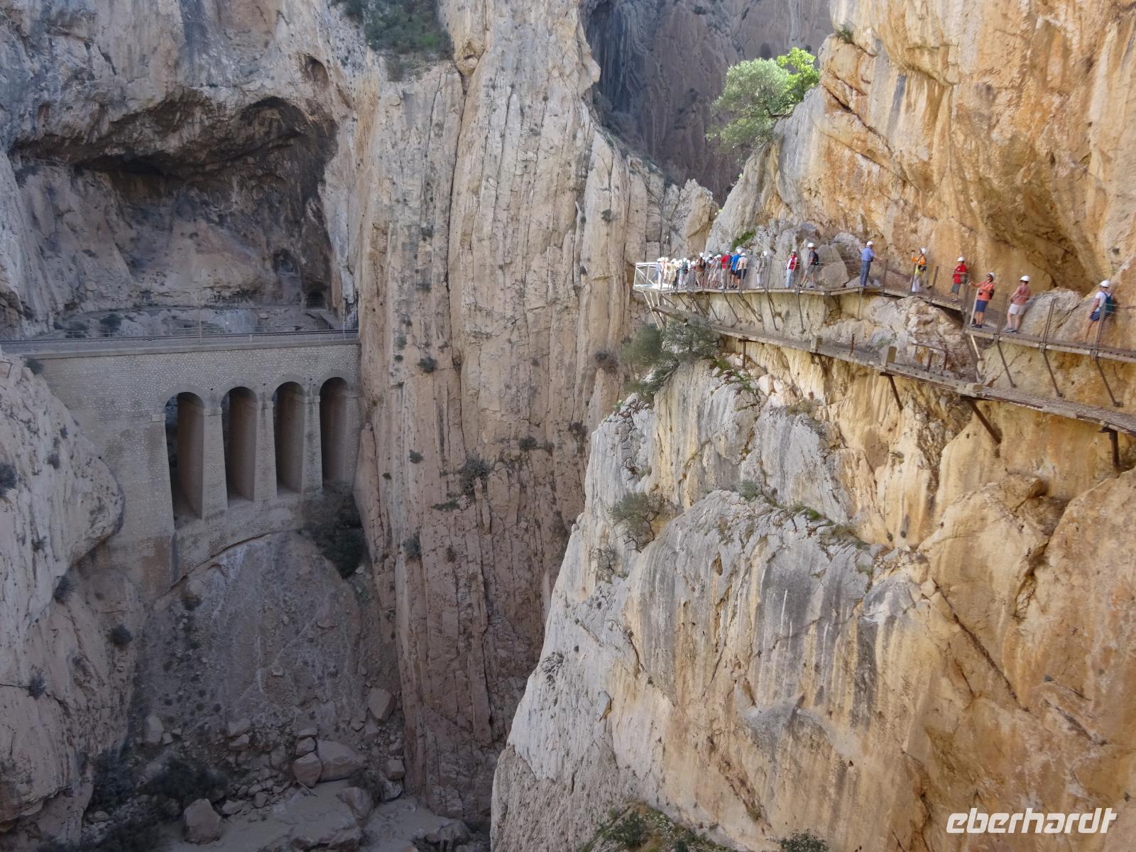 Nach dem Frühstück verlassen wir unser Hotel und fahren im Richtung Guadalhorce-Tal, wo eine Zitrusplantage gesehen haben. So langsam änderte sich auch die Landschaft und wir fuhren durch die ersten Berge in die Nähe des Dorfes Ardales, sowie des Stausees El Chorro. Am Stausee stiegen wir aus und gingen zu Fuß durch einen dunklen Tunnel und einer kleine Wanderroute folgend zum Haupteingang des Königspfades. Abgesichert mit Helmen begannen wir unseren Weg auf dem Königspfad, entlang des ersten Wasserkraftwerks Spaniens, der wunderschönen Natur, mit der Sichtung vieler Geier. Wir haben dessen Geschichte kennen gelernt und konnten die faszinierende Umgebung hautnah erleben.