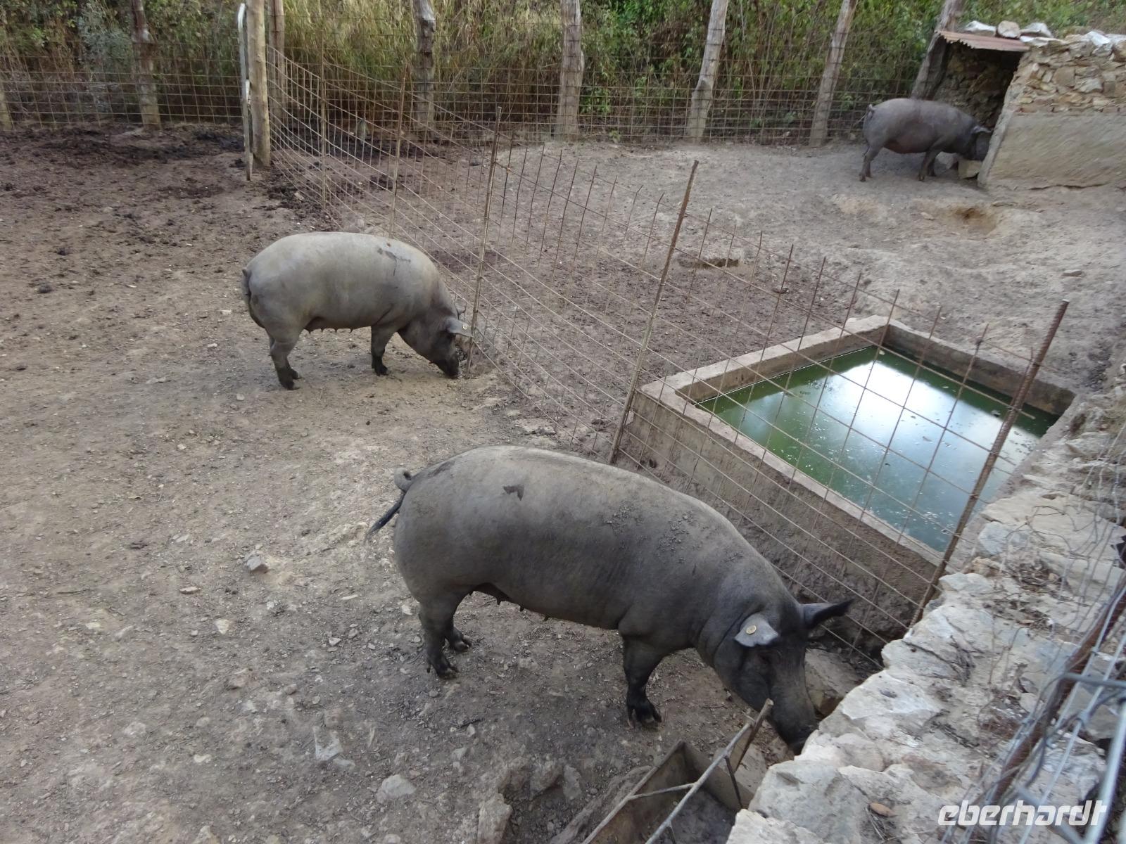 Bekräftigt begannen wir unsere Route in Galaroza auf den traditionellen Wegen und fanden das typische iberische Schwein, sowie die einheimische Natur vor: Kastanien-Bäume, Korkeiche, Erdbeerbäume, sowie den einen leider ausgetrockneten Fluss.