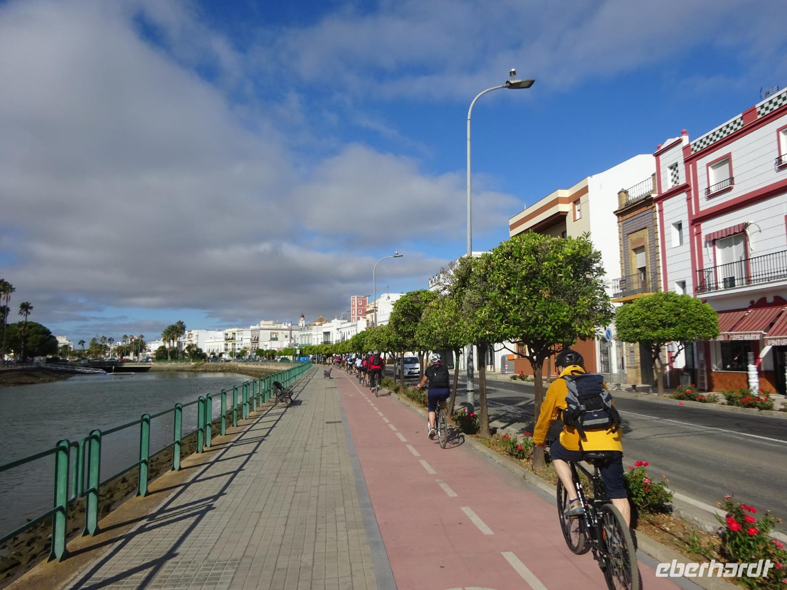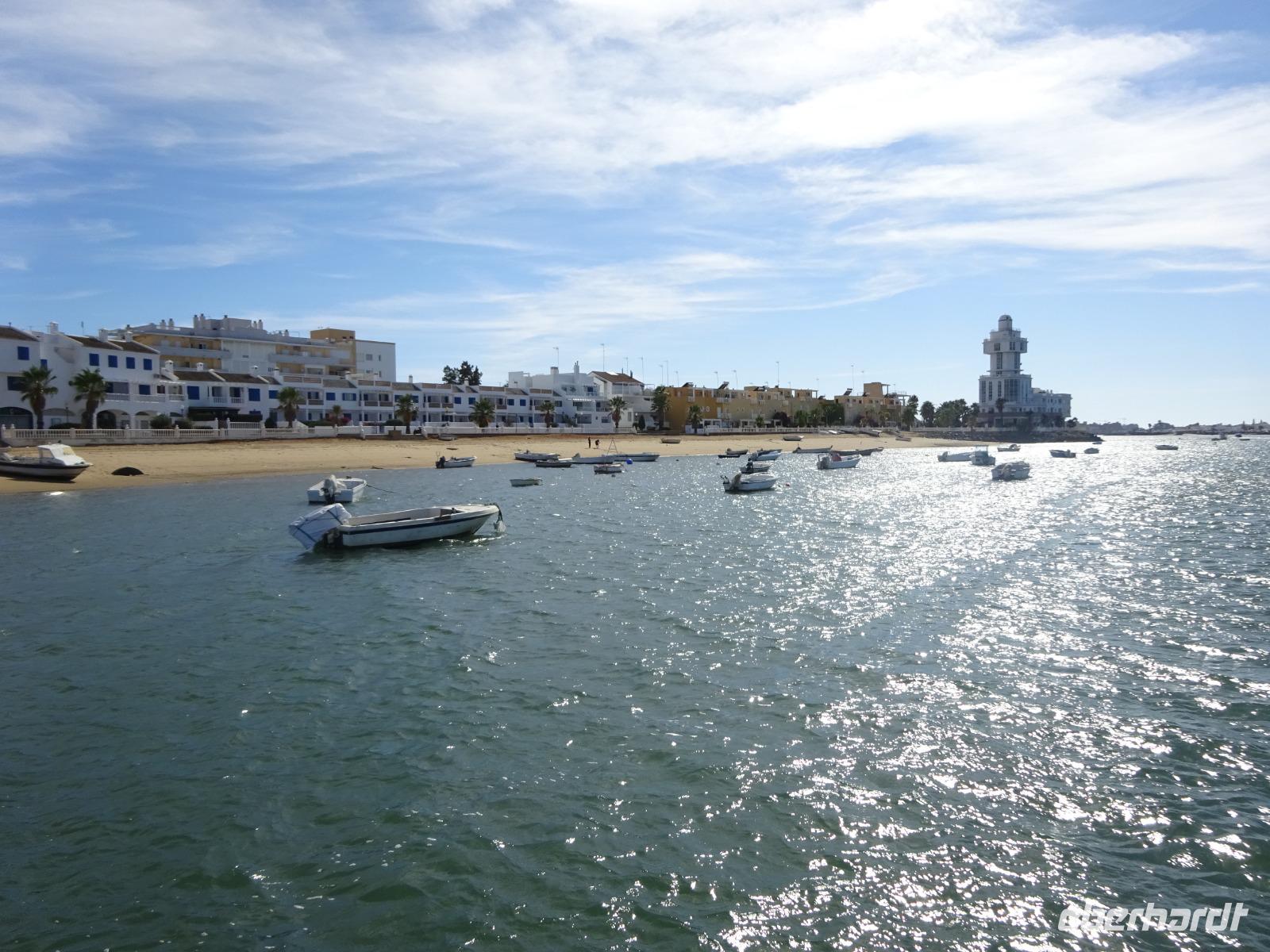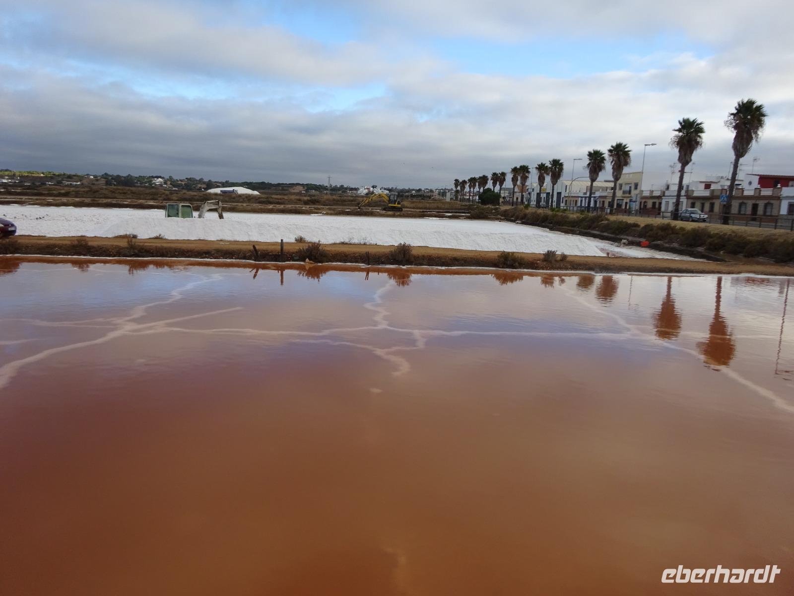 Nach dem Frühstück gingen wir zum Yachthafen Isla Cristinas und nahmen unsere Fahrräder. Wir fuhren durch die engen Straßen der Stadt und erlebten die Vorbereitungen für ein Stadtfest live mit. Außerhalb der Stadt fanden wir die Salinen vor und haben richtige Salzberge bestaunen können.