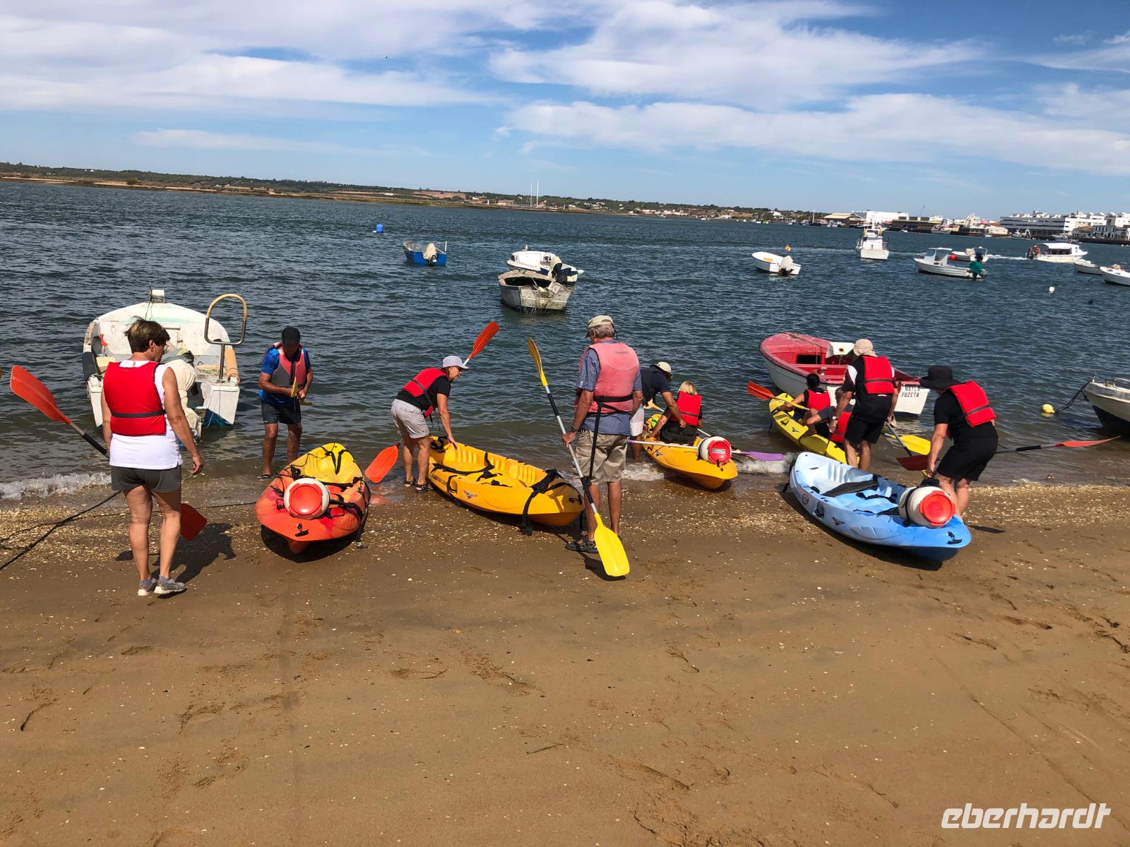 Nach diesem einzigartigen Erlebnis fuhren wir ein Stück weiter bis zu unserem Restaurant und hatten die Möglichkeit vor dem Mittagsessen zu baden. Beim Essen fehlte nichts, weder die traditionellen portugiesischen Vorpeisen, noch der landestypische Kabeljau. Am Ende fuhren wir wieder in die Stadt, nahmen die Fähre nach Ayamonte zurück und fuhren auf den Fahrradweg bis zum Isla Canela. Per Taxi-Boot kehrten wir nach Isla Cristina zurück.
