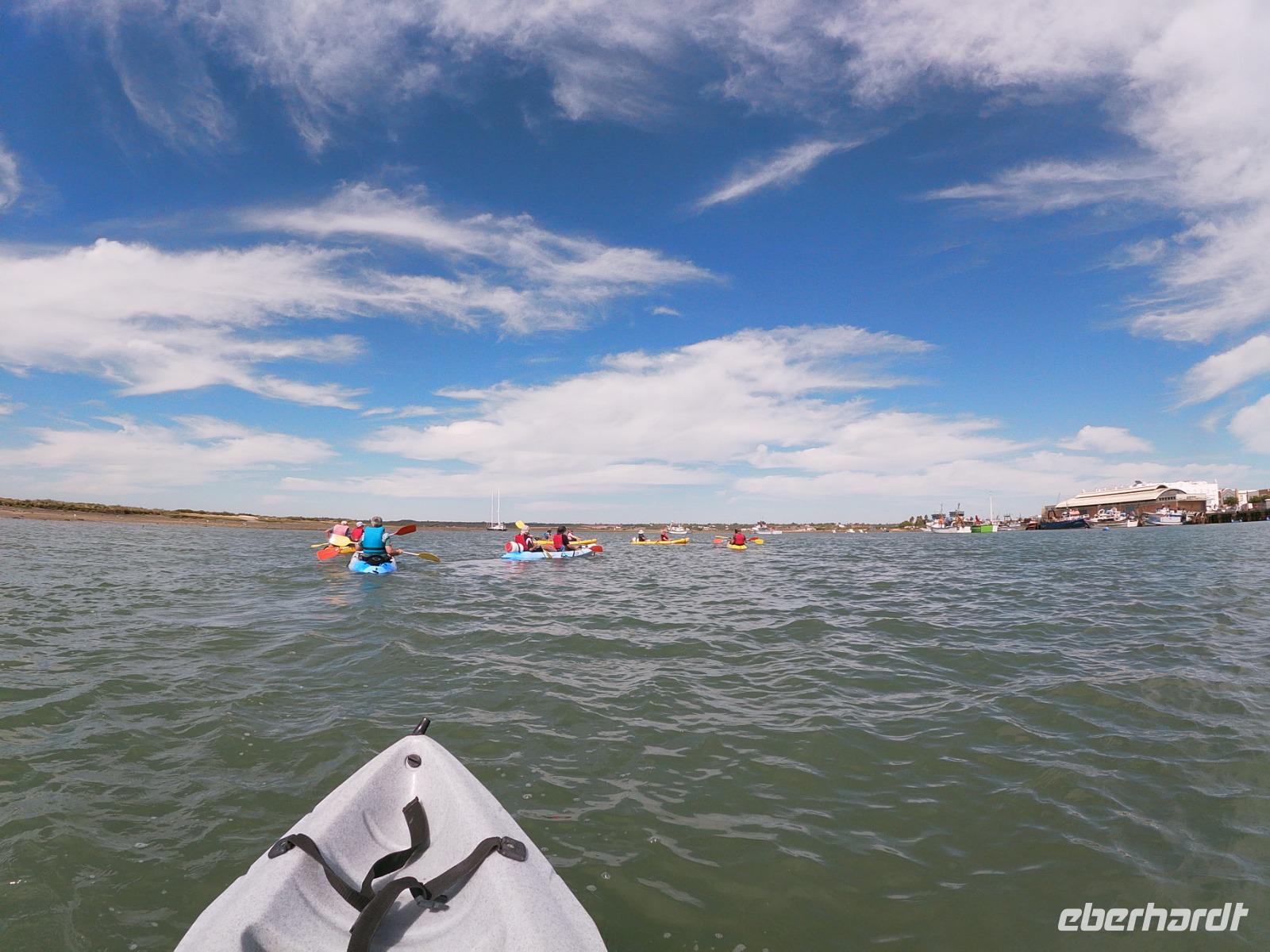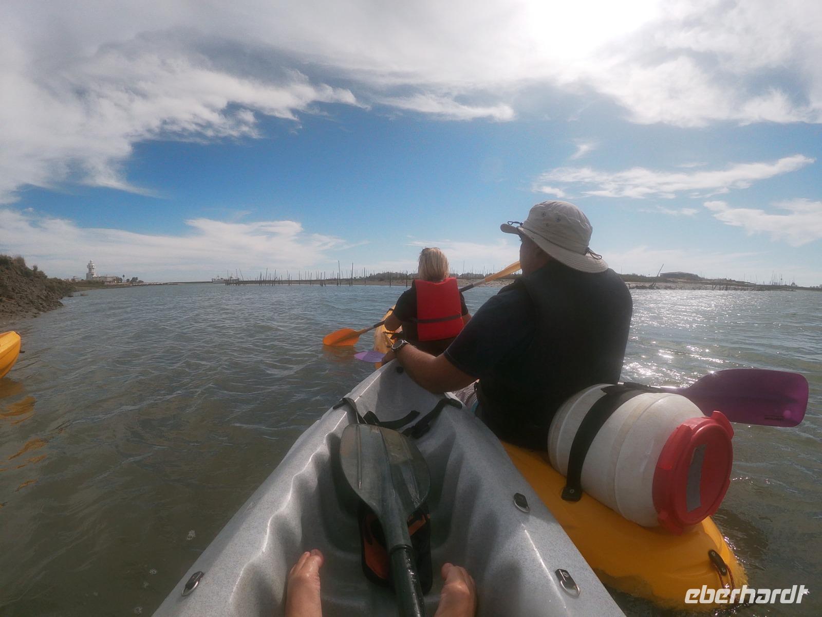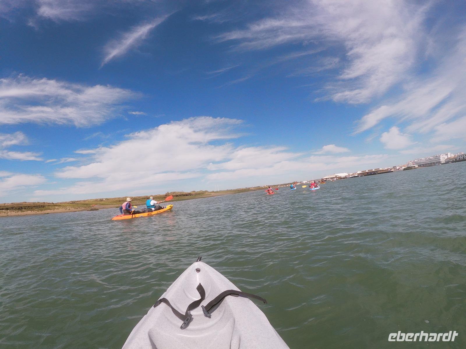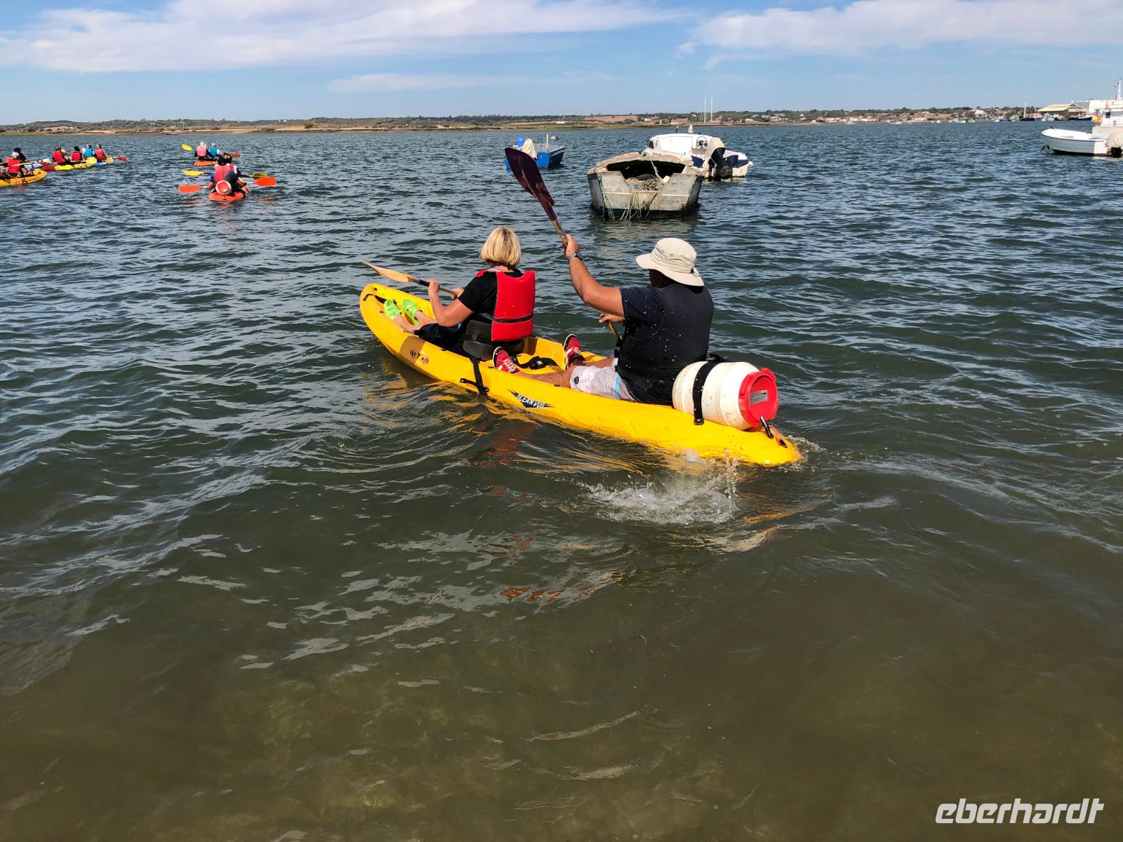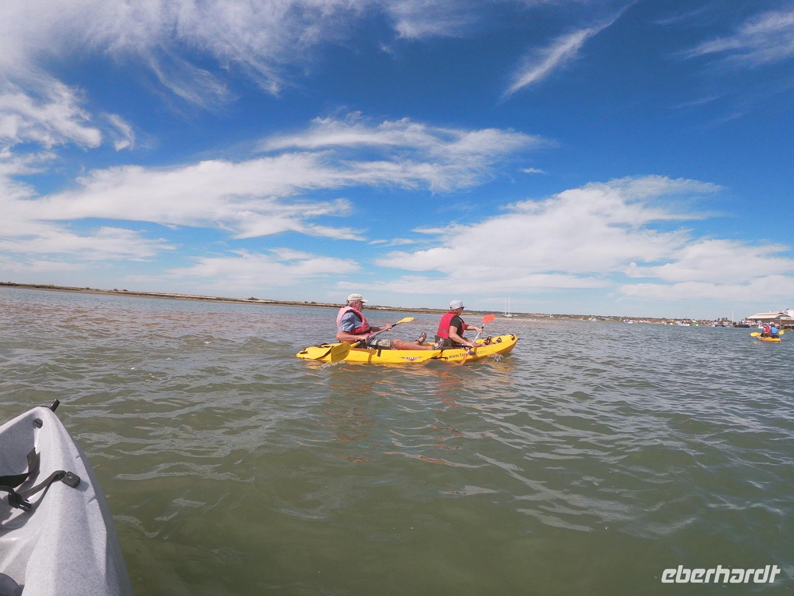 Im Yachthafen Isla Cristinas suchten wir unsere Kayak auf und eroberten, nach kurzem Einleitungskurs, das Wasser. Mit gelernter Technik probierten wir unsere Kenntnisse und Fähigkeiten im Wasser aus. Wir verließen den Hafen und besuchten die Sümpfe, jedoch machte es die Strömung zwischen diesen Streckenabschnitten etwas komplizierter. Trotz dessen haben wir die Aufgabe gemeistert. Auf unsere Route sahen wir den Fischermarkt und erkundeten den Atlantik, was uns aufgrund von Niedrigwasser ermöglicht wurde. Am Strand angekommen machten wir eine kleine Pause und fuhren nach dieser von der Strömung getrieben bis in die Sümpfe. In den Sümpfen angekommen fuhren wir soweit wie möglich rein und sahen zahlreiche kleine Krabben und Vögel. Auf der Rückfahrt besuchten wir wieder den Strand mit dem Leuchtturm.
