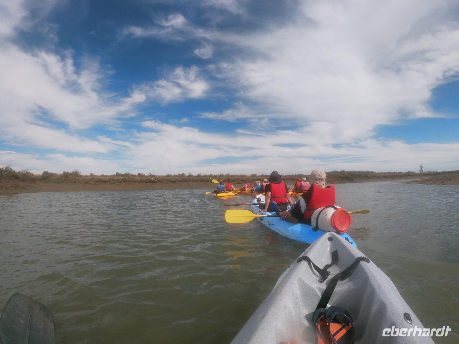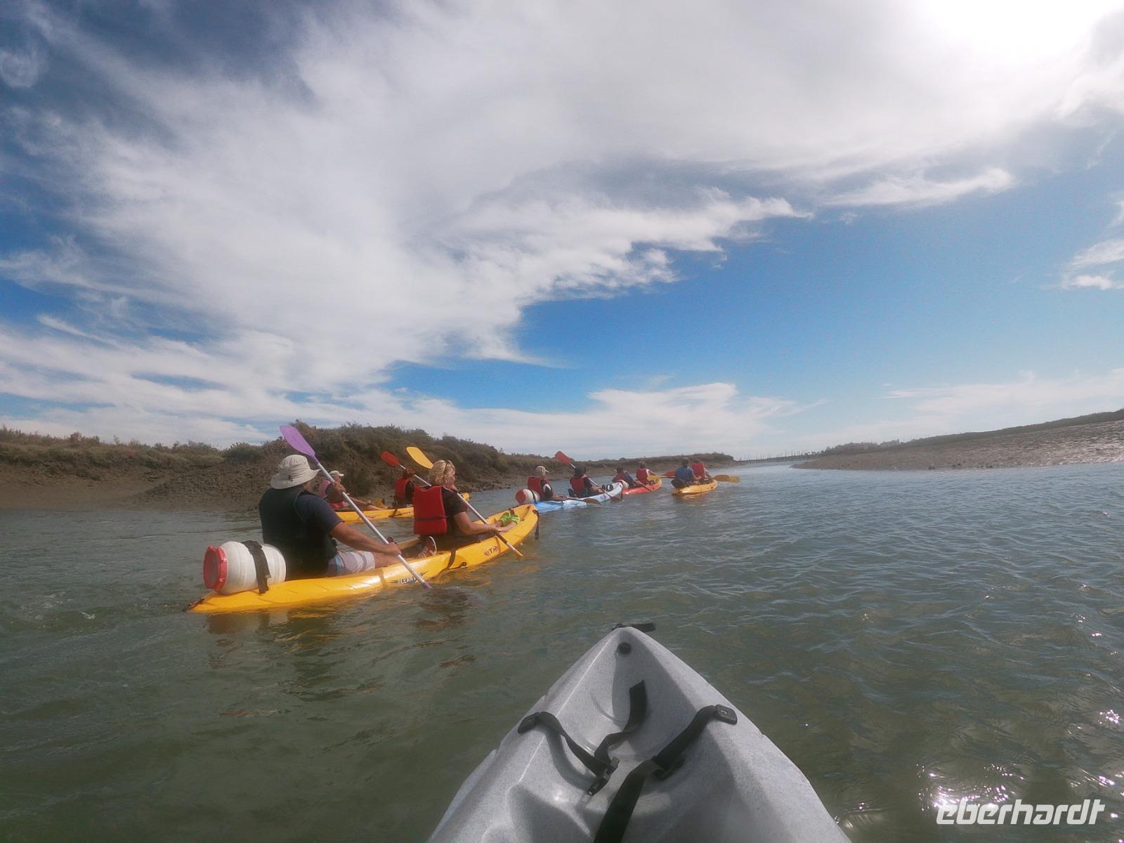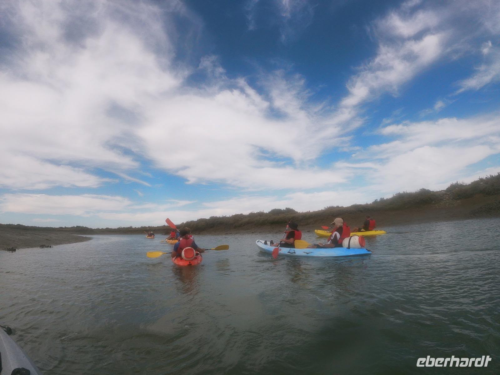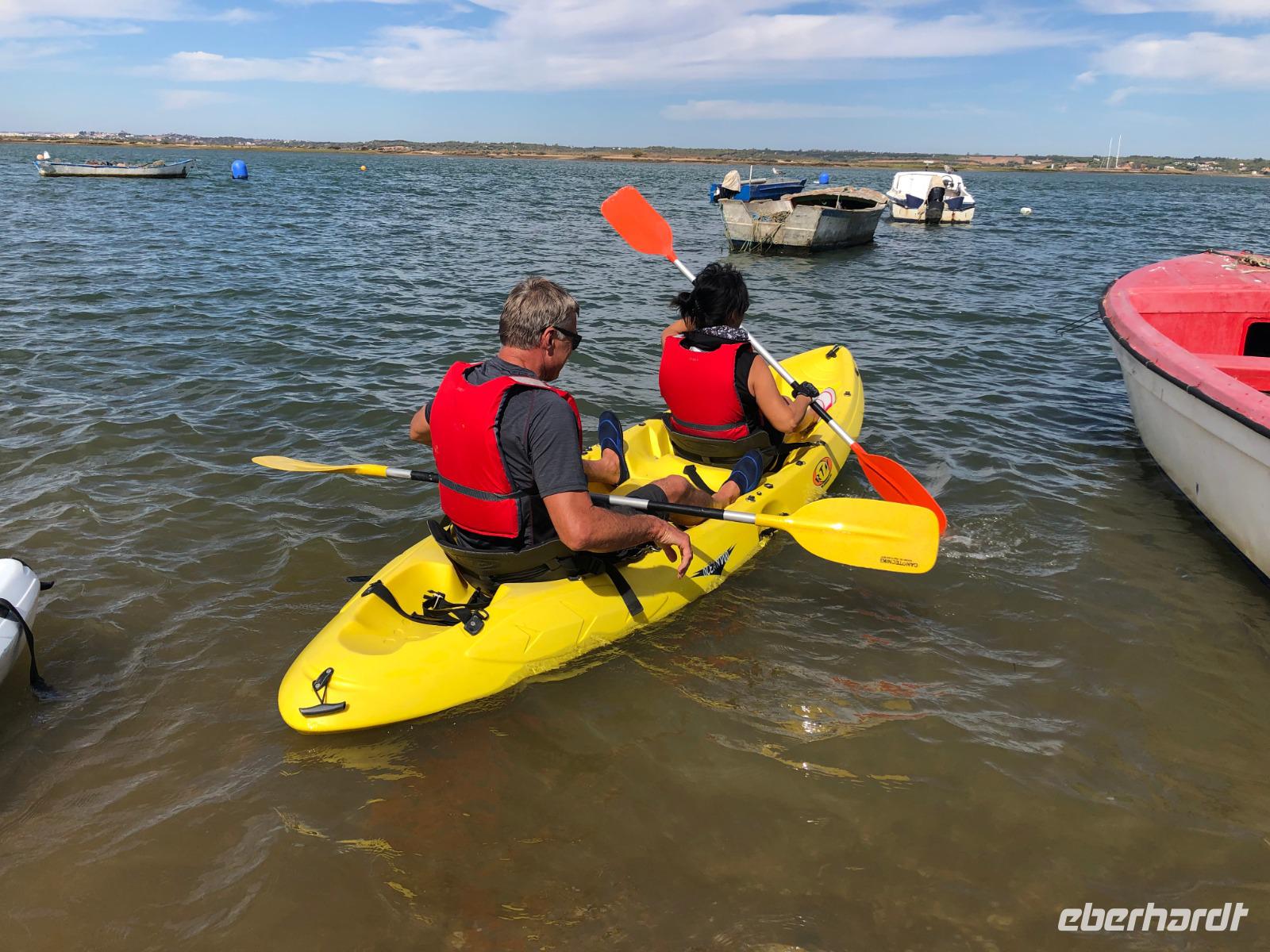 Im Yachthafen Isla Cristinas suchten wir unsere Kayak auf und eroberten, nach kurzem Einleitungskurs, das Wasser. Mit gelernter Technik probierten wir unsere Kenntnisse und Fähigkeiten im Wasser aus. Wir verließen den Hafen und besuchten die Sümpfe, jedoch machte es die Strömung zwischen diesen Streckenabschnitten etwas komplizierter. Trotz dessen haben wir die Aufgabe gemeistert. Auf unsere Route sahen wir den Fischermarkt und erkundeten den Atlantik, was uns aufgrund von Niedrigwasser ermöglicht wurde. Am Strand angekommen machten wir eine kleine Pause und fuhren nach dieser von der Strömung getrieben bis in die Sümpfe. In den Sümpfen angekommen fuhren wir soweit wie möglich rein und sahen zahlreiche kleine Krabben und Vögel. Auf der Rückfahrt besuchten wir wieder den Strand mit dem Leuchtturm.