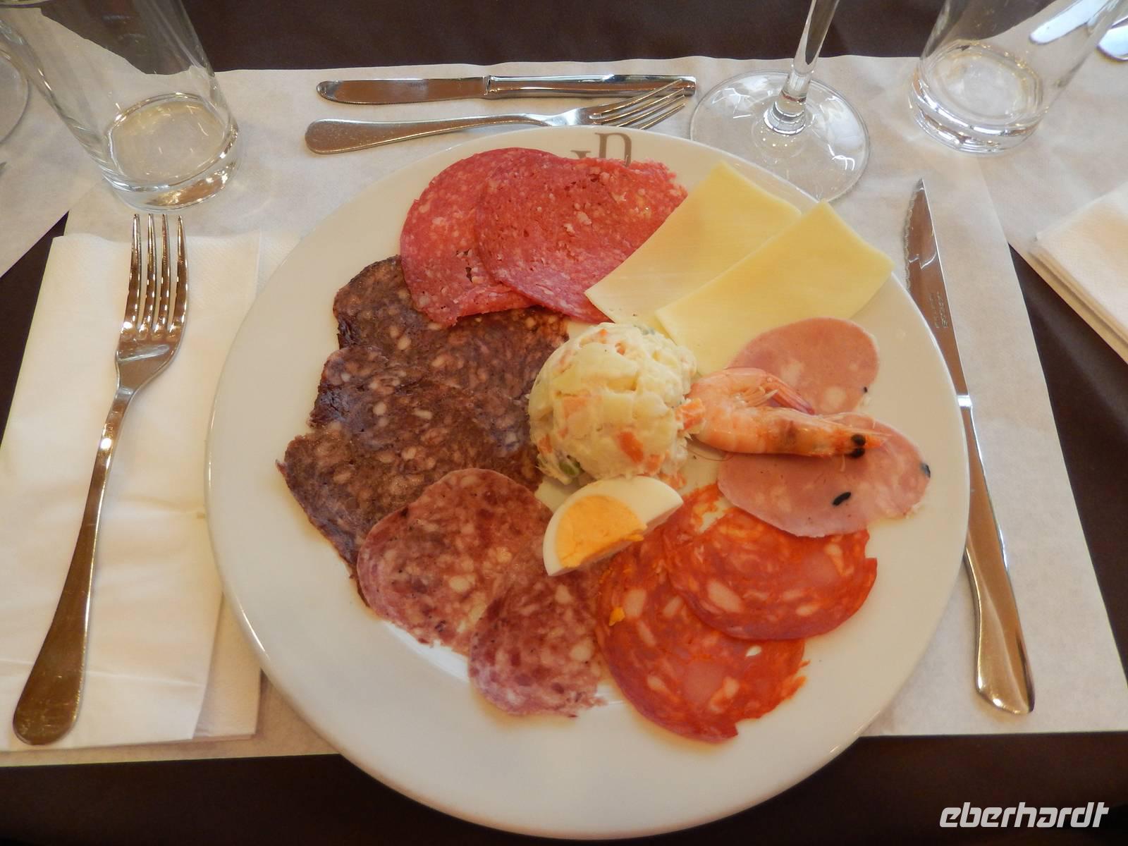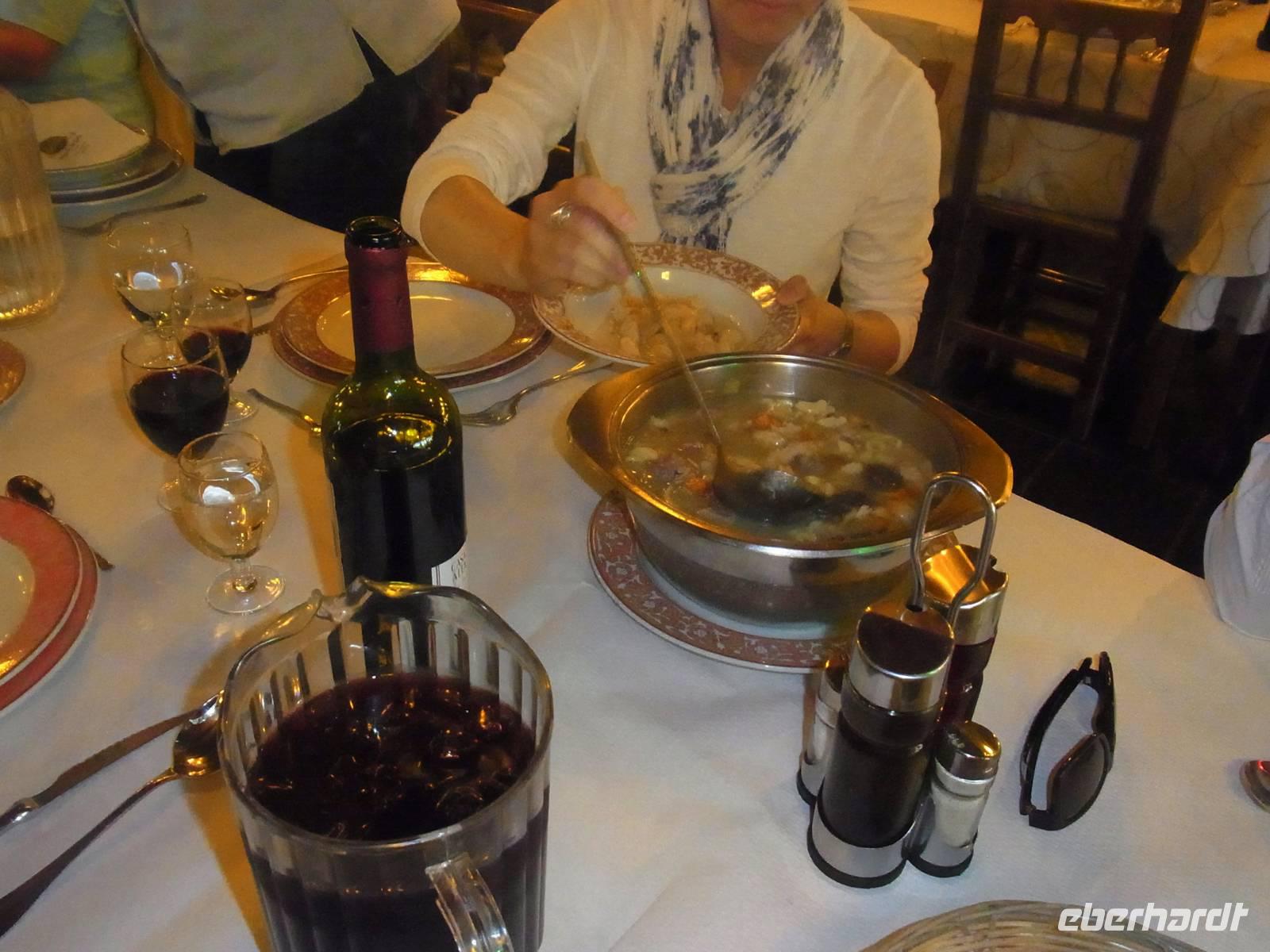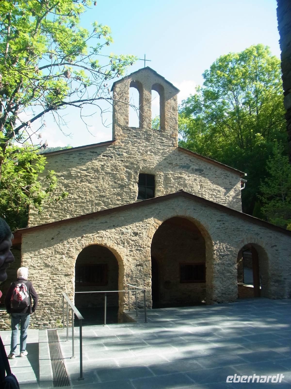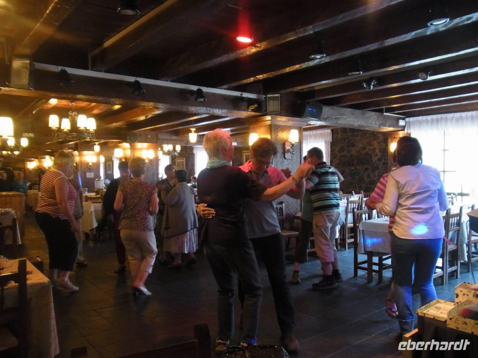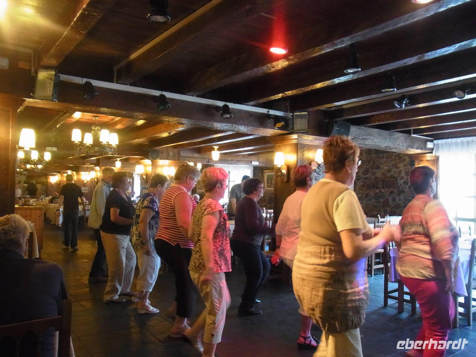 Ein Blick aus dem Fenster verrät uns auch heute wieder - es wird ein schöner Tag. Zusammen mit Helga besichtigen wir das Heligtum von Meritxell. Nun hatten wir die letzten Tage, sowohl von Ada, als auch von Marco, schon einiges darüber gehört und sind nun gespannt, was uns erwartet. Merixtell ist ein sehr bekannter Mädchenname in Andorra und bedeutet übersetzt Mittagssonne. Außerdem ist Merixtell die Schutzpatronin der Kirche. In der Kirche befindet sich eine Statue der Heiligen Jungfrau von Meritxell, deren Original aus dem 12. Jahrhundert stammte. Leider brannte die Kapelle in der Nacht vom 8. zum 9. September 1972 fast vollständig nieder und zerstörte das Original. Die neue Muttergotteststatue wurde von Ricardo Bofill erbaut. Doch selbst diese Statue ist nur noch die Kopie, der Kopie. Das Heiligtum von Meritxell ist ein Anziehungsmagnet und wird auch als das „Lourdes von Andorra" bezeichnet. Nächste Station an diesem Tag ist der Engolasters See, der besonders bei der Bevölkerung von Andorra ein beliebtes Wochenendziel ist. Durch diesen Stausee werden viele der Bewohner von Andorra mit Strom versorgt. Doch bevor wir diesen See erreichen legen wir noch einen kleinen Fotostopp an der Kirche Sant Miquel d'Engolasters ein. Der Engolasters See befindet sich in 1616 Metern Höhe. Wir genießen bei einem Spaziergang um den See die herrliche Landschaft und die Natur. Danach fahren wir weiter nach Os de Civis, einem kleinen Bergdorf und spanischen Enklave in Andorra. Bereits beim Aussteigen aus dem Bus werden wir in einem kleinen Geschäft mit Kostproben von Käse und Wurst begrüßt. Einige nehmen sogar etwas als kleines Andenken mit nach Hause. Dann führt uns Helga weiter in ein Restaurant, das seit 1962 existiert und einen sehr gastfreundlichen Eindruck hinterlässt. Zwischen Portwein, Rotwein, Likör und Sangria gibt es zahlreiche traditionelle Köstlichkeiten zu probieren. Alles wird mit Musik untermalt und wir beenden unser reichhaltiges Mahl sogar mit einem Tänzchen. Das lässt die Stimmung steigen und sorgt für eine lustige Rückfahrt ins Hotel. Einen kleinen Fotostopp an einer romanischen Kirche machen wir allerdings auch noch. Das Abendessen lässt wieder einmal keine Wünsche offen. Die gute Laune behalten wir am Abend bei und einige von uns verbringen einen lustigen Ausklang des Tages in der Lobby mit Tanz und Musik. Lassen wir uns überraschen, was morgen noch so kommt.