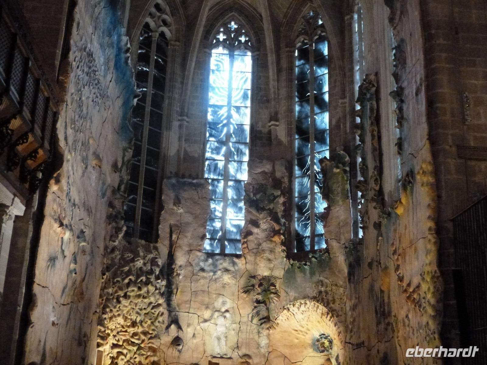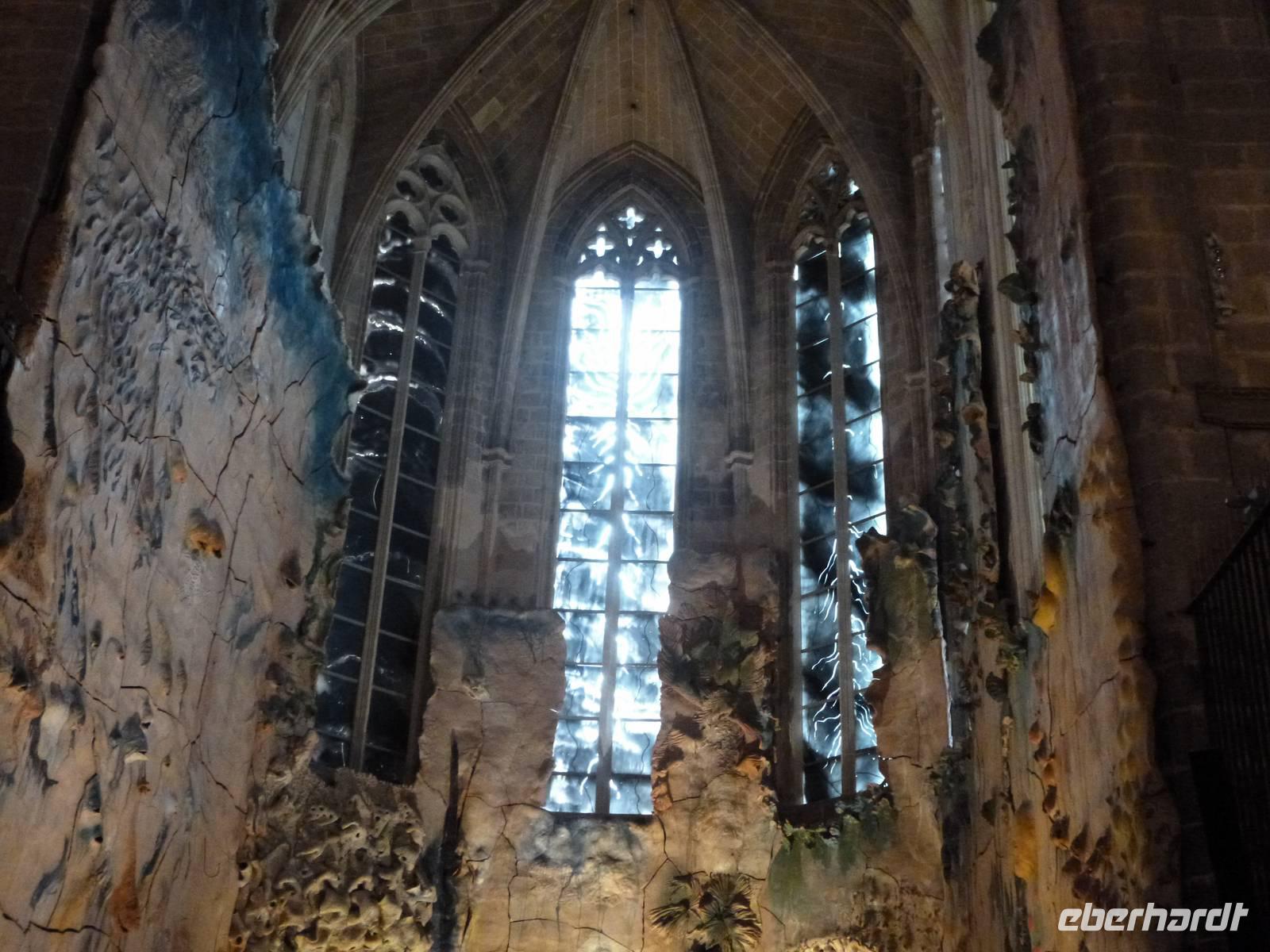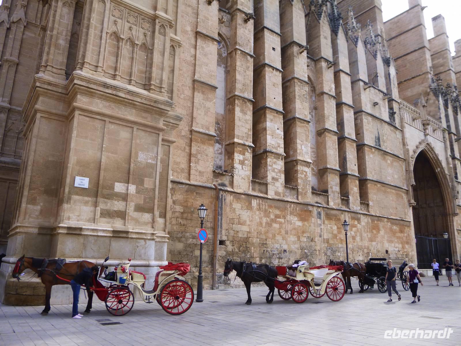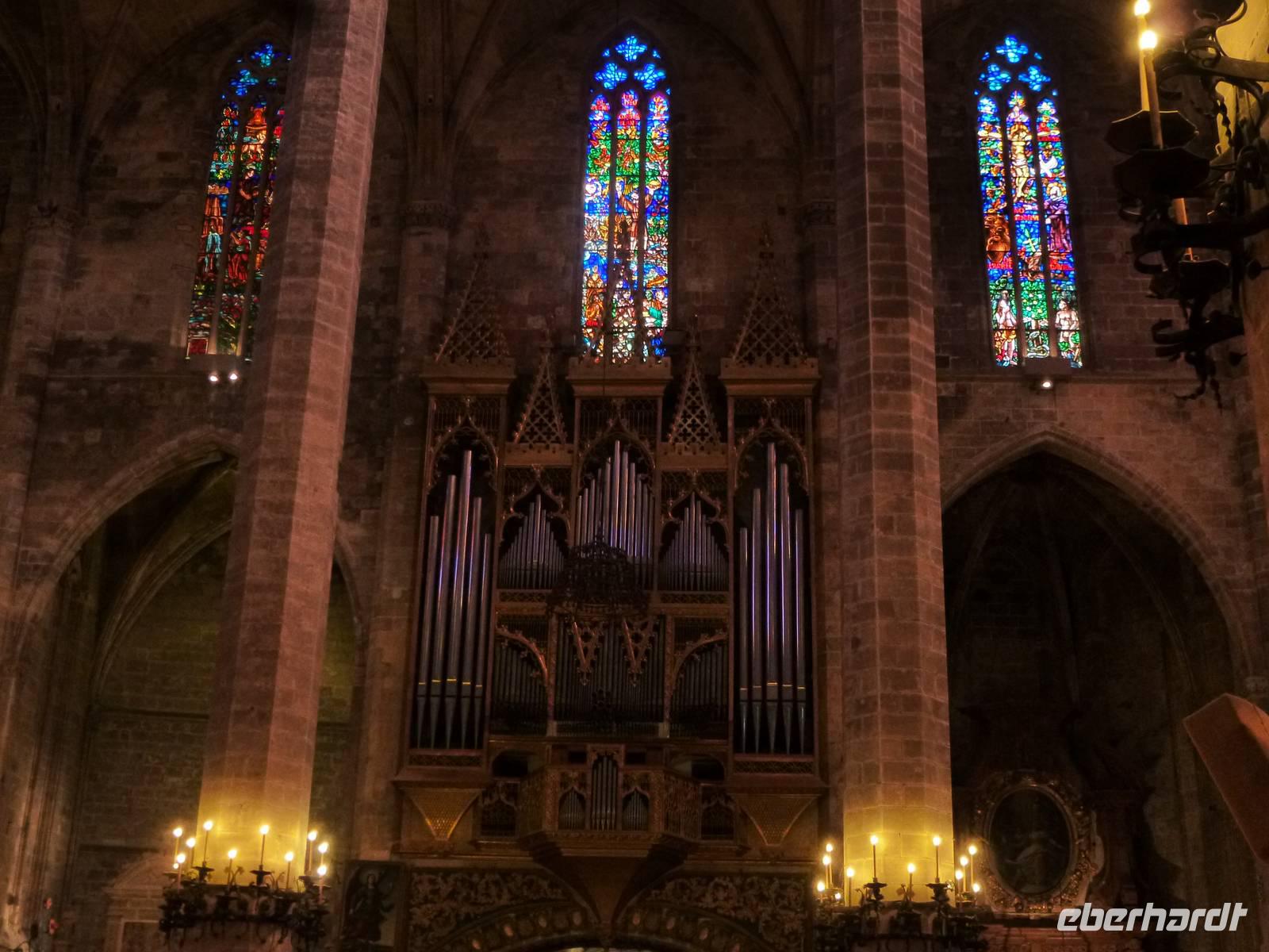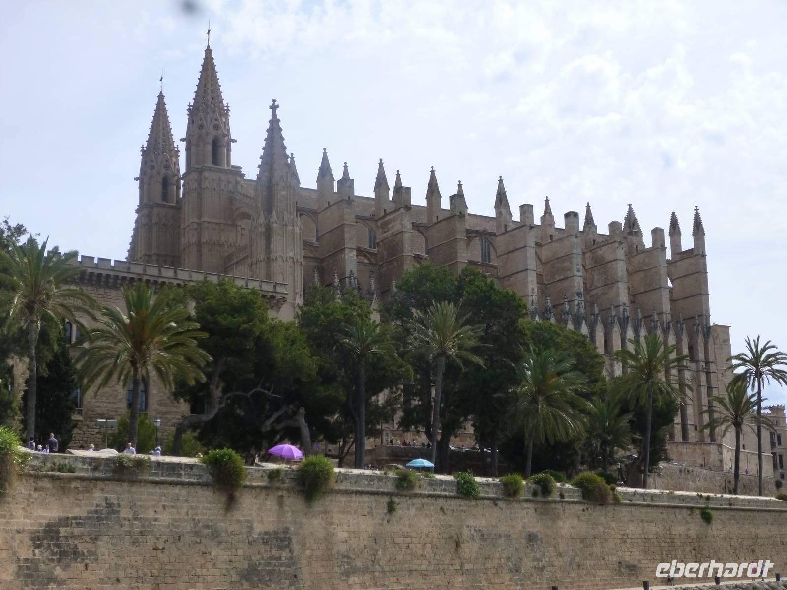 Der heutige Tag stand ganz im Zeichen der mallorquinischen Hauptstadt Palma. Zuerst besuchten wir das hoch über der Stadt liegende Schloss Bellver. Im Jahre 1309 fertig gestellt, diente das ''Castillo de Bellver'' für kurze Zeit als Sommerresidenz der mallorquinischen Könige. Später war es als Kerker vor allem ein Ort der Folter und des Grauens. Heute beherbergt das Castillo ein historisches Museum, mit vielen interessanten Ausstellungsstücken. Der schöne Ausblick über das bergige Hinterland, das weite Meer, die Stadt Palma, mit den vielen Jachten im Hafen und der Altstadt war leider durch leichten Nebel getrübt. Unser nächstes Ziel, die prächtige Kathedrale „La Seu". Das ca. 110 Meter lange Hauptschiff fasziniert vor allem durch die 14 schlanken, knapp 22 Meter hohen Säulen, sowie durch die aus 1.236 Glasteilen bestehende Fensterrose, mit einem Durchmesser von 11,5 Metern. Magdalena bringt uns mit ihren interessanten Ausführungen, dieses einzigartige gotische Bauwerk aus dem 14. - 16. Jahrhundert näher.