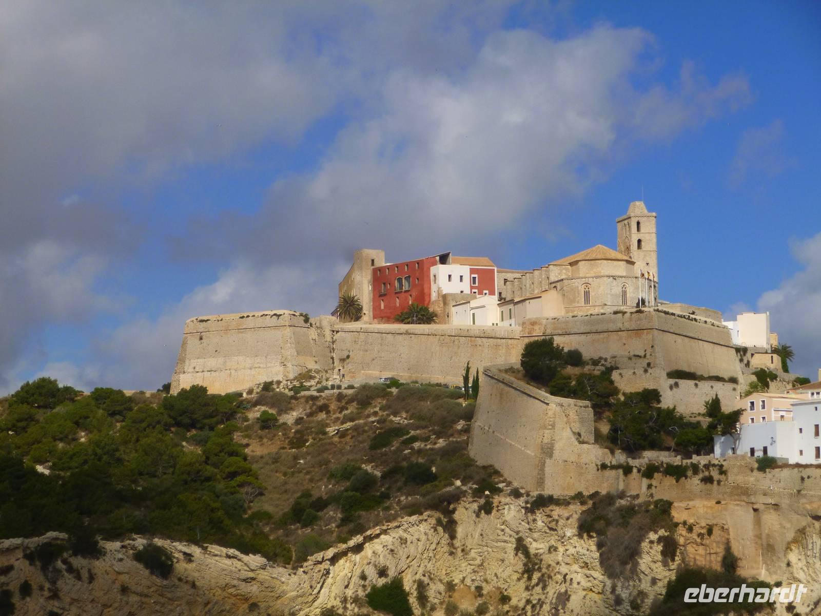 Bei strahlendem Sonnenschein starten wir, gemeinsam mit unserer örtlichen Reisebegleiterin Vicky zur Erkundung der Stadtbefestigung und gleichzeitigem Zentrum der Altstadt. Vom Aussichtspunkt des Bollwerks Sant Bernard, können wir einen tollen Blick auf die Bucht von Ibiza, mit Ihrer kilometerlangen Strandpromenade, der Altstadt, dem Hafen und in der Ferne die Insel Formentera, genießen. Bei einem anschließenden kleinen Bummel statten wir der Kathedrale einen kurzen Besuch ab. Durch die Pforte von Ses Taules, welche von 2 römischen Statuen flankiert wird, erreichen wir den Hafen, wo wir von unserem Bus erwartet werden. Am Strand von Ses Salines, im Süden der Insel, erfahren wir von Vicky die ökologische Bedeutung der Posidonia Wiesen (Seegras). Eine einzige Pflanze kann sich über viele Kilometer ausdehnen. Vom Süden Ibiza's geht es weiter in den westlichen Teil der Insel, unser Ziel die 382m hohe Felseninsel Es Vedra.Von der Steilküste der Cala d' Hort haben wir einen super Blick auf den Inselberg, auf dem heute nur wilde Ziegen leben. Unsere Mittagspause verbringen wir an der schönen Uferpromenade in Santa Eularia im Osten der Insel. Das einzigartige der kleinen Stadt, sie besitzt den einzigen Fluß der Balearen. Dieser führt aber nur zur Winterzeit etwas Wasser.Nach einem kurzen Fotostop an der nördlichsten Badebucht Ibizas, der Cala Sant Vincent, erhalten wir einen kleinen Einblick in eine typische, jahrhundertealte Handwerkskunst von Ibiza - die Töpferei. Ein wunderschöner und interessanter Tag auf der Baleareninsel Ibiza geht zuende.