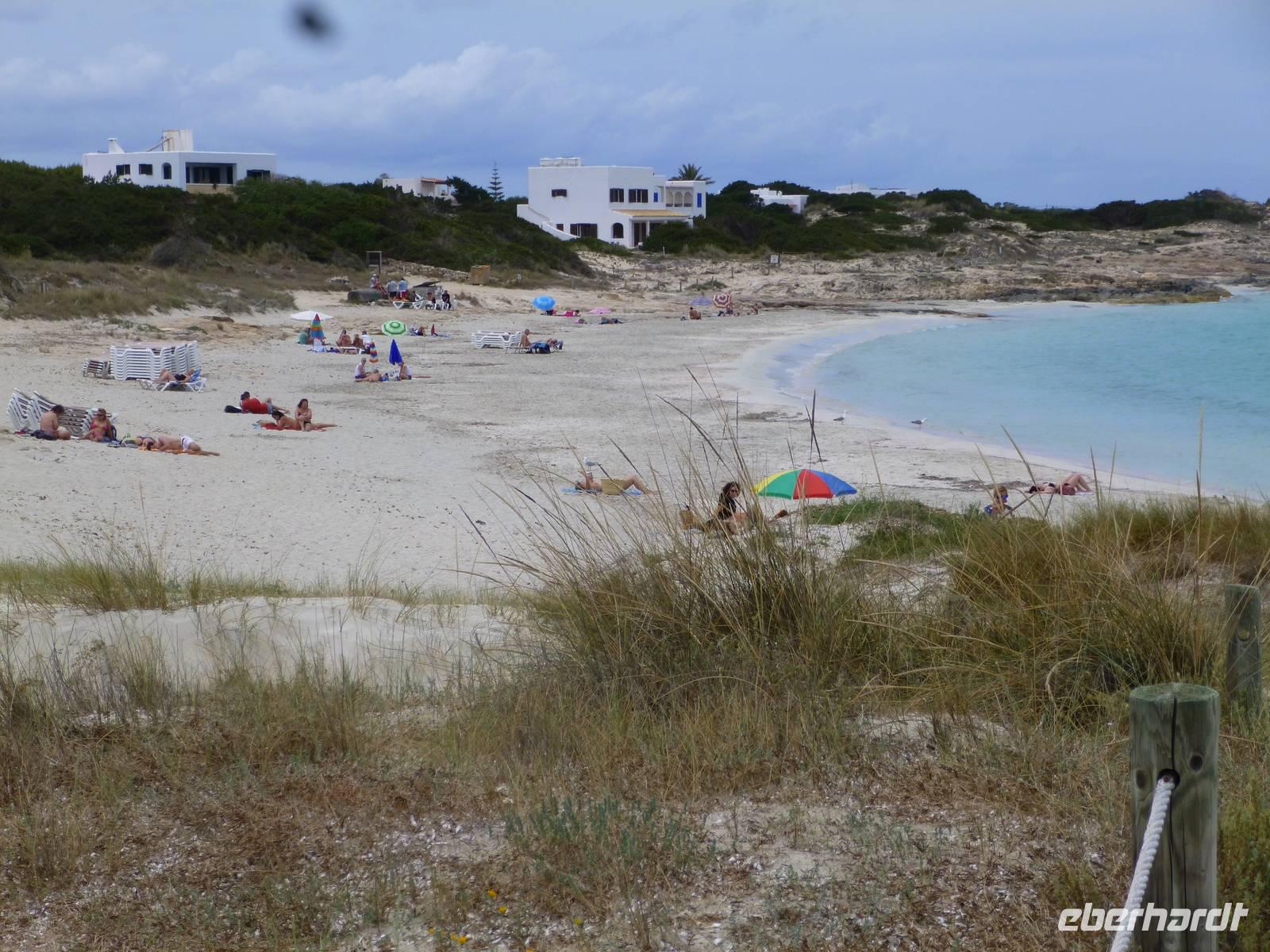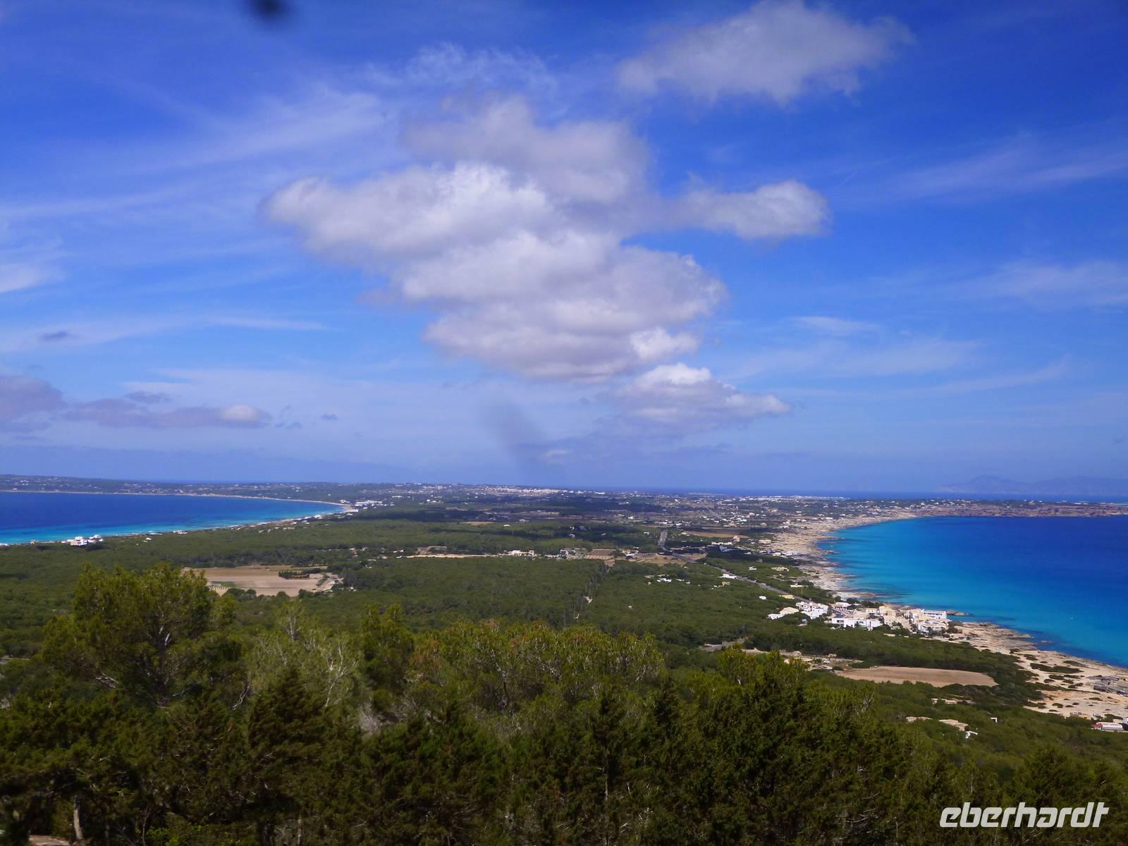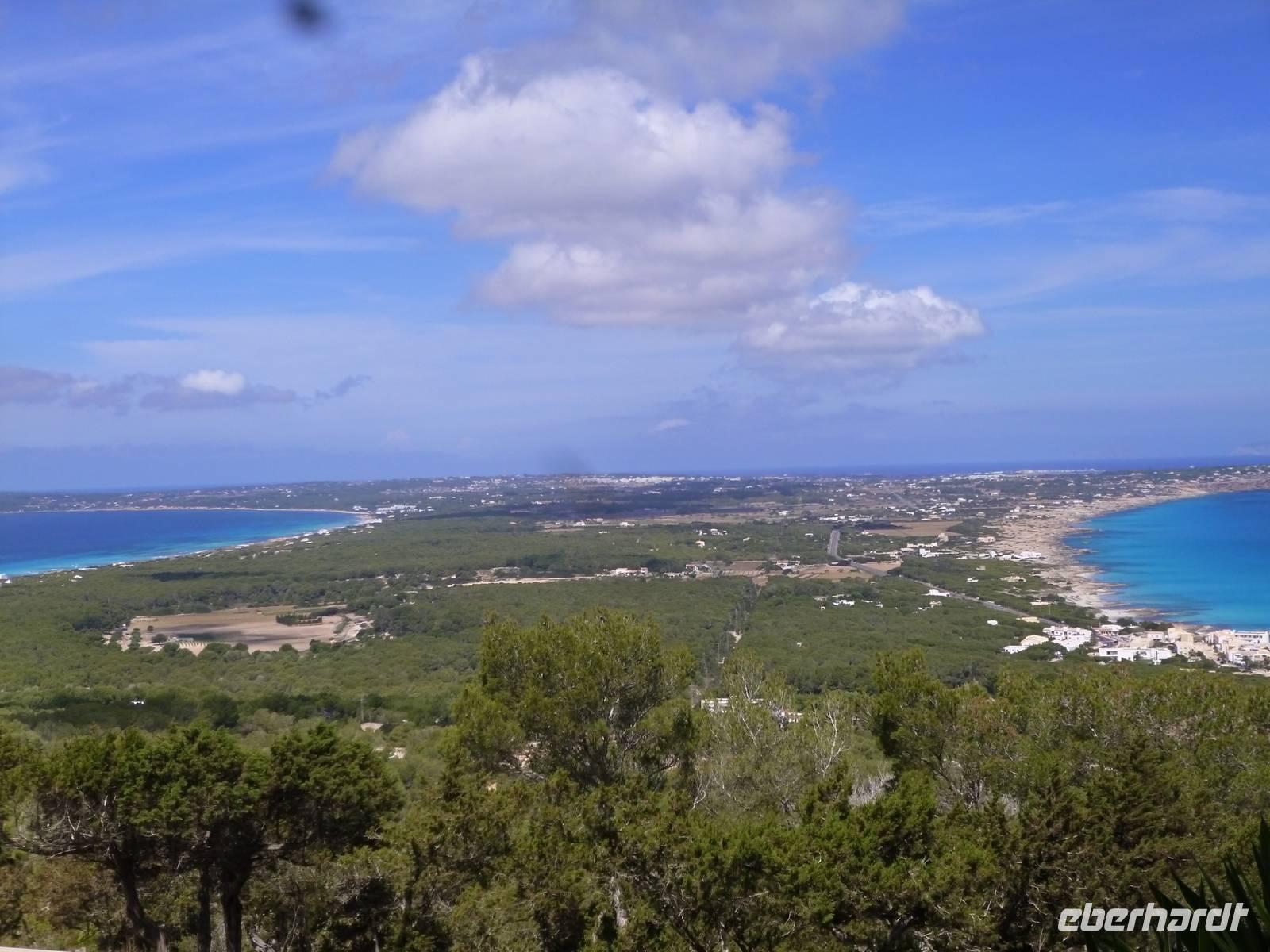 Nach dem gemütlichen Frühstück, starten wir mit unserer Begleiterin Mauri, auf eine ca. 30 minütige Fährüberfahrt auf die Insel Formentera, dem kleinsten bewohnten Eiland der Balearen. An vielen kleine unbewohnte Inseln vorbei, erreichen wir den Hafen von La Savina, dem einzigen Ankunftspunkt der Insel. Als erstes statten wir dem Hauptort der Insel Francesc Xafier einen Besuch ab, in welchem sich auch das Rathaus von Formentera befindet. Um der Ort zu umrunden benötigt man gerade mal 20 Minuten. Hinter der Kirche fand ein kleiner Hippiemarkt statt . Einige Hippies leben auch heute auf der Insel, sind aber schon um die 70 Jahre alt. Schade das das kleine privat geführte ethnologische Museum geschlossen war. Auf der Fahrt zum Aussichtspunkt Es Mirador, von dem wir tolle Fotos von der gesamten Insel knipsen konnten, erzählt uns Mauri viel interessantes über Geschichte, Flora und Fauna. In 200 Jahren müssen wir noch einmal kommen, weil es durch Erhöhung des Meeresspiegels dann wahrscheinlich statt einer, zwei Inseln geben wird.Am Ende der einzigen Hauptstraße Formentera's erreichen wir "La Mola" den mit 192m höchsten Punkt der Insel. Von der Steilküste hat man wieder einen traumhaften Ausblick über die Insel, auf Ibiza und am Horizont auch auf Es Vedra. Obwohl, laut Maurie, Jules Vernes nie auf Formentera gewesen sein soll, will man mit Sicherheit wissen, das der Leuchtturm von "La Mola" in seinem Roman "Reise durch das Sonnensystem" beschrieben wird. An der Steilküste leben auch viele tolle Echsen und in unserer Gruppe entbrannte ein Wettkampf um das schönste Foto mit den kleinen grünen Tierchen... wer es wohl hat . Schade das ich am Nachmittag das Wetter eintrübte und keiner Lust hatte ins kühle Wasser an den schönen Stränden zu springen. Auf der Rückfahrt nach Ibiza weinte der Himmel...