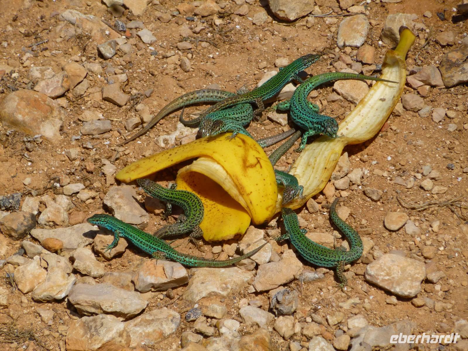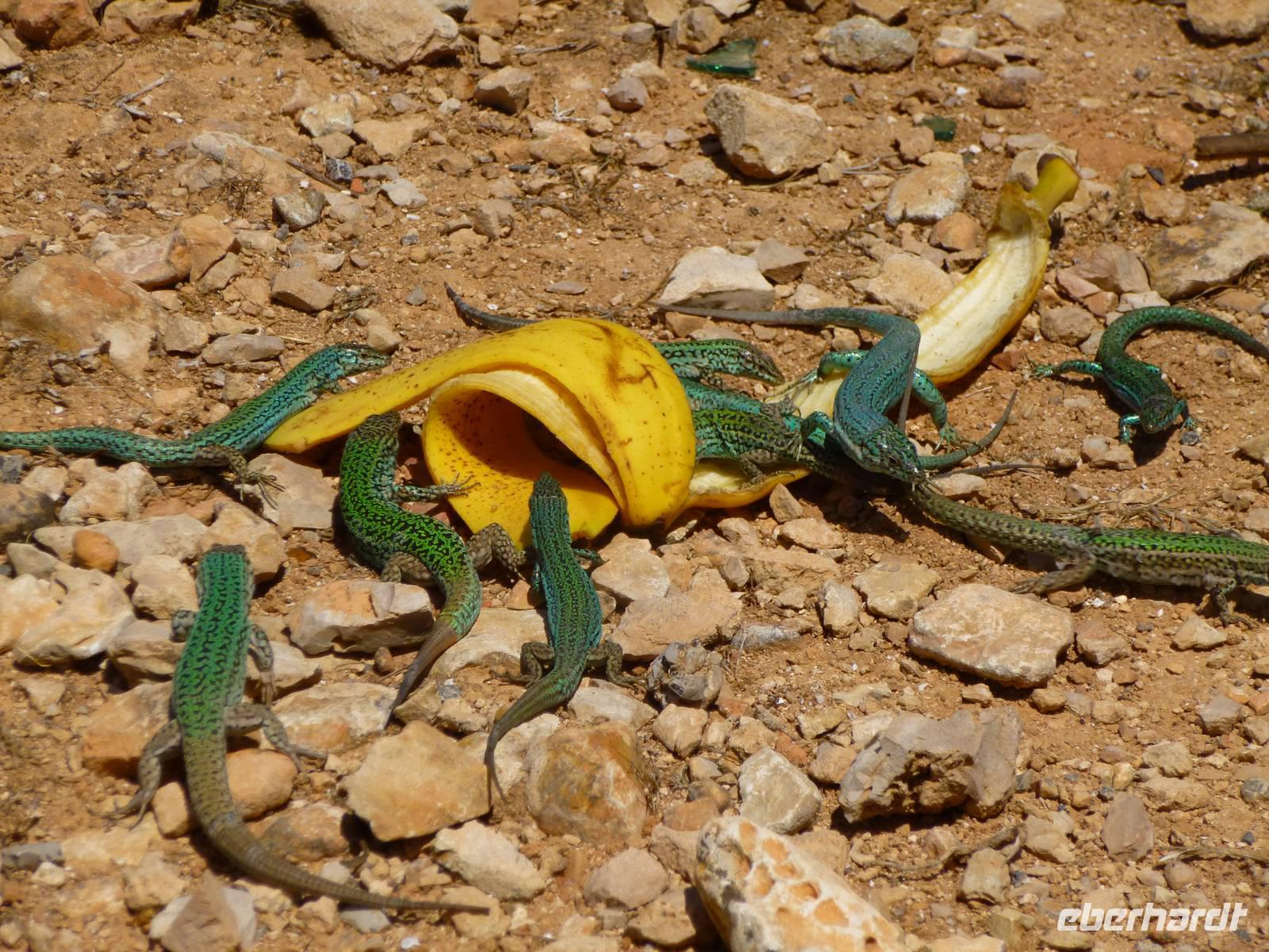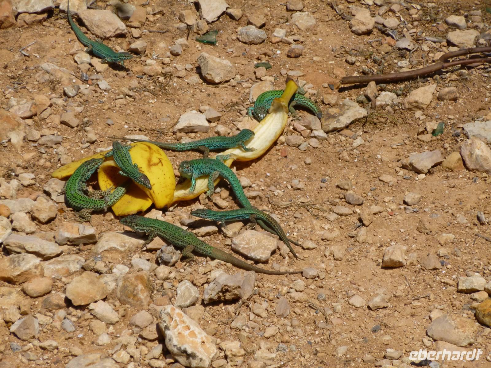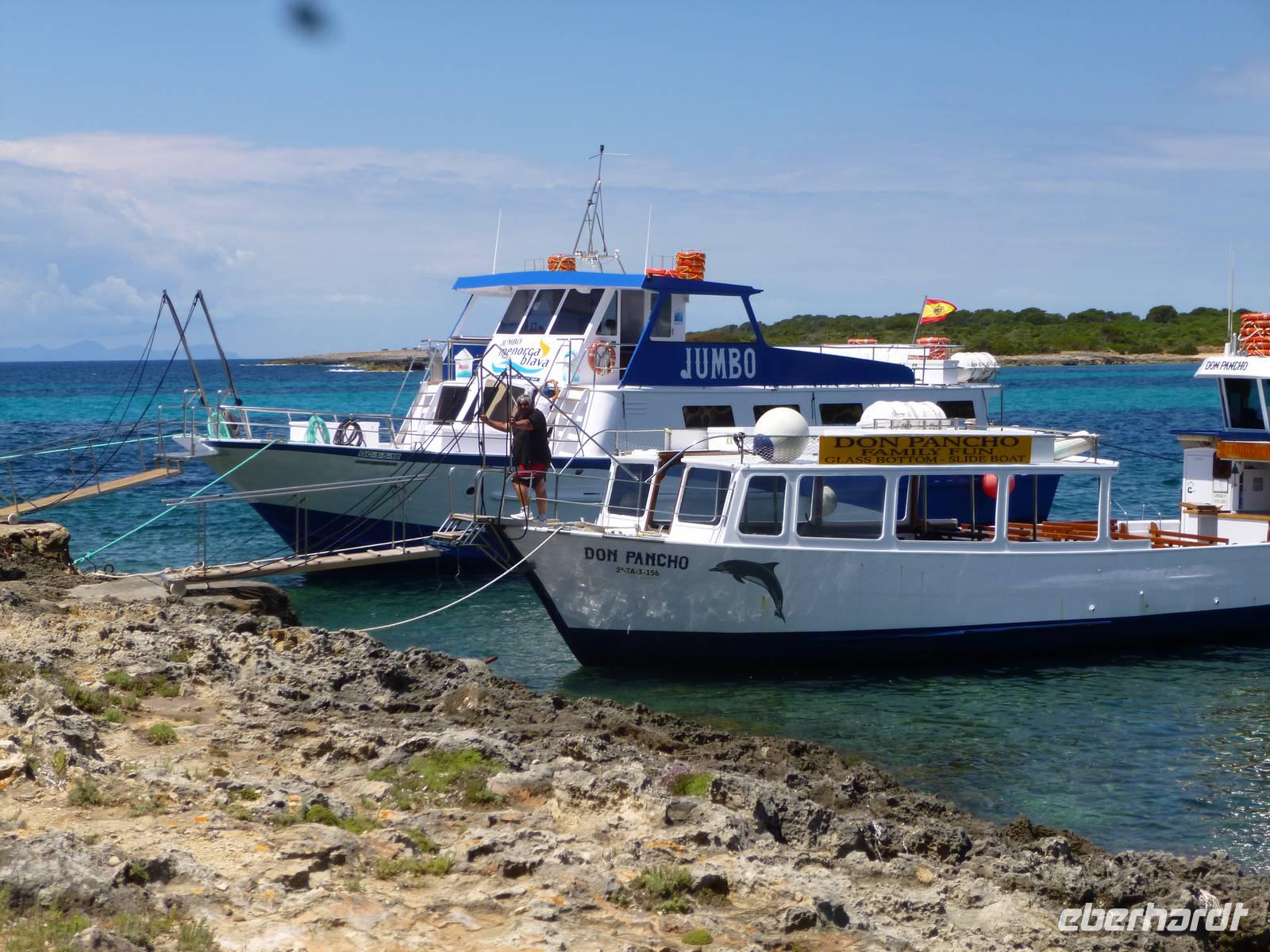 Nach dem gemütlichen Frühstück, starten wir mit unserer Begleiterin Mauri, auf eine ca. 30 minütige Fährüberfahrt auf die Insel Formentera, dem kleinsten bewohnten Eiland der Balearen. An vielen kleine unbewohnte Inseln vorbei, erreichen wir den Hafen von La Savina, dem einzigen Ankunftspunkt der Insel. Als erstes statten wir dem Hauptort der Insel Francesc Xafier einen Besuch ab, in welchem sich auch das Rathaus von Formentera befindet. Um der Ort zu umrunden benötigt man gerade mal 20 Minuten. Hinter der Kirche fand ein kleiner Hippiemarkt statt . Einige Hippies leben auch heute auf der Insel, sind aber schon um die 70 Jahre alt. Schade das das kleine privat geführte ethnologische Museum geschlossen war. Auf der Fahrt zum Aussichtspunkt Es Mirador, von dem wir tolle Fotos von der gesamten Insel knipsen konnten, erzählt uns Mauri viel interessantes über Geschichte, Flora und Fauna. In 200 Jahren müssen wir noch einmal kommen, weil es durch Erhöhung des Meeresspiegels dann wahrscheinlich statt einer, zwei Inseln geben wird.Am Ende der einzigen Hauptstraße Formentera's erreichen wir "La Mola" den mit 192m höchsten Punkt der Insel. Von der Steilküste hat man wieder einen traumhaften Ausblick über die Insel, auf Ibiza und am Horizont auch auf Es Vedra. Obwohl, laut Maurie, Jules Vernes nie auf Formentera gewesen sein soll, will man mit Sicherheit wissen, das der Leuchtturm von "La Mola" in seinem Roman "Reise durch das Sonnensystem" beschrieben wird. An der Steilküste leben auch viele tolle Echsen und in unserer Gruppe entbrannte ein Wettkampf um das schönste Foto mit den kleinen grünen Tierchen... wer es wohl hat . Schade das ich am Nachmittag das Wetter eintrübte und keiner Lust hatte ins kühle Wasser an den schönen Stränden zu springen. Auf der Rückfahrt nach Ibiza weinte der Himmel...