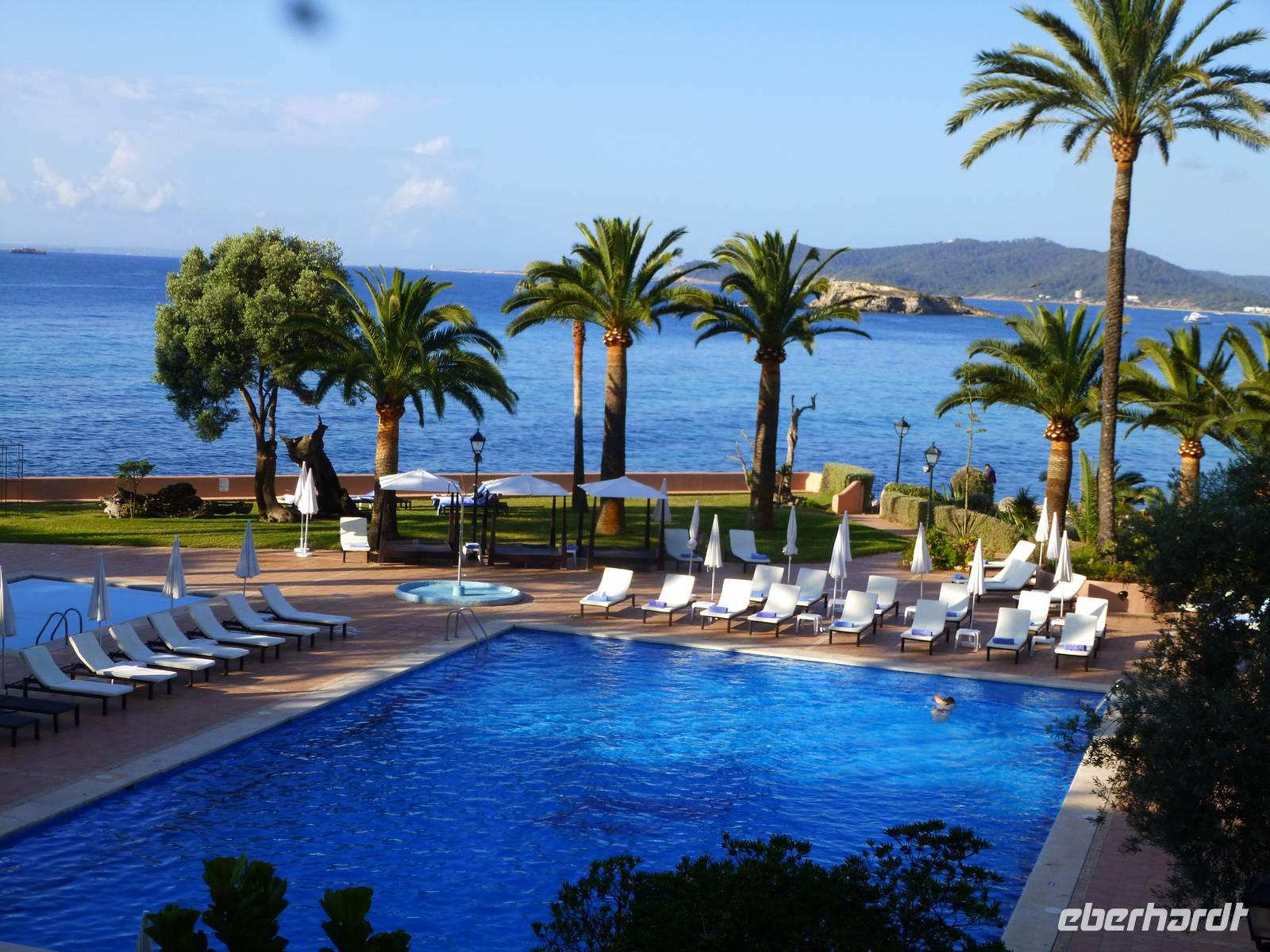 Am sonnigen Vormittag starten wir mit Air Berlin auf die drittgrößte Insel der Balearen - Ibiza. Pünktlich landen wir auf dem Flughafen von Ibiza und werden von Fernando, unserem örtlichen Betreuer, herzlich begrüßte. Das schöne sonnige Wetter ließ unsere Vorfreude auf die bevorstehenden Tage wachsen. Ein Bus bringt uns in nur wenigen Minuten zu unserem Domizil, dem **** Hotel "Los Molinos" unweit der Altstadt. Alle Zimmer haben einem herrlichen Panoramablick auf die Bucht der Stadt Ibiza. Mit Sangria, dem Nationalgetränk Spaniens wurden wir begrüßt und Fernando weckte, bei der Vorstellung der Ausflüge auf den Balearen Inseln, unsere Vorfreude auf erlebnisreiche Urlaubstage .