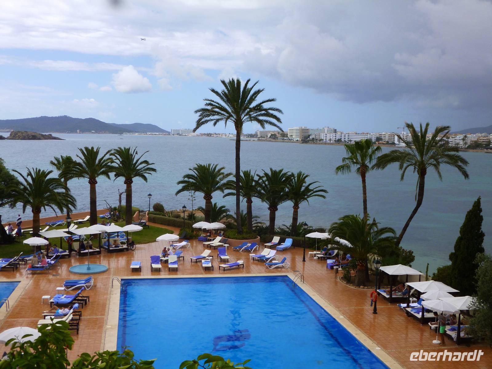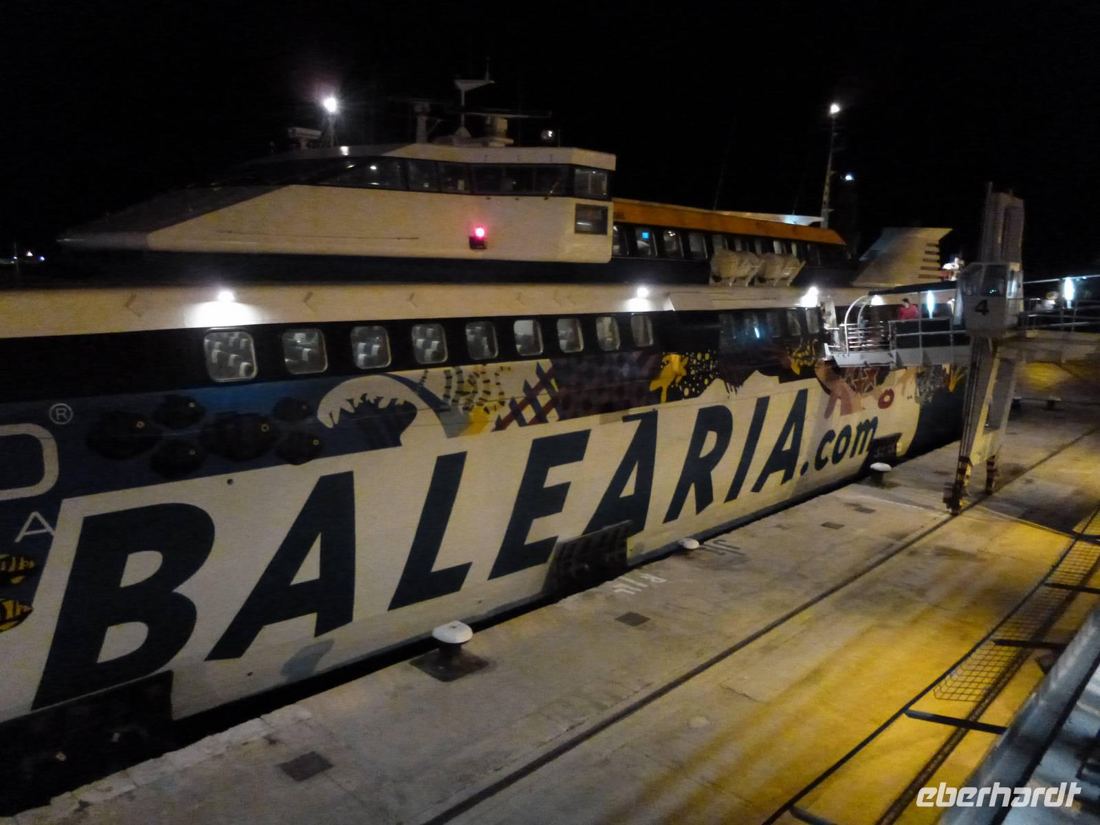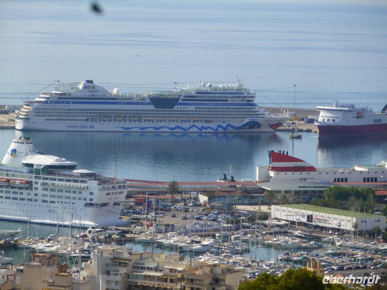 Am heutigen Vormittag konnte jeder für sich in Ibiza auf Entdeckungsreise gehen. Bei einem Bummel durch die Altstadt bzw. entlang der Strandpromenade oder man entschied sich für ein Sonnenbad am Pool. Nur machte der Wettergott einige Pläne zunichte - erst strahlender Sonnenschein, dann dicke Wolken mit Regen, am Nachmittag wieder blauer Himmel und Sonnenschein, verrückt. Am frühen Abend aßen wir sehr lecker im Restaurant "Club Nautico" im Hafen von Ibiza, um uns dann mit der Fähre Balearia in Richtung Mallorca einzuschiffen. Bei ruhiger See erreichten wir nach ca, 3 Stunden den Hafen von Palma de Mallorca und per Bustransfer gegen Mitternacht unser **** Sterne Hotel "Gran Fiesta" direkt an der Platja de Palma.