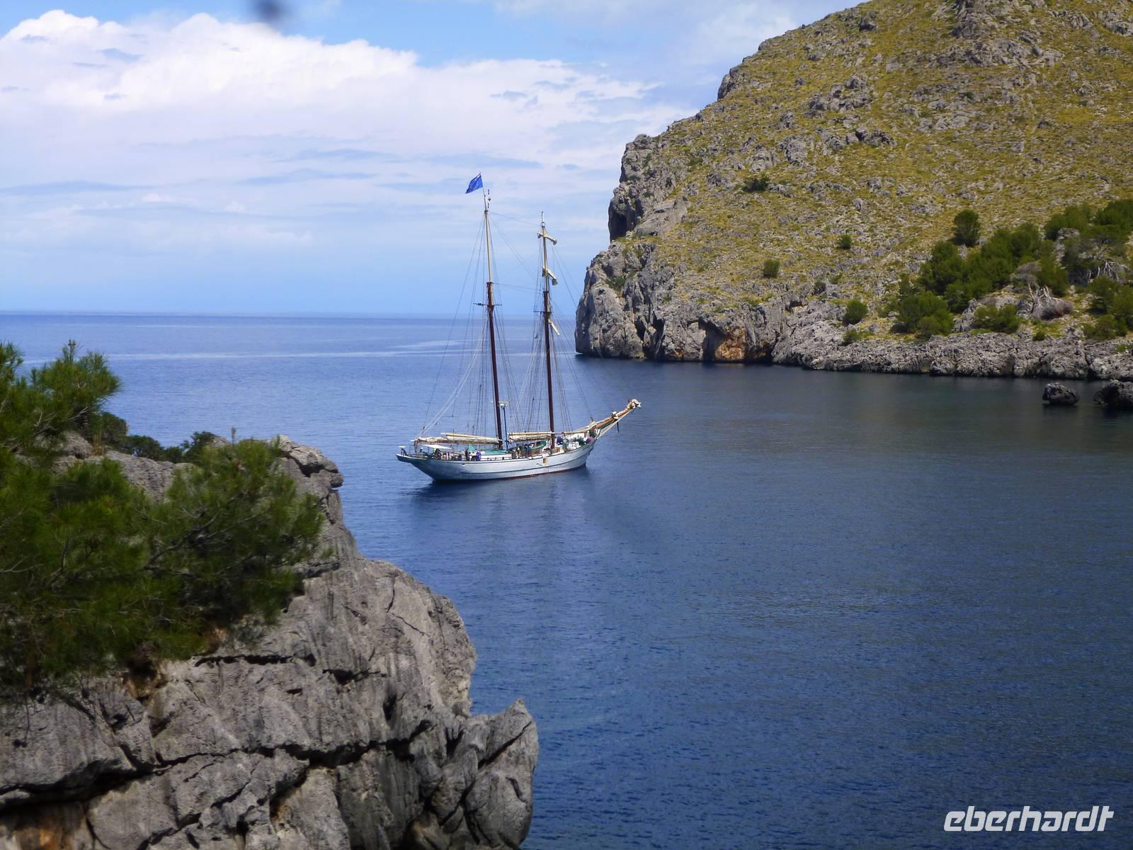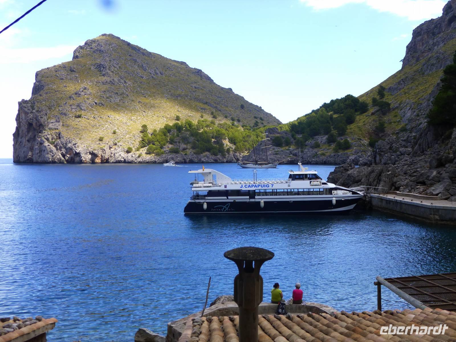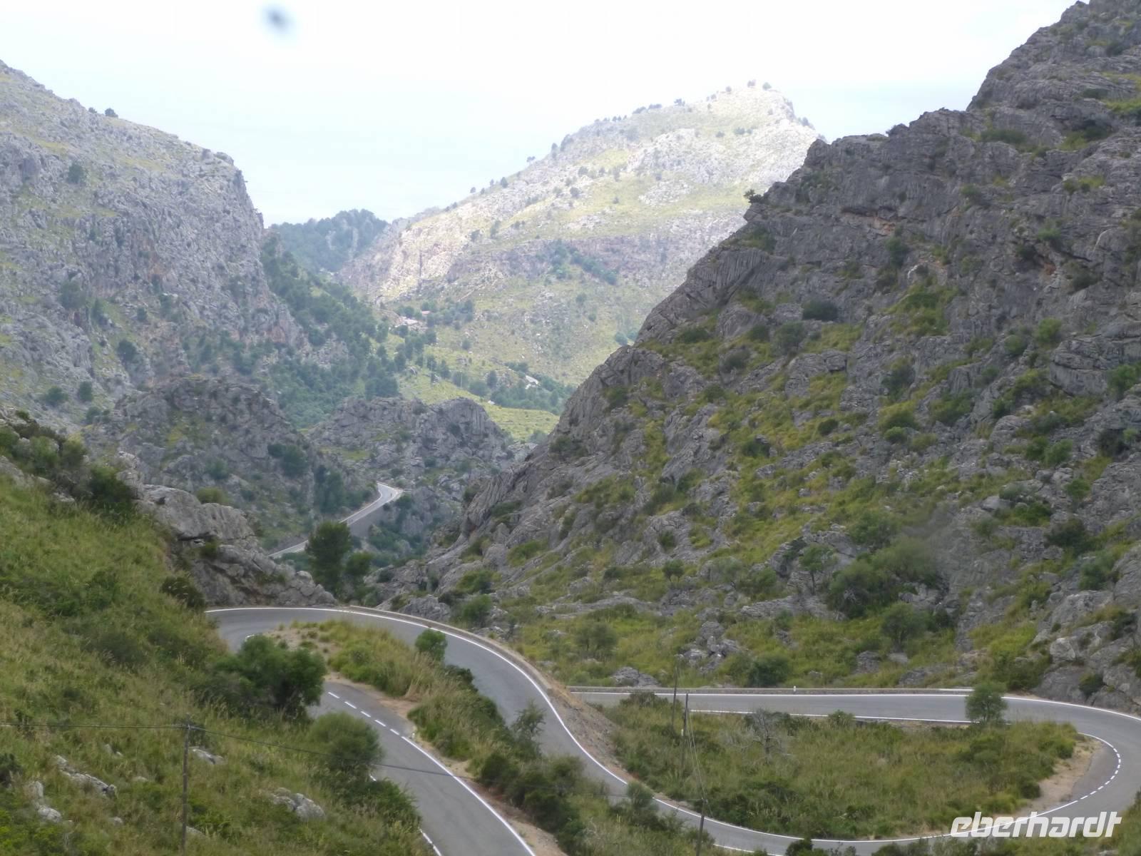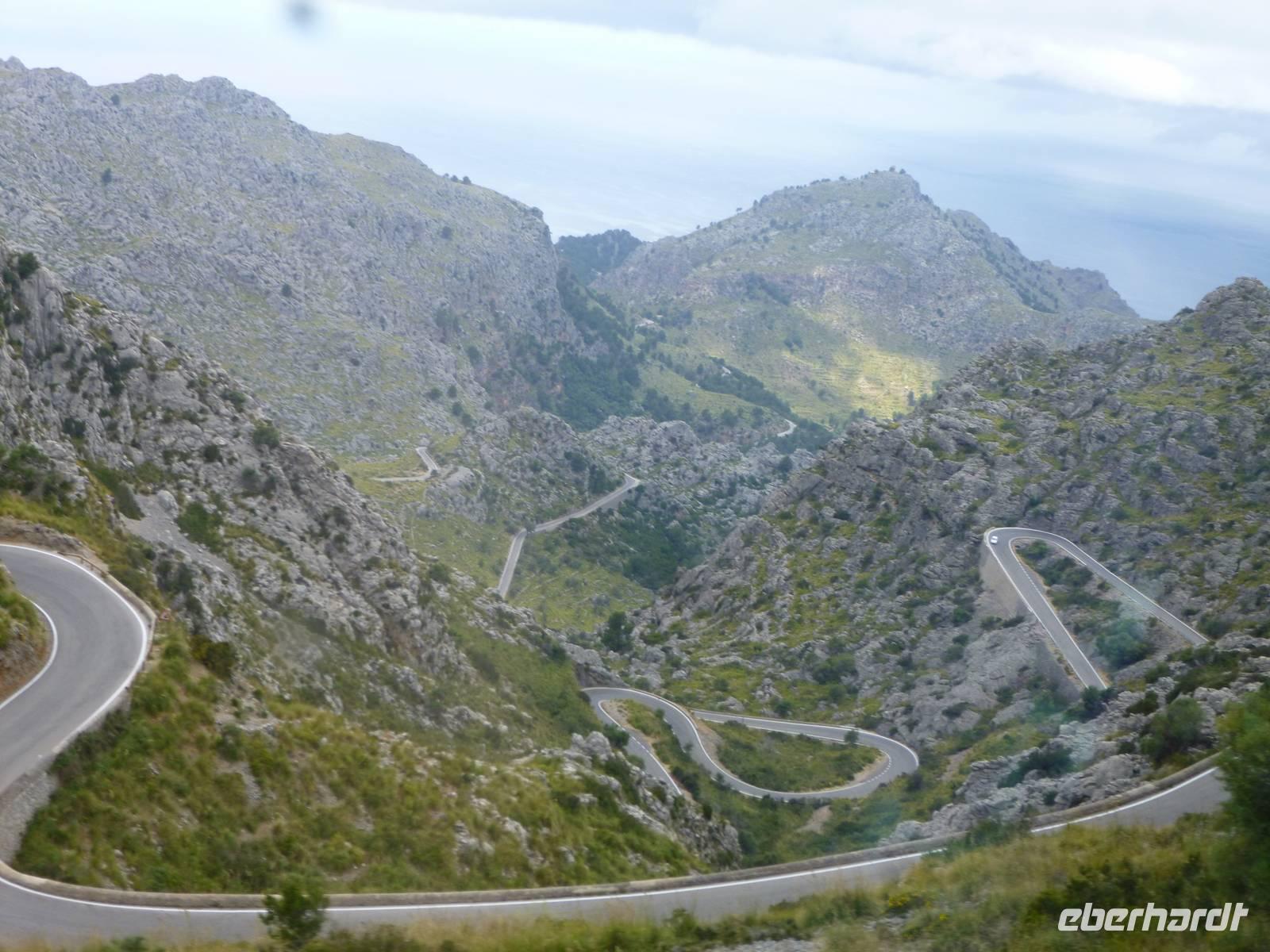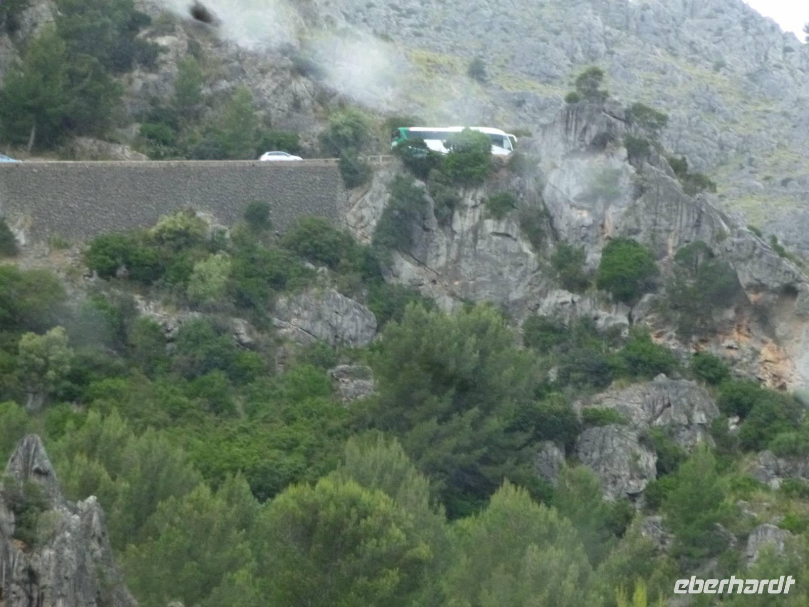 Gemeinsam mit unserer örtlichen Reiseleiterin Magdalena starten wir, vom einem Bahnhof am Stadtrand von Palma, unsere heutige Entdeckungstour mit der nostalgischen Eisenbahn dem „Roten Blitz" aus dem Hause Siemens. Durch zahlreiche Tunnel, vorbei an Orangen-, Zitronen- und Olivenplantagen erreichen wir den kleinen Küstenort Soller. Weiter ging es mit einer Straßenbahn Baujahr 1913 ruckelnd und quitschend zum Hafen - Porte de Soller. Auf der 3.Etappe erreichen wir mit einem Schiff entlang der felsigen Westküste den kleinen Ort Sa Calobra. Einige Gäste wanderten durch einen in den Berg gehauenen Tunnel zur romantischen Schlucht Torrente de Pareis, andere genossen die strahlende Sonne. Unser Fahrer Pedro erwartete uns am frühen Nachmittag und wir starteten über eine enge, äußerst spektakuläre Serpentinenstraßen des Tramuntana - Gebirges, in Richtung Palma. Von weitem konnten wir den Gipfel des höchsten Berges der Insel, dem 1443m hohem Puig Mayor, sehen. Leider zog eine Wolkenfront auf und es begann zu regnen.