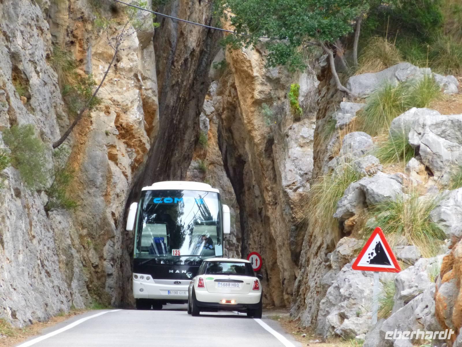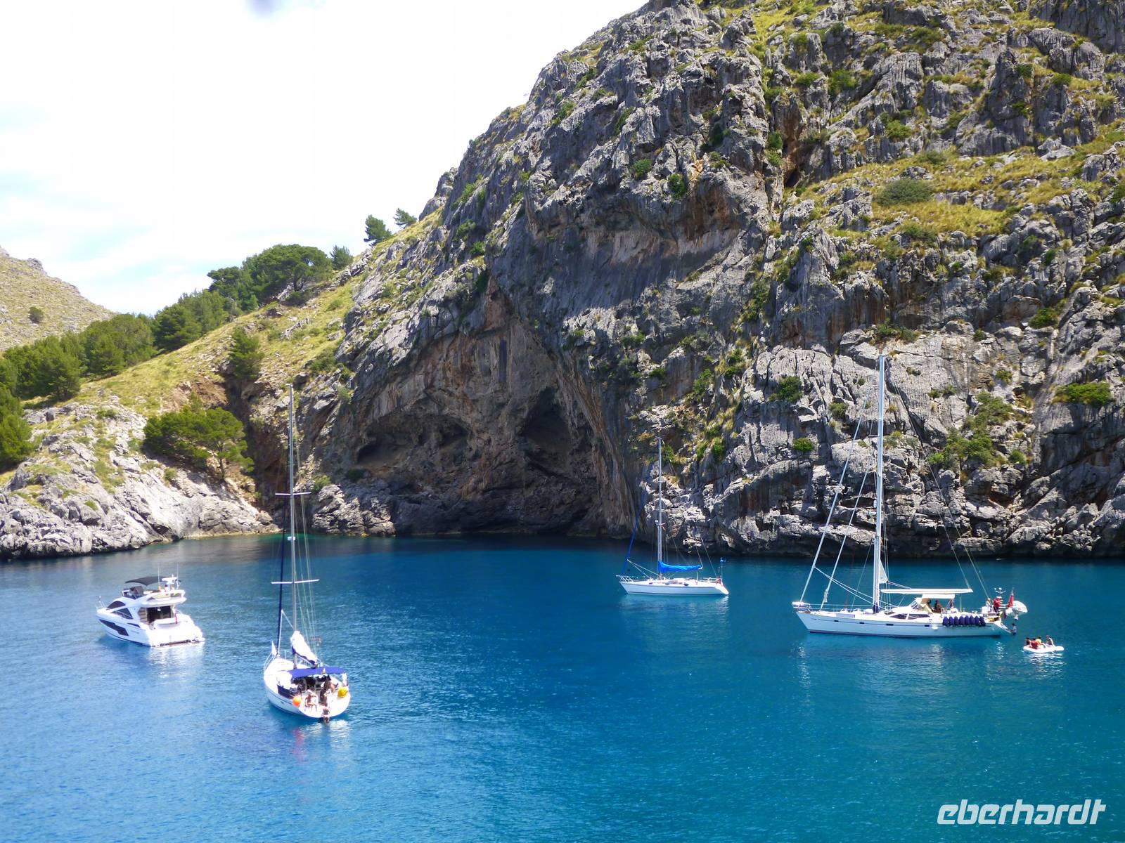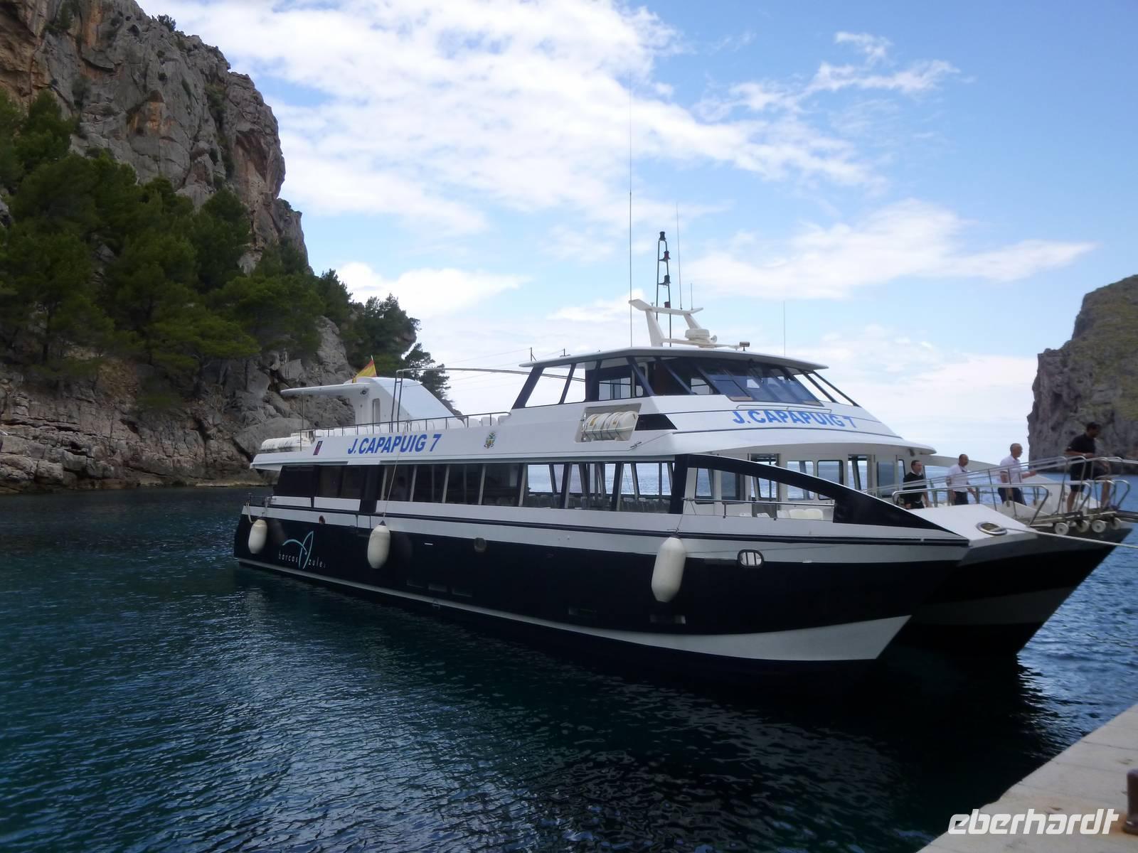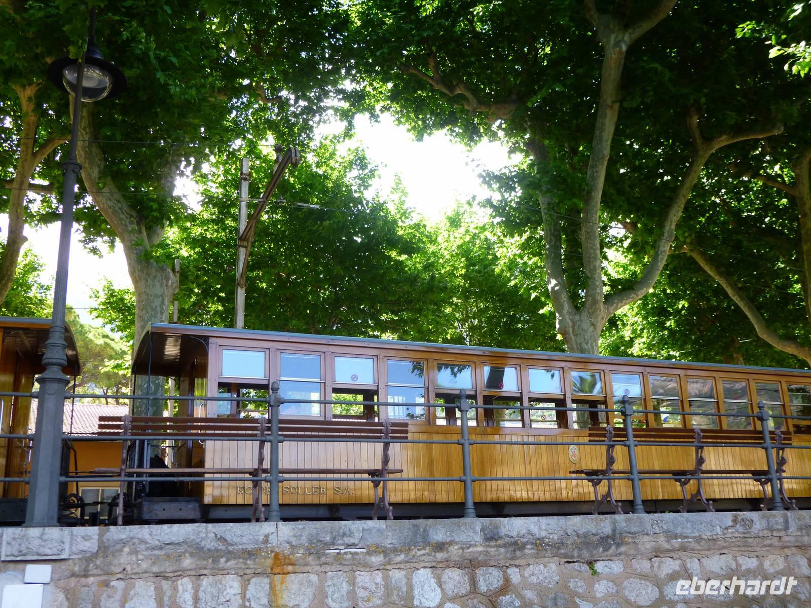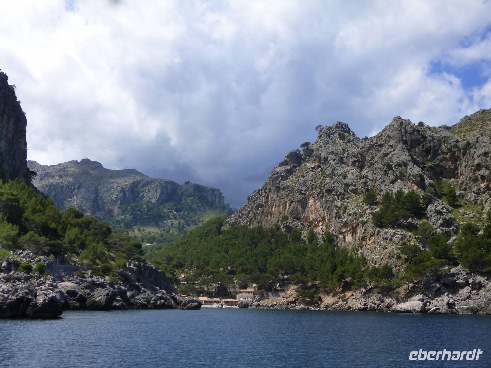 Gemeinsam mit unserer örtlichen Reiseleiterin Magdalena starten wir, vom einem Bahnhof am Stadtrand von Palma, unsere heutige Entdeckungstour mit der nostalgischen Eisenbahn dem „Roten Blitz" aus dem Hause Siemens. Durch zahlreiche Tunnel, vorbei an Orangen-, Zitronen- und Olivenplantagen erreichen wir den kleinen Küstenort Soller. Weiter ging es mit einer Straßenbahn Baujahr 1913 ruckelnd und quitschend zum Hafen - Porte de Soller. Auf der 3.Etappe erreichen wir mit einem Schiff entlang der felsigen Westküste den kleinen Ort Sa Calobra. Einige Gäste wanderten durch einen in den Berg gehauenen Tunnel zur romantischen Schlucht Torrente de Pareis, andere genossen die strahlende Sonne. Unser Fahrer Pedro erwartete uns am frühen Nachmittag und wir starteten über eine enge, äußerst spektakuläre Serpentinenstraßen des Tramuntana - Gebirges, in Richtung Palma. Von weitem konnten wir den Gipfel des höchsten Berges der Insel, dem 1443m hohem Puig Mayor, sehen. Leider zog eine Wolkenfront auf und es begann zu regnen.