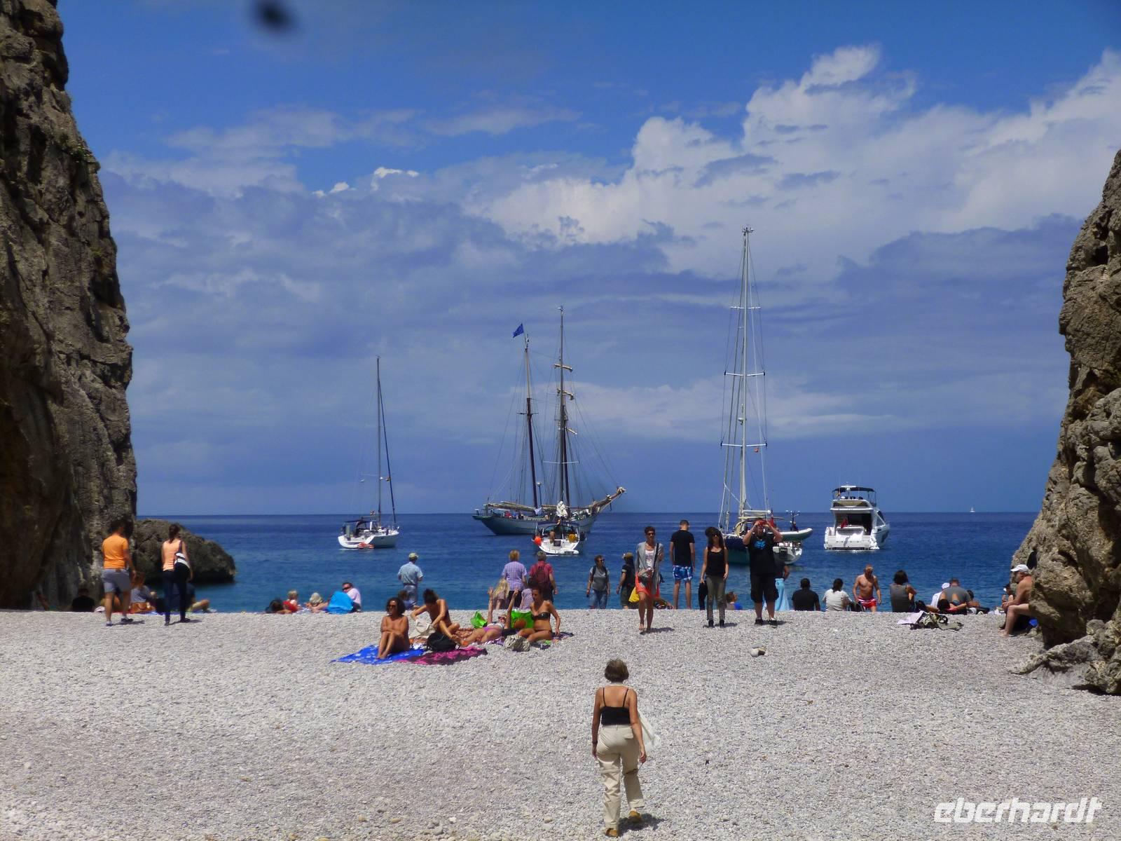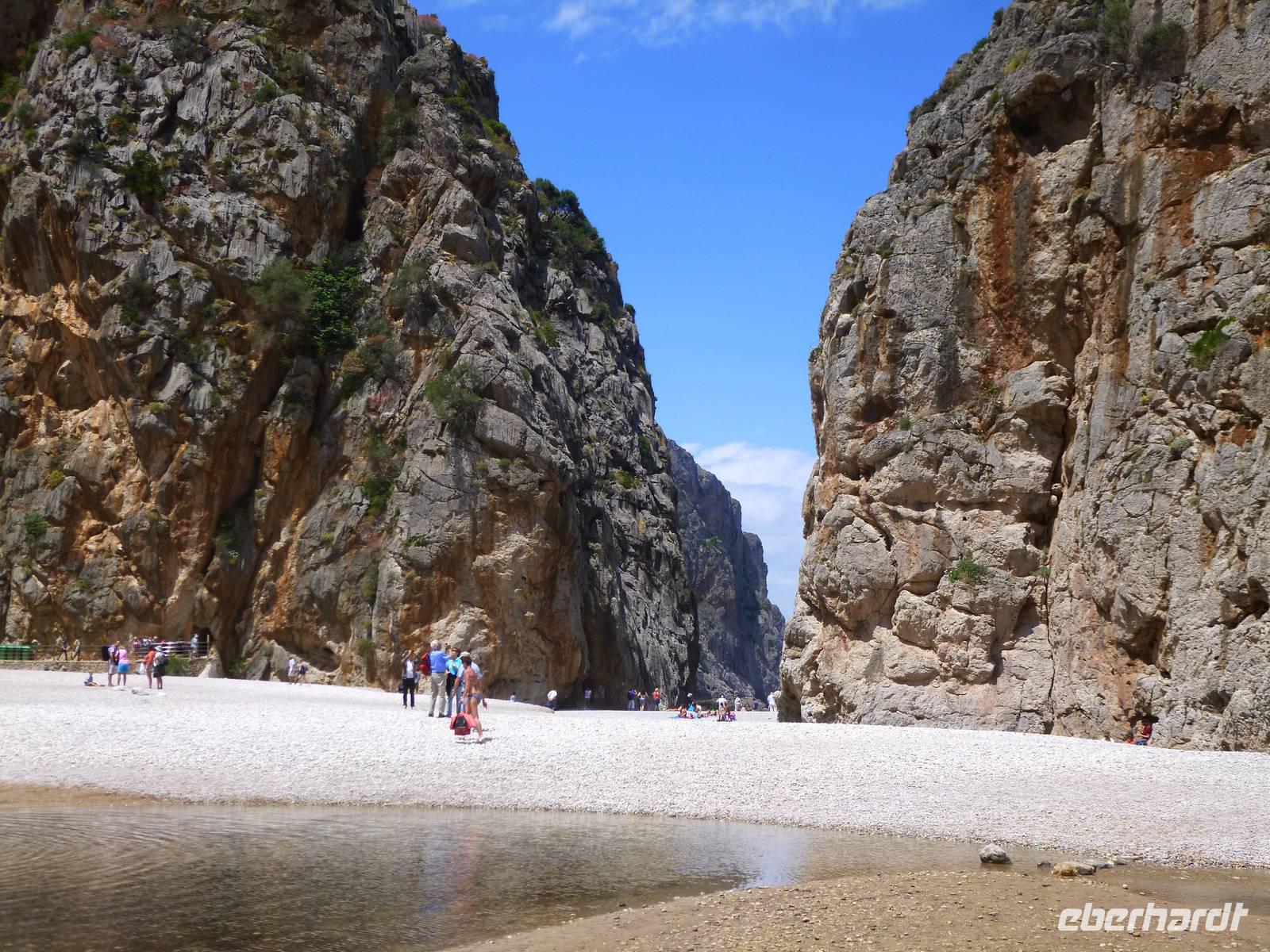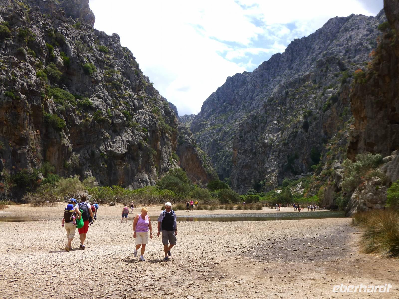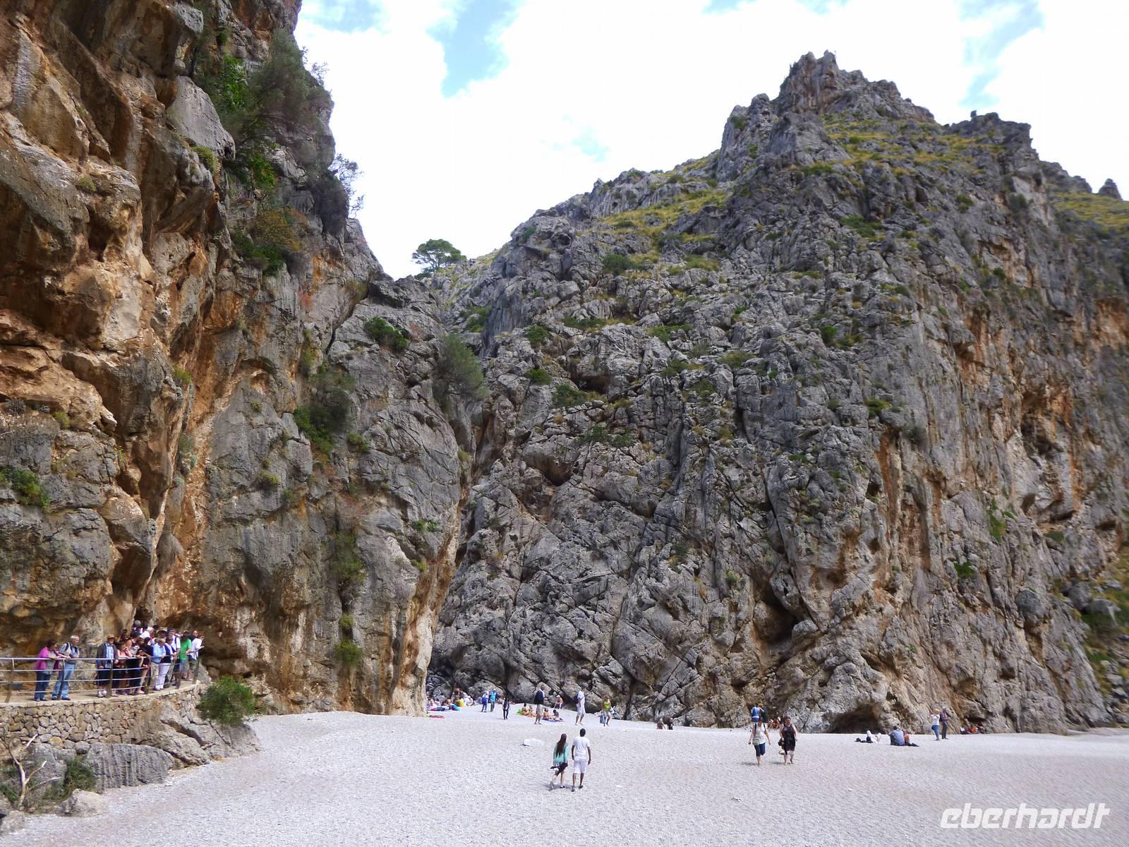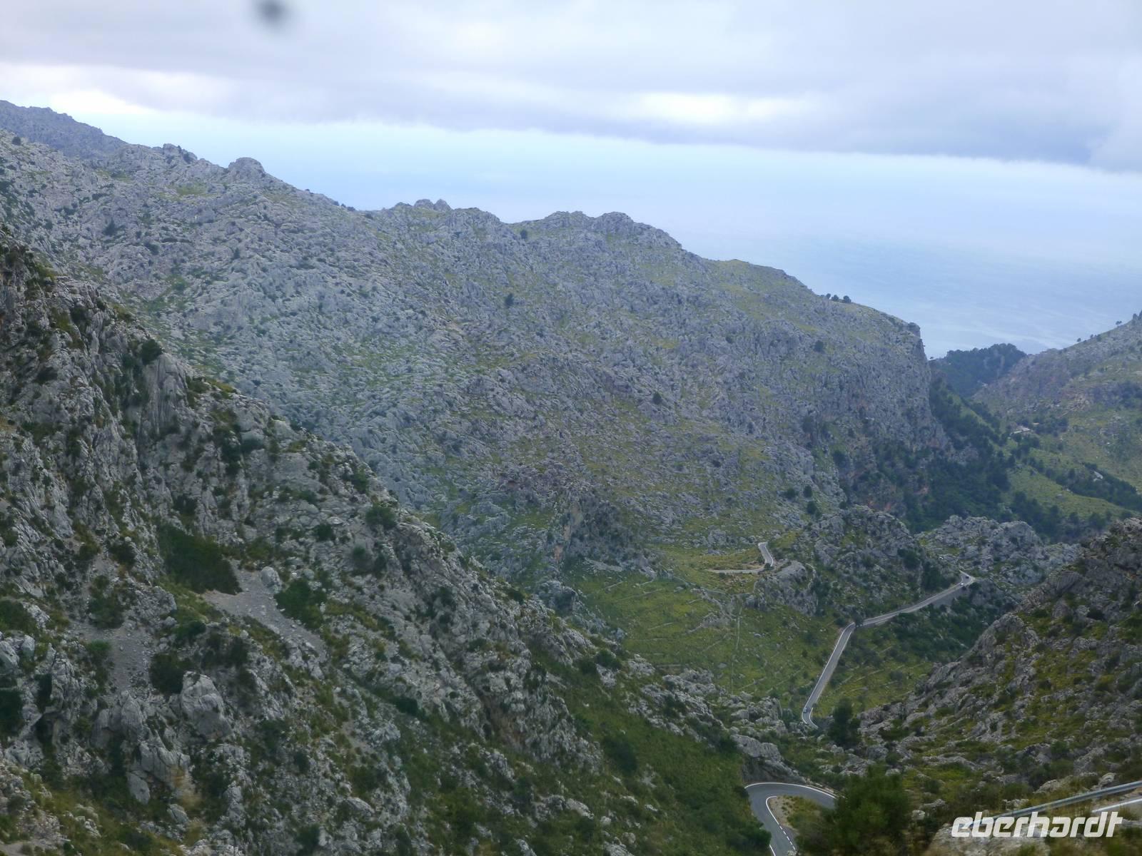 Gemeinsam mit unserer örtlichen Reiseleiterin Magdalena starten wir, vom einem Bahnhof am Stadtrand von Palma, unsere heutige Entdeckungstour mit der nostalgischen Eisenbahn dem „Roten Blitz" aus dem Hause Siemens. Durch zahlreiche Tunnel, vorbei an Orangen-, Zitronen- und Olivenplantagen erreichen wir den kleinen Küstenort Soller. Weiter ging es mit einer Straßenbahn Baujahr 1913 ruckelnd und quitschend zum Hafen - Porte de Soller. Auf der 3.Etappe erreichen wir mit einem Schiff entlang der felsigen Westküste den kleinen Ort Sa Calobra. Einige Gäste wanderten durch einen in den Berg gehauenen Tunnel zur romantischen Schlucht Torrente de Pareis, andere genossen die strahlende Sonne. Unser Fahrer Pedro erwartete uns am frühen Nachmittag und wir starteten über eine enge, äußerst spektakuläre Serpentinenstraßen des Tramuntana - Gebirges, in Richtung Palma. Von weitem konnten wir den Gipfel des höchsten Berges der Insel, dem 1443m hohem Puig Mayor, sehen. Leider zog eine Wolkenfront auf und es begann zu regnen.