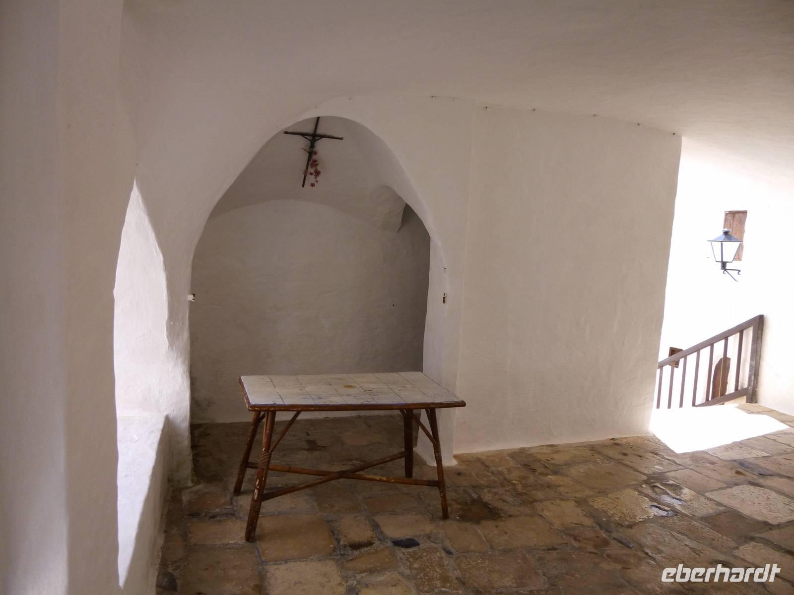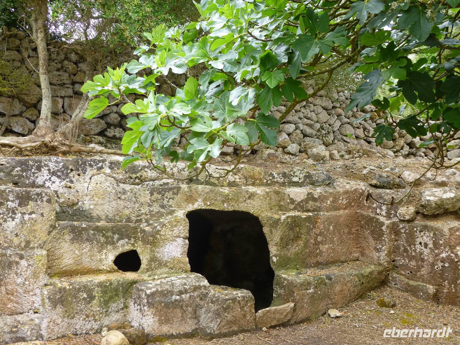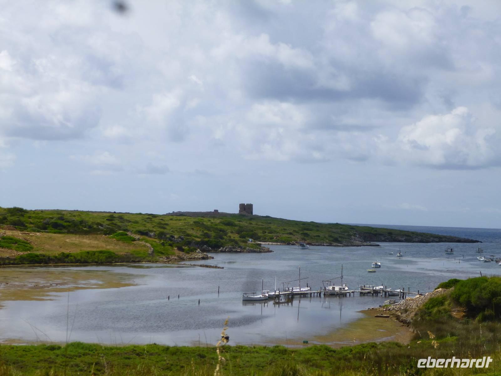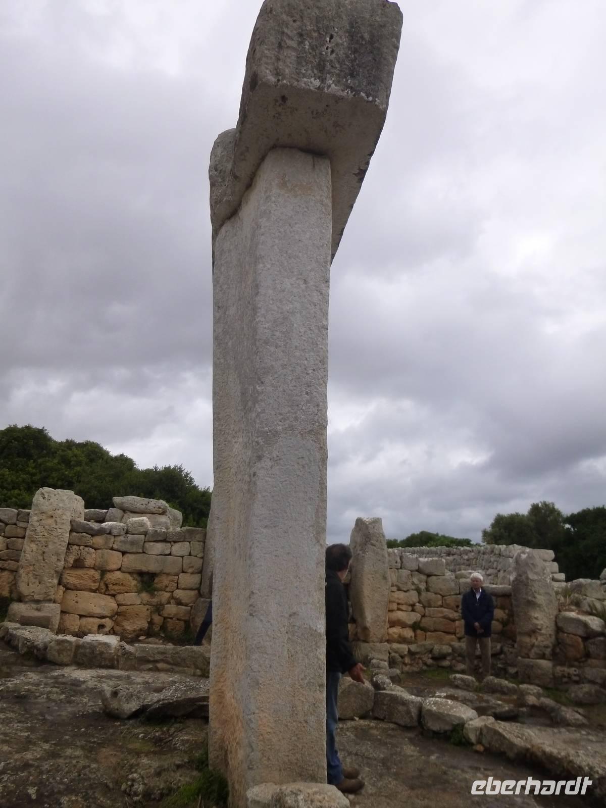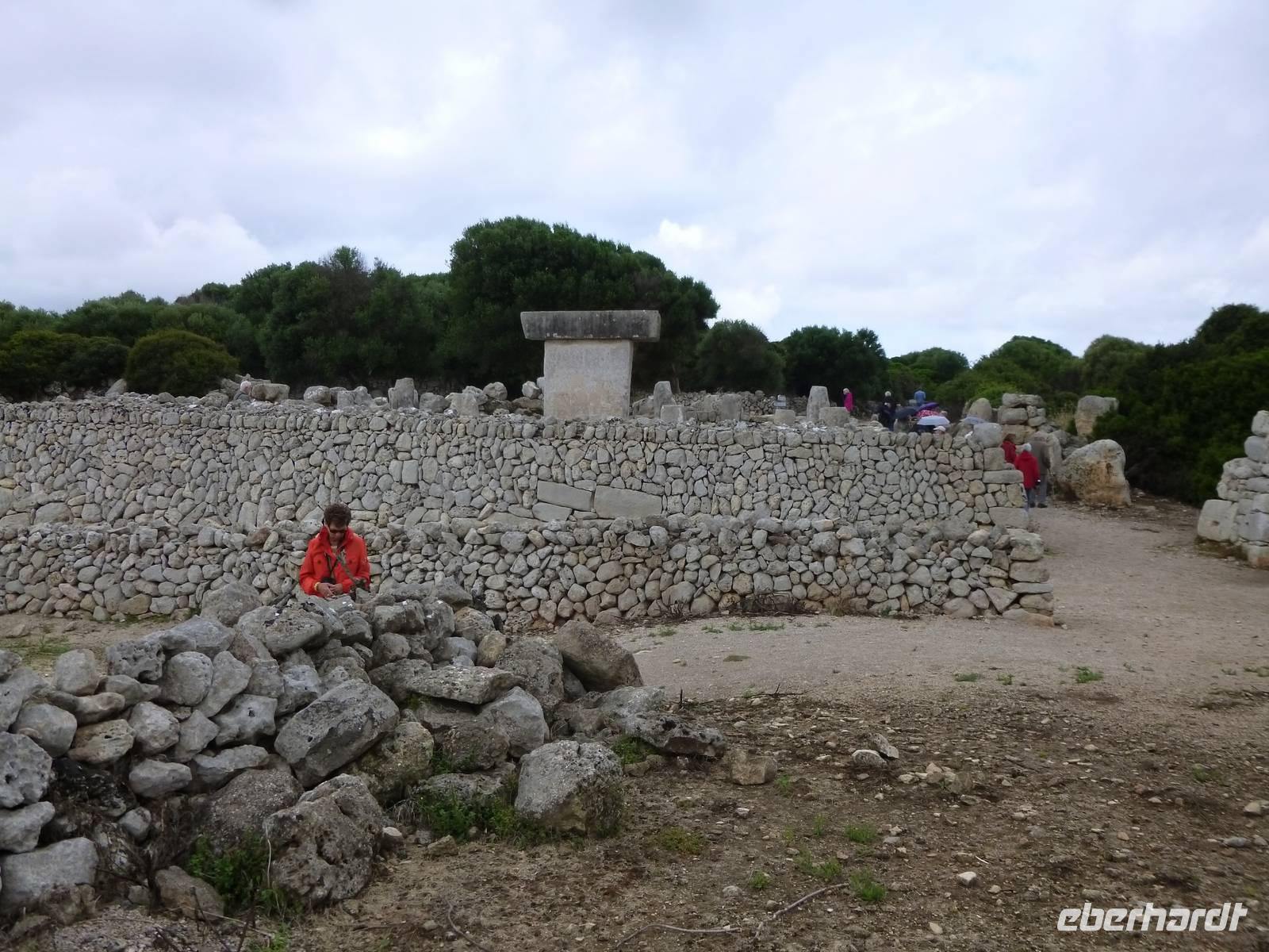 Der heutige Tag beginnt „prähistorisch", wir besuchen die Taula von Torralba d'en Salord, die bekannteste, besterhaltene und wohl auch schönste talaiotische Siedlung mit Rundhäusern und Turmburgen auf Menorca. Taulas sind tischartige Steinplatten, eine senkrecht stehend mit einer zweiten, überragend aufgesetzte Platte, umgeben von einer oder mehreren meist u-förmigen Konstruktionen aus großen Steinen. Man datiert ihre Errichtung in die Zeit zwischen 1200 - 200 v.Chr.