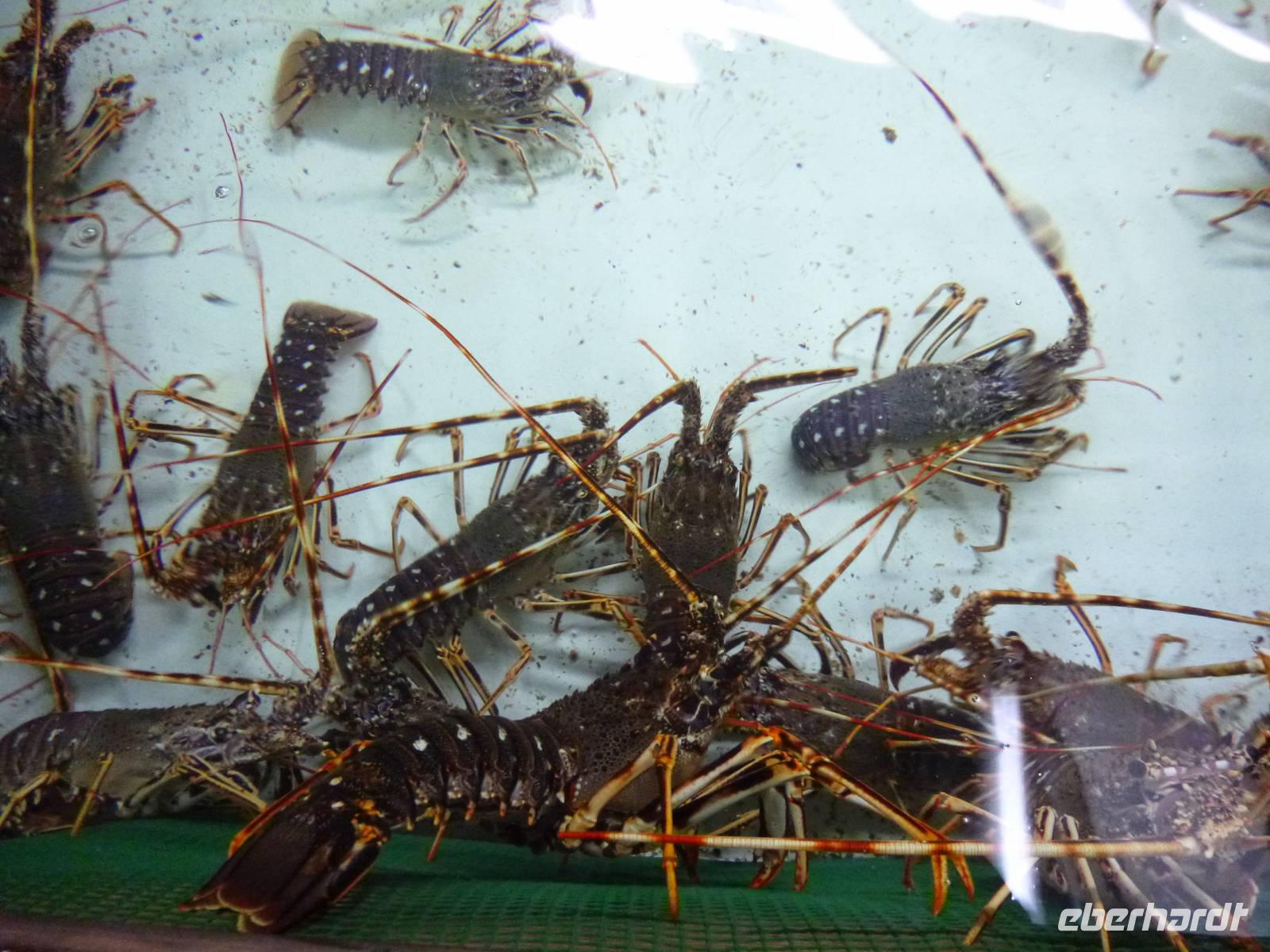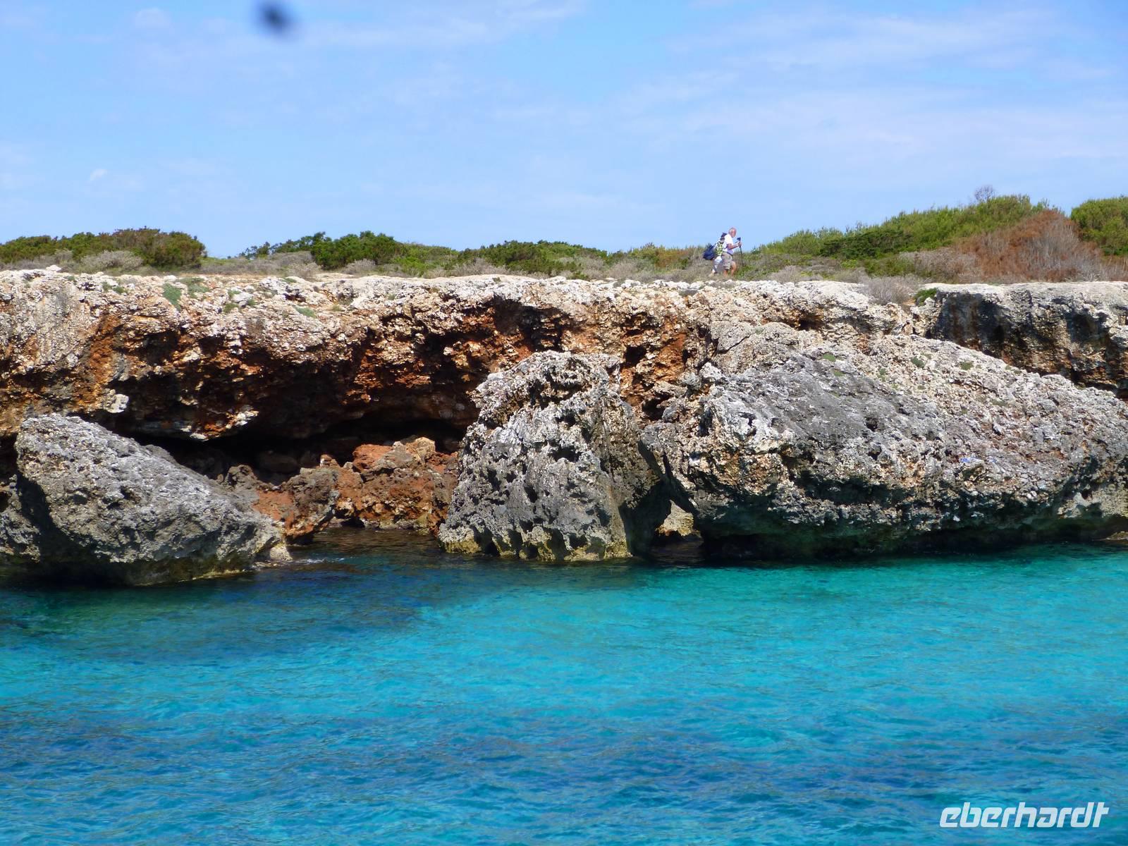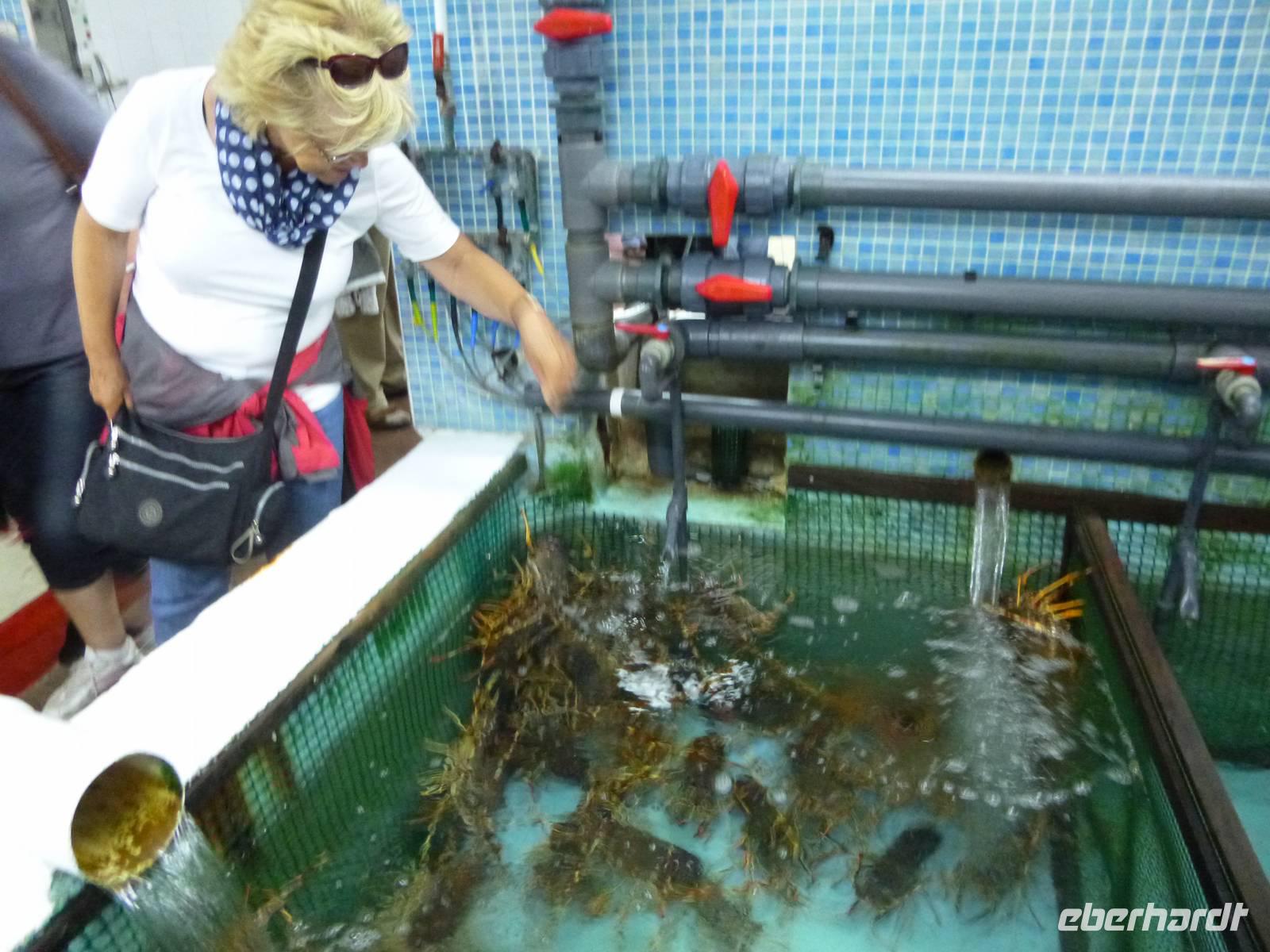Zur Mittagszeit erreichen wir den kleinen Fischerort Fornells. Hier gibt es nicht nur herrlichen Sandstrand, sondern auch viele Restaurants und Bars. Die bekanntesten unter ihnen bieten als Spezialität Langustensuppe an und mindestens einmal im Jahr kommt der spanische König hierher, um diese Spezialität zu geniessen. Zwischen 50 und 80 € kostet das kulinarische Vergnügen, nix für uns. Bei unserem Rundgang durch den Ort führte uns Roland zum Restaurant eines Freundes und wir durften uns anschauen, wie Langusten gezüchtet werden. Anschließend fuhren wir zum Cap de Cavalleria. Die schroffen Küstenfelsen und die schäumende Brandung bieten ein tolles Naturschauspiel